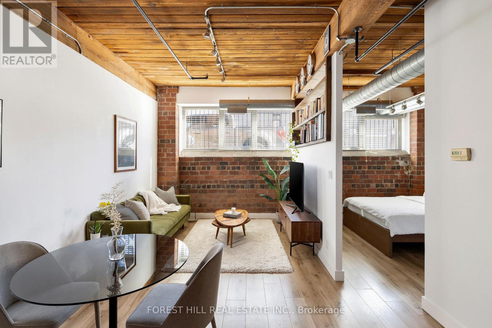 True hardstyle authentic loft located in vibrant Roncesvalles. This is no cookie cutter condo, unique and filled with character. Exposed brick and original wood beams with soaring ceilings. Large four panelled warehouse style windows fill the apartment with an abundance of natural light. Chef's kitchen with stainless steel counters and full size appliances. Stroll across the street and grab a craft beer and bite to eat at Bandit Brewery. Lots of great local shopping and eats. Two minute walk to the 304 King and the 504 King streetcars. Short walk to Dundas West TTC station on the Bloor line and UP Express. Street permit parking available from the city of Toronto, see parking map attached. **EXTRAS** Gated bike storage on the west side of the building. (id:64974)