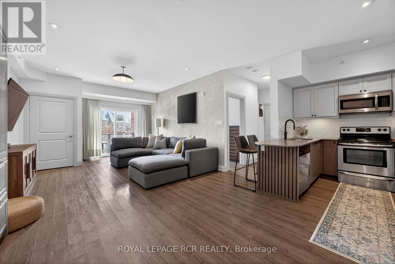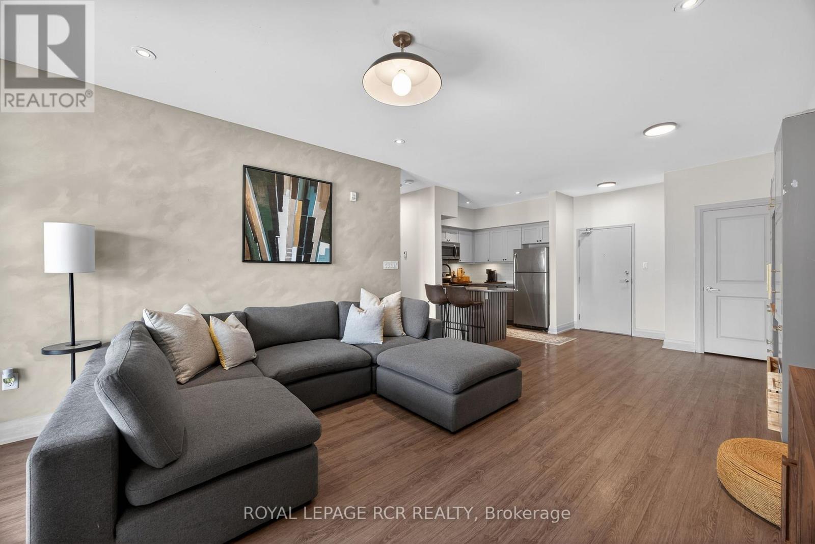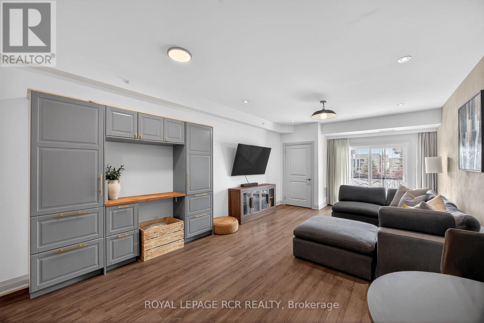 Simplify your life without sacrificing comfort. Welcome to treetop serenity at 5 Greenwich St set within Ardagh Bluffs in Bear Creek Eco Park. Unit 105 is a convenient main floor open concept condo. Bright, spacious, modern design and well appointed kitchen, walk-out to terrace. Freshly painted and upgraded cabinets, light fixtures, laundry storage, remodelled bathroom. Ensuite laundry, 9 foot ceilings and 1 exterior parking spot. Centrally located with easy access to HWY 400, major shopping and Centennial Beach. (id:64974)