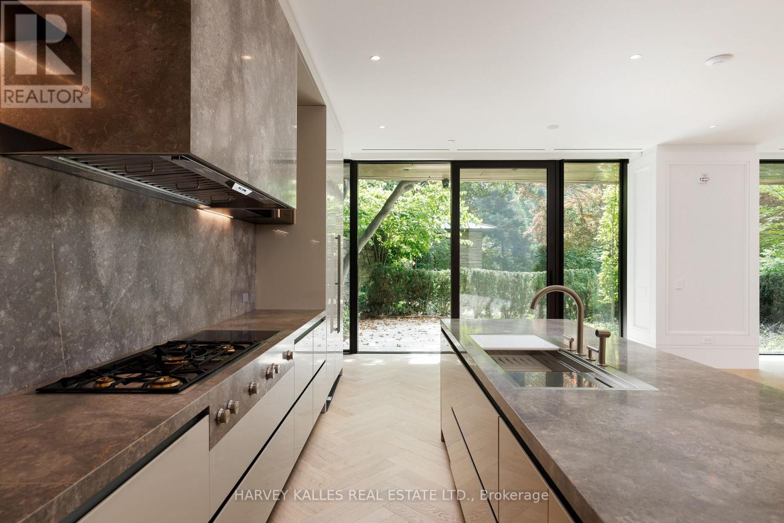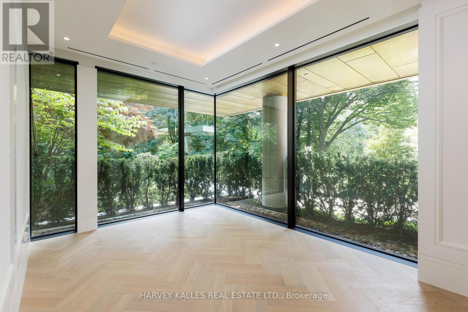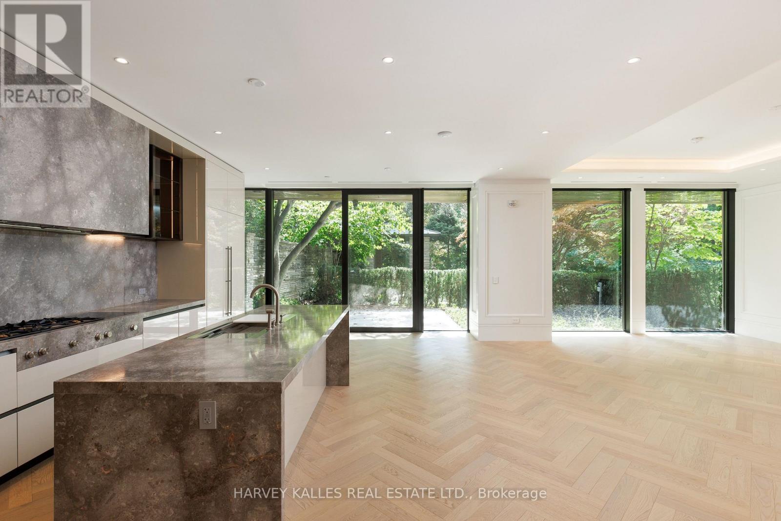 Exquisite in every detail, from the stone, glass, bronze, and brick facades envisioned by Hariri Pontarini to the sublime interiors crafted by Studio Munge, this brand new 2 bedroom, 3 bath suite on Dale Avenue epitomizes Rosedale elegance. Sun-drenched spaces with 10-foot ceilings, wide-plank oak herringbone floors, and floor to ceiling windows open to a private terrace overlooking mature trees and meticulously designed gardens. The primary retreat features a spa-inspired 5-piece ensuite and expansive dressing room, while the kitchen showcases Molteni/Dada custom cabinetry, Gaggenau appliances, and Waterworks fixtures. A private elevator vestibule provides secure, direct access to the suite. Residents enjoy world-class amenities, including a state of the art fitness facility with yoga studio, Techno Gym equipment, wet/dry saunas, an EV-ready secure garage, and dedicated concierge minutes from Rosedale's gardens, top schools, dining, and boutique shopping. (id:64974)