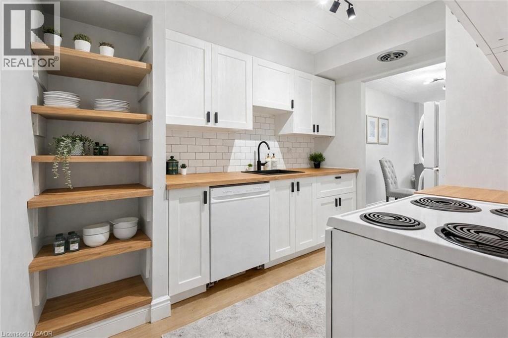 Welcome to 102-105 Conroy Crescent, a bright, NEWLY RENOVATED, 2-bedroom condo backing onto peaceful green space and scenic trails that lead to the river! With a completely refreshed interior and a location surrounded by everyday conveniences, this home offers unbeatable value for first-time buyers, investors and downsizers alike. Step inside and you’ll immediately notice the brand-new flooring and the tastefully renovated kitchen, featuring crisp white shaker cabinetry, butcher-block countertops, subway tile backsplash, modern black hardware and a sleek black sink. The thoughtful addition of open shelving makes this kitchen as functional as it is stylish. The spacious living and dining area is flooded with natural light from a full wall of windows. Freshly updated with neutral wide-plank flooring, this open-concept space is perfect for both relaxing and entertaining. Sliding doors lead to your large private balcony overlooking greenery-an ideal spot for your morning coffee or unwinding at the end of the day. The generously sized primary bedroom offers plenty of room for a king-size bed, while the second bedroom is perfect for guests, a home office or a roommate. A modern 4-piece bathroom completes the unit with updated vanity, fixtures and finishes. This condo includes an oversized parking spot located right next to the back building entrance, plus a convenient storage locker. The unit is situated on the main floor in a building with no elevator, making grocery trips and daily access a breeze. Just steps away is a bus stop with a direct route to the University of Guelph. You’re also minutes from Stone Road Mall, LCBO, Shoppers, restaurants, banks, Dovercliffe Park and quick access to the Hanlon Parkway—perfect for commuters. Freshly renovated, move-in ready and set in a peaceful yet central location—this is an opportunity you won’t want to miss! (id:64974)