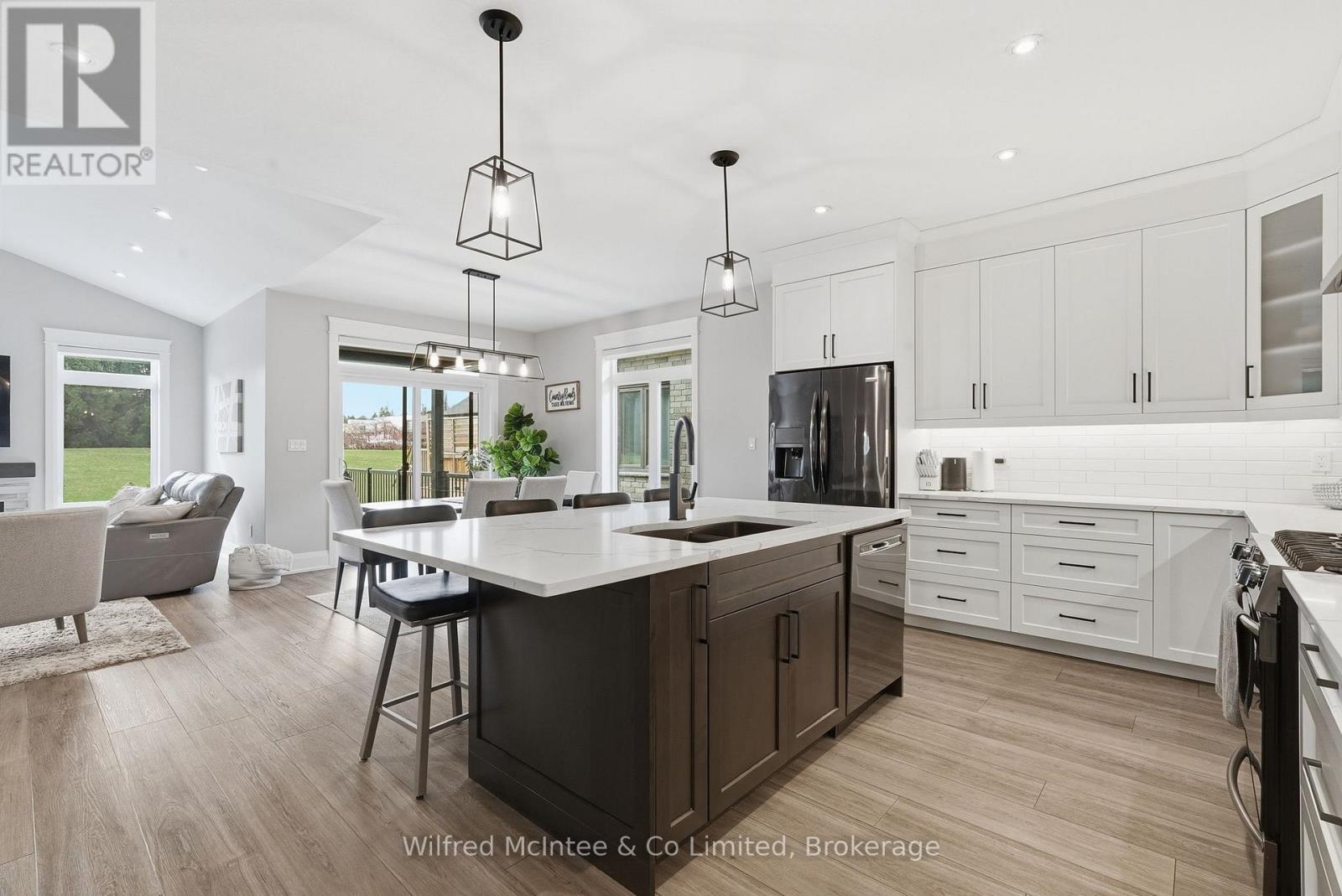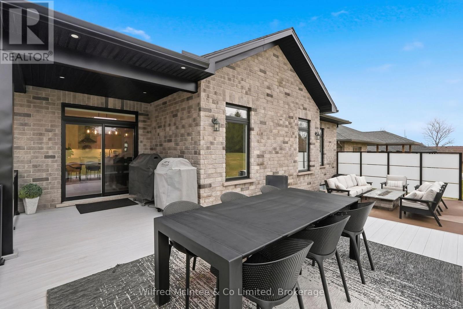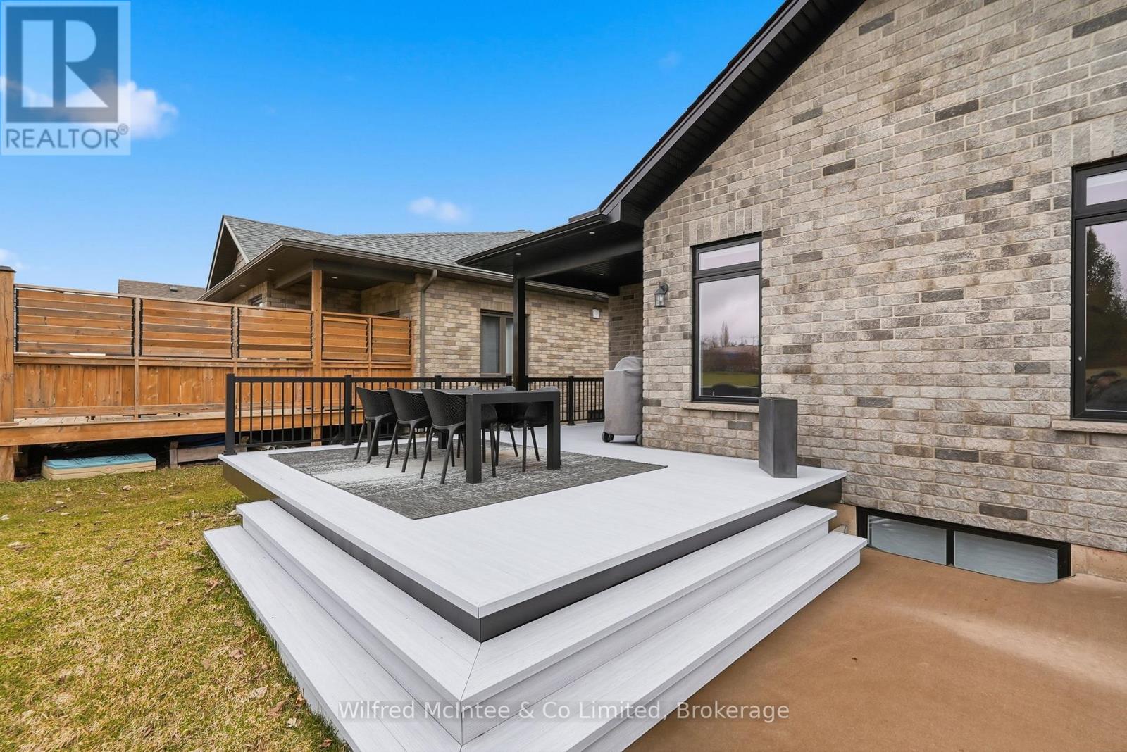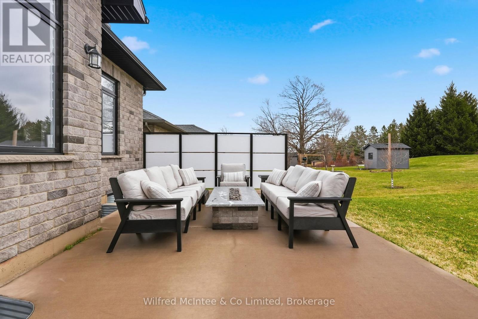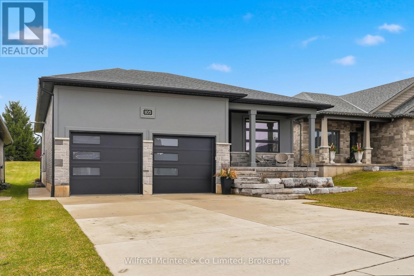 Welcome to 105 Fourth Street in Walkerton! This exquisite, magazine-worthy bungalow built in 2020 by the highly regarded Candue Homes is perfectly positioned on an exceptionally deep and private lot in one of Walkerton's most sought-after family-friendly neighborhoods. From the moment you enter this show-stopping residence, you're greeted by a bright, sophisticated interior defined by sleek lines, upscale finishes, and impeccable attention to detail. At the heart of the home is a chef-inspired, designer kitchen featuring stainless steel appliances, elegant white cabinetry, quartz countertops and breakfast bar. The adjoining dining area flows seamlessly to a low-maintenance aluminum deck, extending to a private patio oasis complete with a custom gas fire table topped in granite-ideal for relaxing evenings! The living room highlighted by a fireplace exudes warmth and sophistication. The main level also features a spacious bedroom with a walk-in closet, a beautifully finished 3-piece bath with a tiled shower, a convenient laundry room, and a grand primary suite boasting a spa-inspired ensuite and a stunning custom walk-in closet showcasing cutting-edge design and exceptional storage solutions. The fully finished lower level is equally impressive, offering an expansive and beautifully detailed family room, two additional well-appointed bedrooms, a gorgeous 4-piece bathroom, and a practical utility space. A convenient walk-up provides direct access to the heated double car garage, which is fully outfitted with premium Ribtrax flooring and built-in storage systems-delivering organization and versatility. Outside, the tastefully landscaped grounds are both elegant and low-maintenance. This exceptional property is a rare blend of modern luxury, thoughtful design, and effortless living-an absolute must-see in Walkerton. (id:64974)