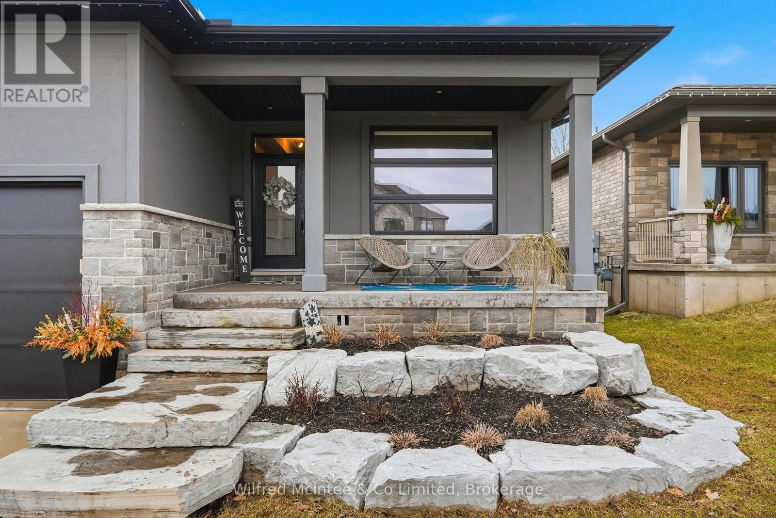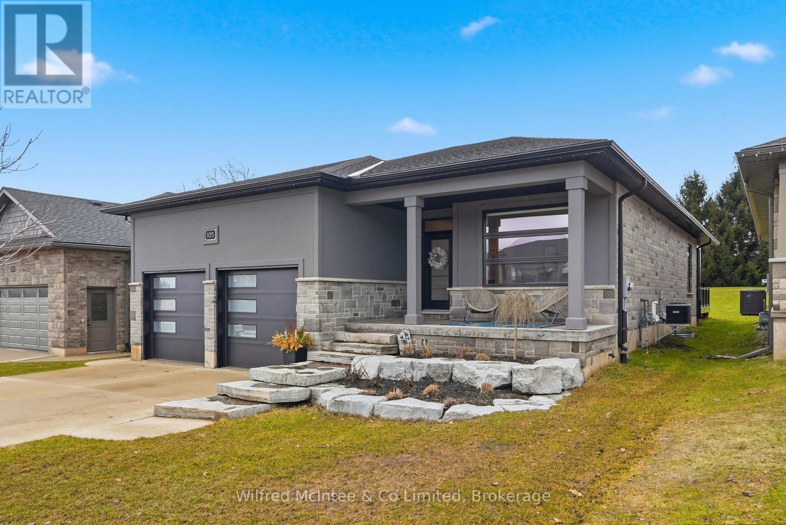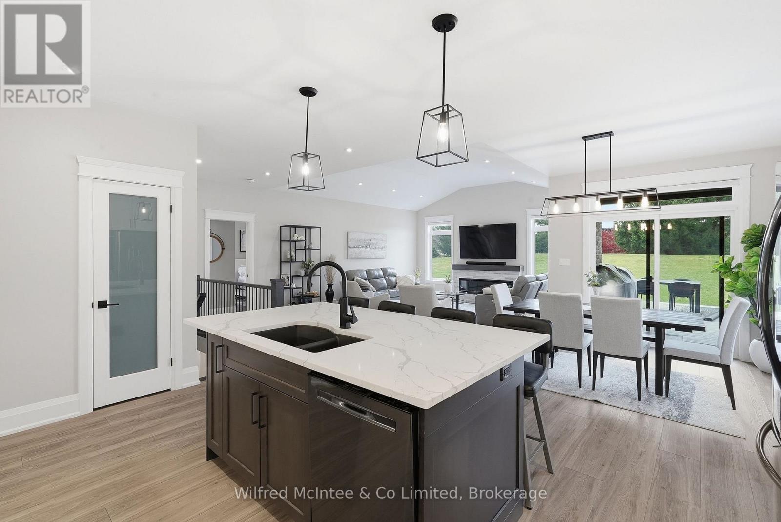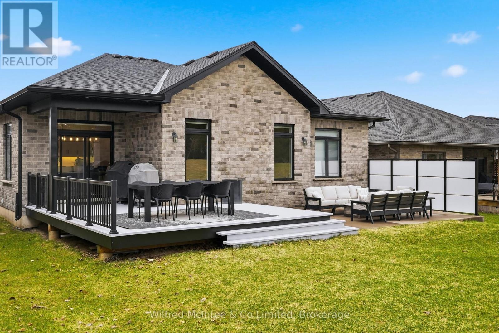 Welcome to 105 Fourth Street in Walkerton! This exquisite, magazine-worthy bungalow built in 2020 by the highly regarded Candue Homes is perfectly positioned on an exceptionally deep and private lot in one of Walkerton's most sought-after family-friendly neighborhoods. From the moment you enter this show-stopping residence, you're greeted by a bright, sophisticated interior defined by sleek lines, upscale finishes, and impeccable attention to detail. At the heart of the home is a chef-inspired, designer kitchen featuring stainless steel appliances, elegant white cabinetry, quartz countertops and breakfast bar. The adjoining dining area flows seamlessly to a low-maintenance aluminum deck, extending to a private patio oasis complete with a custom gas fire table topped in granite-ideal for relaxing evenings! The living room highlighted by a fireplace exudes warmth and sophistication. The main level also features a spacious bedroom with a walk-in closet, a beautifully finished 3-piece bath with a tiled shower, a convenient laundry room, and a grand primary suite boasting a spa-inspired ensuite and a stunning custom walk-in closet showcasing cutting-edge design and exceptional storage solutions. The fully finished lower level is equally impressive, offering an expansive and beautifully detailed family room, two additional well-appointed bedrooms, a gorgeous 4-piece bathroom, and a practical utility space. A convenient walk-up provides direct access to the heated double car garage, which is fully outfitted with premium Ribtrax flooring and built-in storage systems-delivering organization and versatility. Outside, the tastefully landscaped grounds are both elegant and low-maintenance. This exceptional property is a rare blend of modern luxury, thoughtful design, and effortless living-an absolute must-see in Walkerton. (id:64974)
