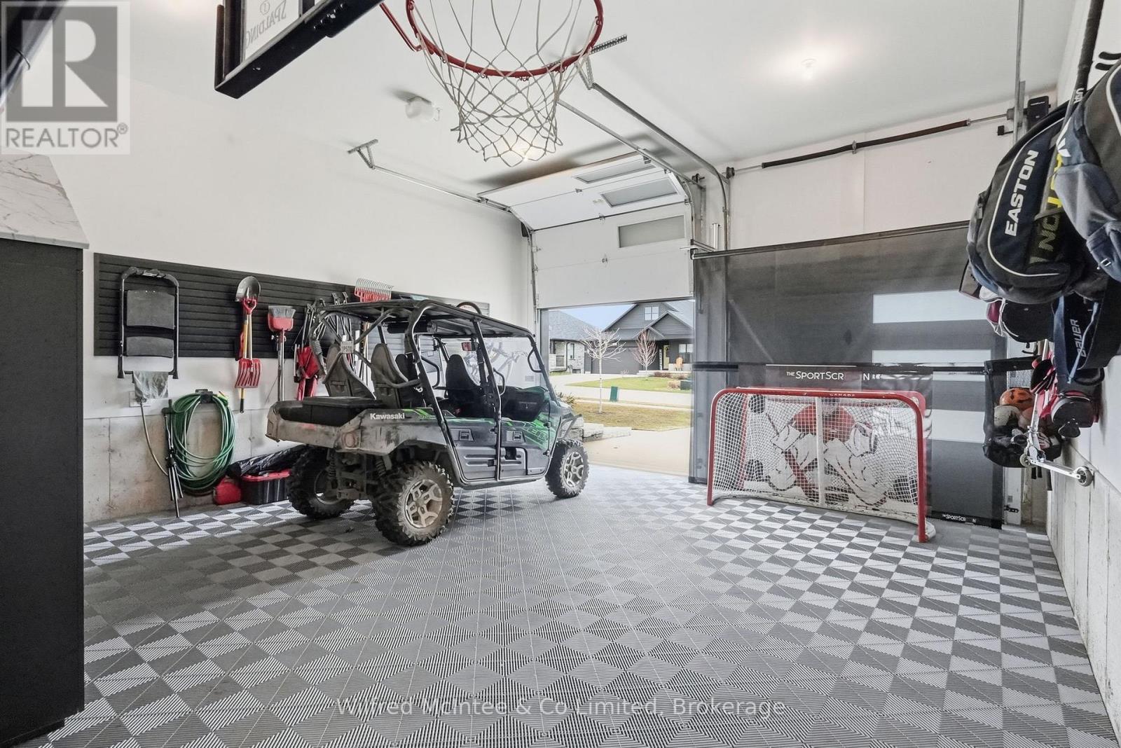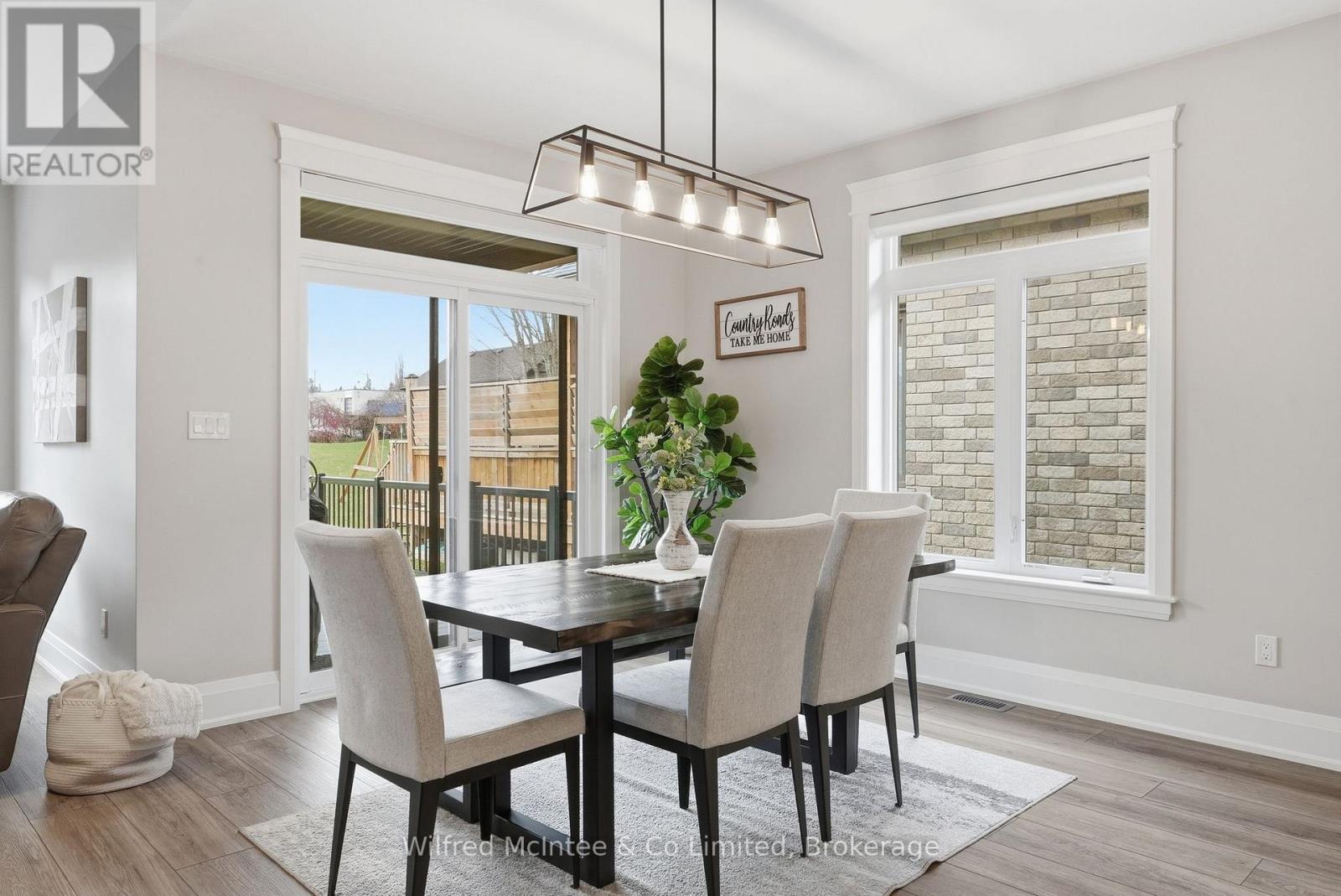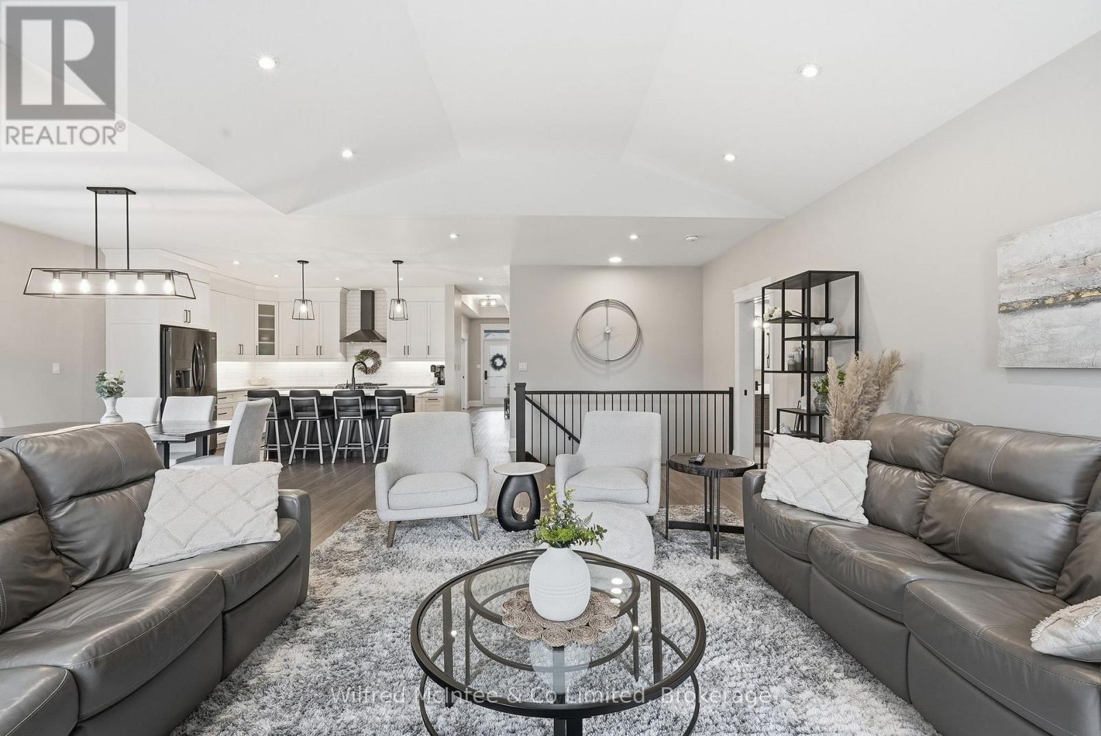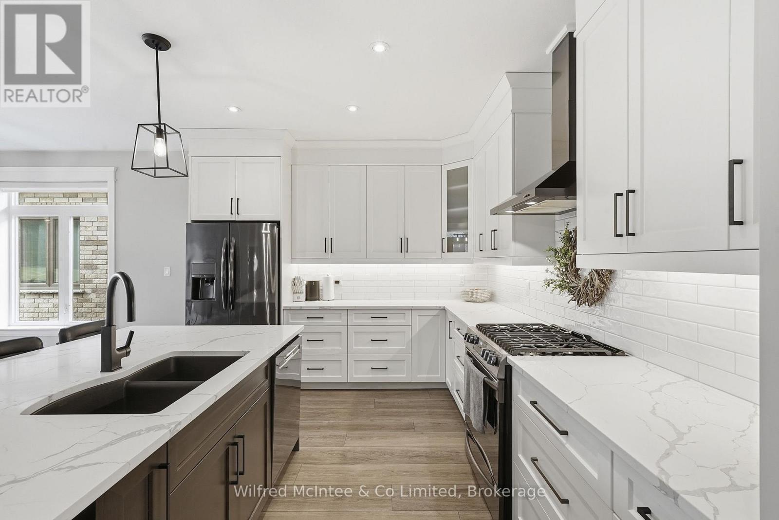 Welcome to 105 Fourth Street in Walkerton! This exquisite, magazine-worthy bungalow built in 2020 by the highly regarded Candue Homes is perfectly positioned on an exceptionally deep and private lot in one of Walkerton's most sought-after family-friendly neighborhoods. From the moment you enter this show-stopping residence, you're greeted by a bright, sophisticated interior defined by sleek lines, upscale finishes, and impeccable attention to detail. At the heart of the home is a chef-inspired, designer kitchen featuring stainless steel appliances, elegant white cabinetry, quartz countertops and breakfast bar. The adjoining dining area flows seamlessly to a low-maintenance aluminum deck, extending to a private patio oasis complete with a custom gas fire table topped in granite-ideal for relaxing evenings! The living room highlighted by a fireplace exudes warmth and sophistication. The main level also features a spacious bedroom with a walk-in closet, a beautifully finished 3-piece bath with a tiled shower, a convenient laundry room, and a grand primary suite boasting a spa-inspired ensuite and a stunning custom walk-in closet showcasing cutting-edge design and exceptional storage solutions. The fully finished lower level is equally impressive, offering an expansive and beautifully detailed family room, two additional well-appointed bedrooms, a gorgeous 4-piece bathroom, and a practical utility space. A convenient walk-up provides direct access to the heated double car garage, which is fully outfitted with premium Ribtrax flooring and built-in storage systems-delivering organization and versatility. Outside, the tastefully landscaped grounds are both elegant and low-maintenance. This exceptional property is a rare blend of modern luxury, thoughtful design, and effortless living-an absolute must-see in Walkerton. (id:64974)