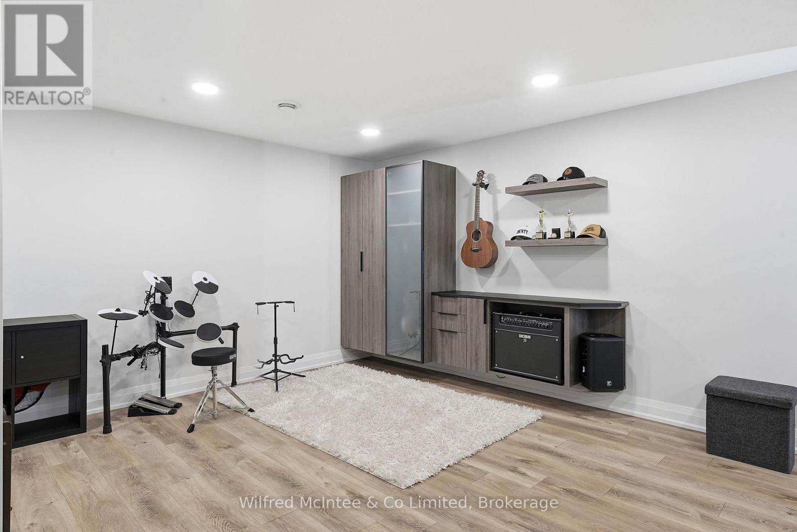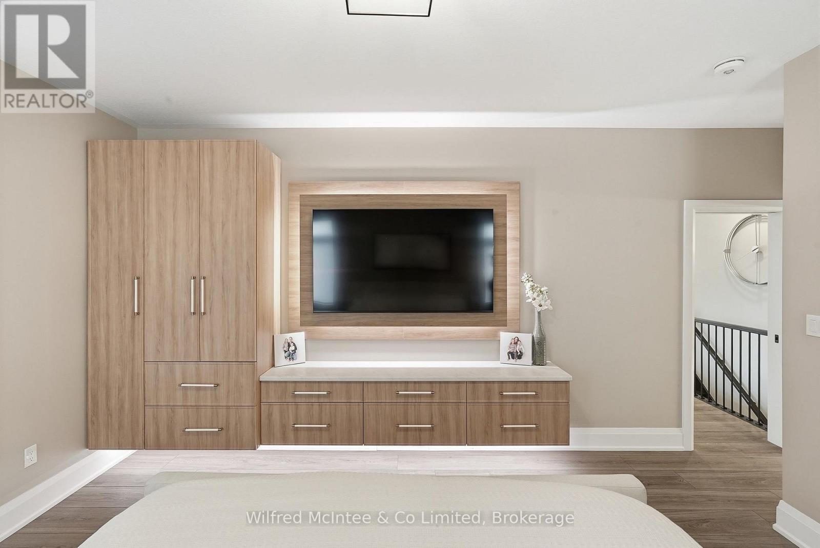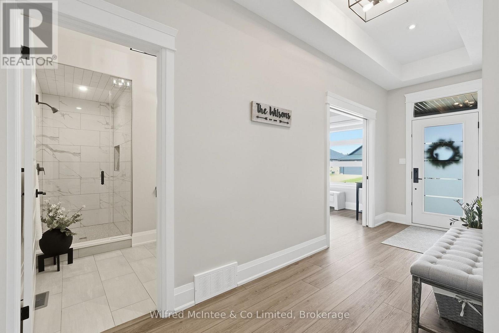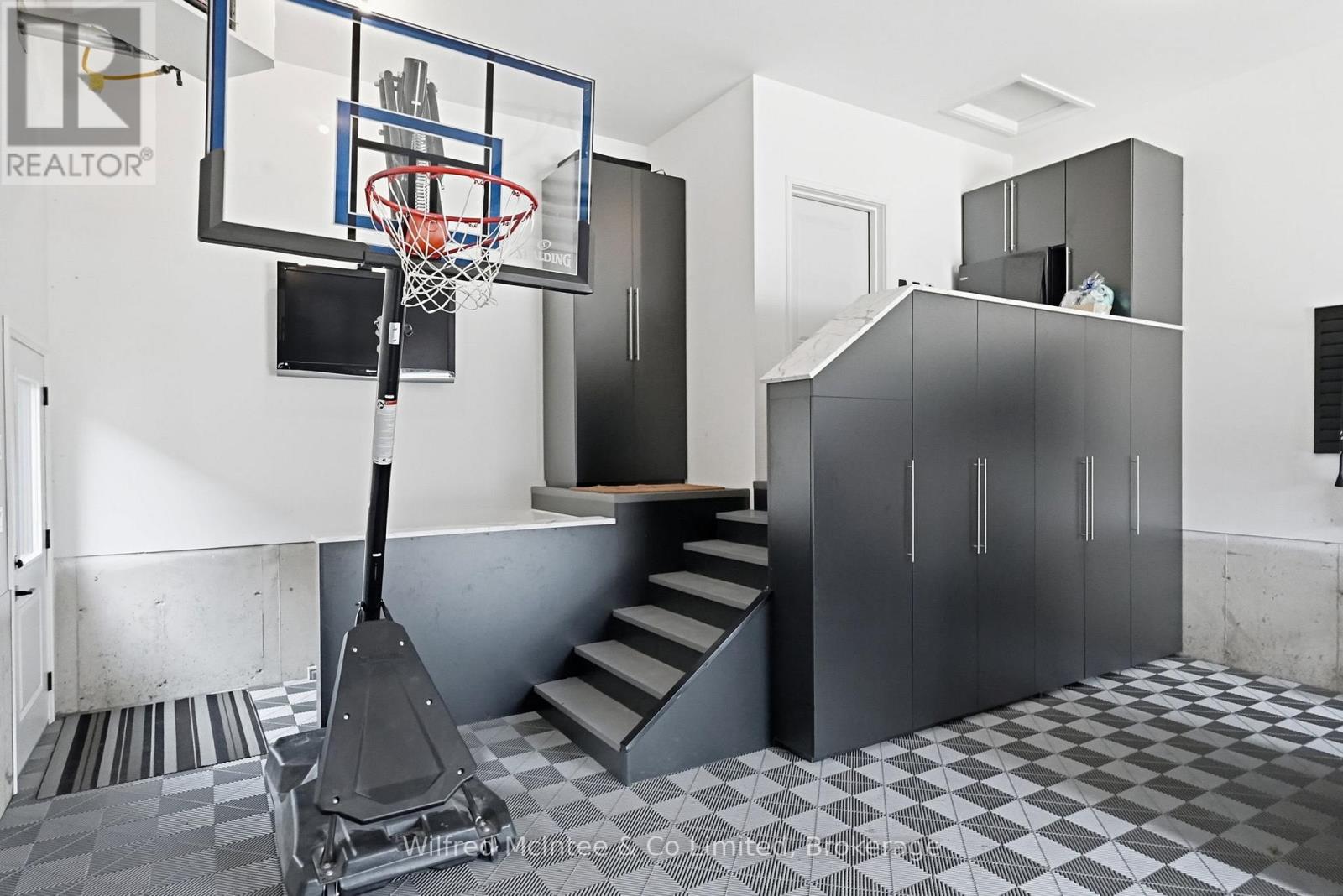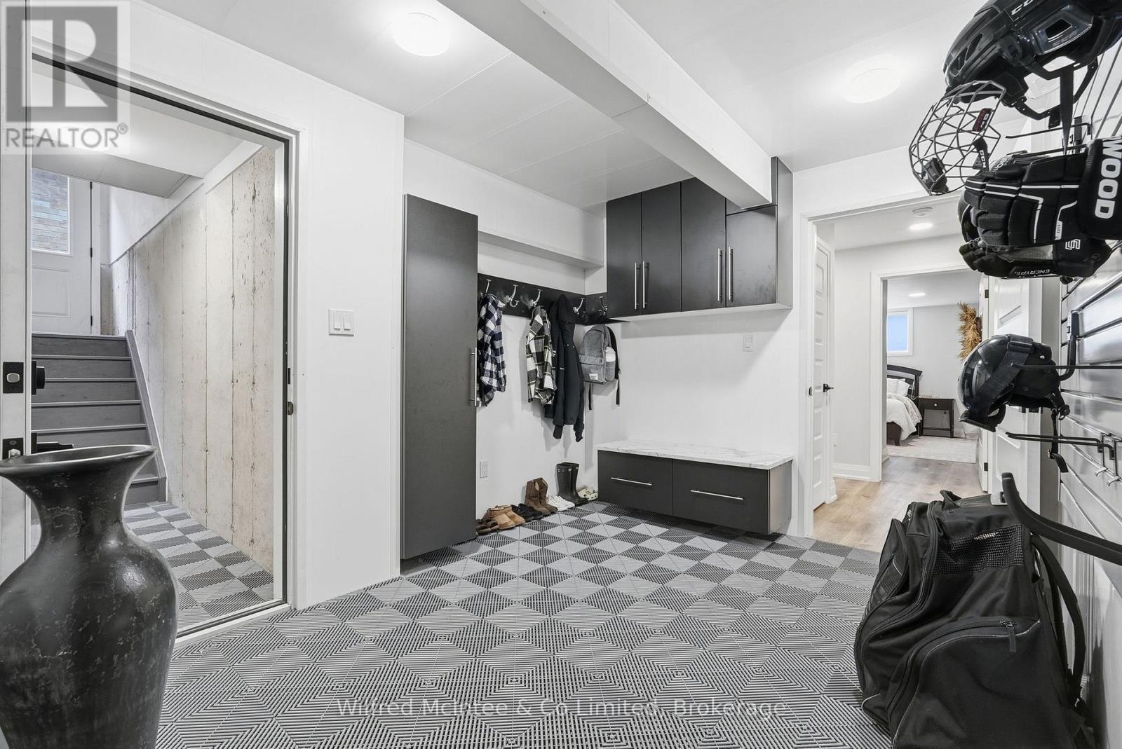 Welcome to 105 Fourth Street in Walkerton! This exquisite, magazine-worthy bungalow built in 2020 by the highly regarded Candue Homes is perfectly positioned on an exceptionally deep and private lot in one of Walkerton's most sought-after family-friendly neighborhoods. From the moment you enter this show-stopping residence, you're greeted by a bright, sophisticated interior defined by sleek lines, upscale finishes, and impeccable attention to detail. At the heart of the home is a chef-inspired, designer kitchen featuring stainless steel appliances, elegant white cabinetry, quartz countertops and breakfast bar. The adjoining dining area flows seamlessly to a low-maintenance aluminum deck, extending to a private patio oasis complete with a custom gas fire table topped in granite-ideal for relaxing evenings! The living room highlighted by a fireplace exudes warmth and sophistication. The main level also features a spacious bedroom with a walk-in closet, a beautifully finished 3-piece bath with a tiled shower, a convenient laundry room, and a grand primary suite boasting a spa-inspired ensuite and a stunning custom walk-in closet showcasing cutting-edge design and exceptional storage solutions. The fully finished lower level is equally impressive, offering an expansive and beautifully detailed family room, two additional well-appointed bedrooms, a gorgeous 4-piece bathroom, and a practical utility space. A convenient walk-up provides direct access to the heated double car garage, which is fully outfitted with premium Ribtrax flooring and built-in storage systems-delivering organization and versatility. Outside, the tastefully landscaped grounds are both elegant and low-maintenance. This exceptional property is a rare blend of modern luxury, thoughtful design, and effortless living-an absolute must-see in Walkerton. (id:64974)