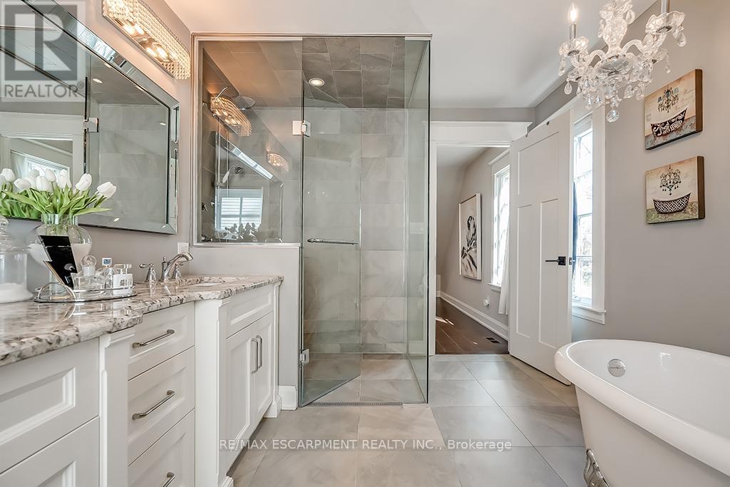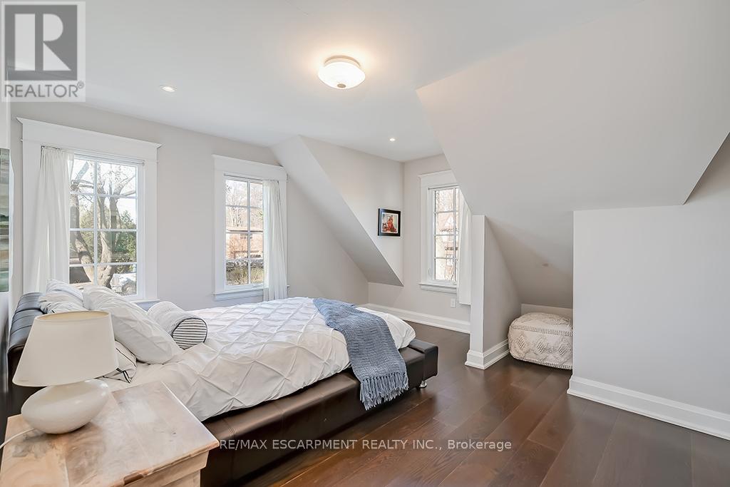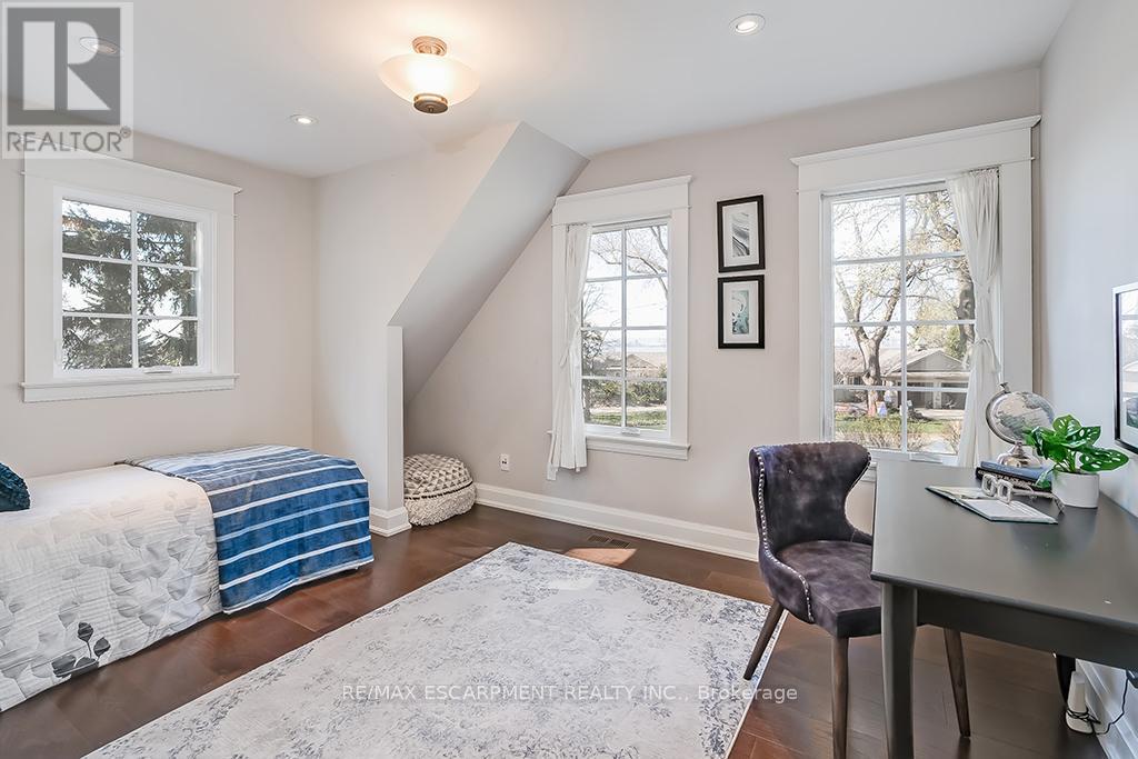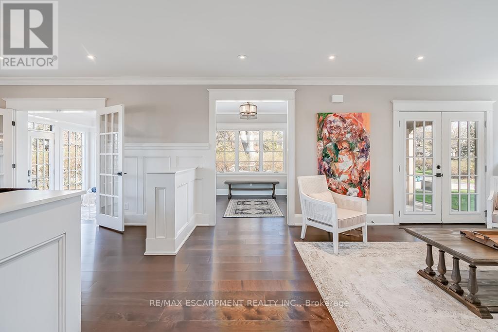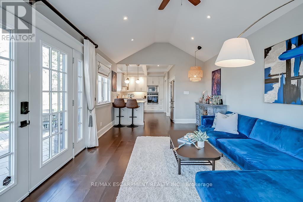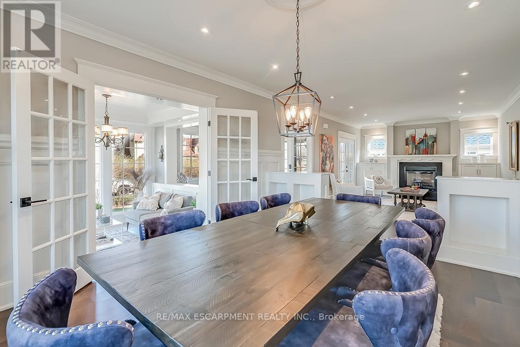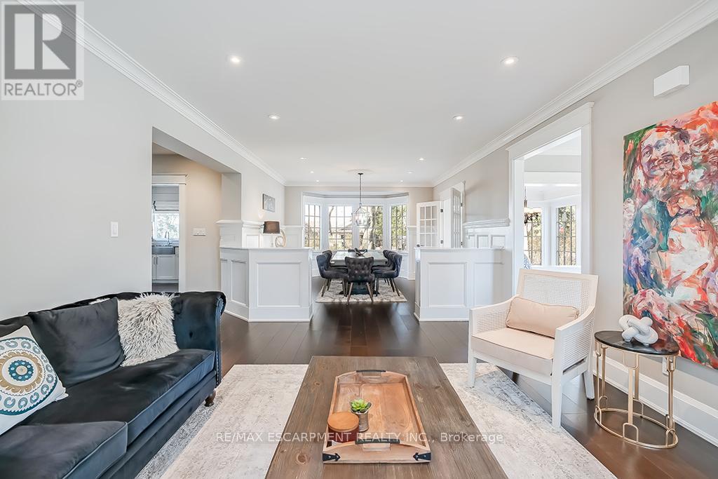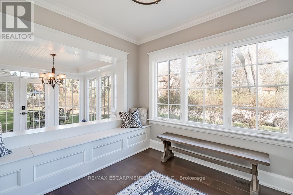 Beautifully upgraded character home in Aldershot's exclusive "Indian Point"! Just steps to downtown, the bay/lake, restaurants, shops,parks, highway access and the Burlington Golf & Country Club! Stunning custom kitchen with granite, coffered ceiling, stainless steelappliances, gas cooktop and a subway tile backsplash. Spacious family room with vaulted ceiling and a walkout to a large patiooverlooking a tranquil outdoor setting. Living room with gas fireplace and large separate dining room with bay window and wainscotingopens to a charming sunroom with tray ceiling and walkout. The upper level features three bedrooms including two with stunning viewsof Burlington Bay and a primary bedroom with spa-inspired 5-piece ensuite and a separate dressing room! Hardwood floors, crownmoulding, pot lighting and loads of natural light throughout! Main level laundry/mudroom with inside entry from a double garage with EVcharger and two driveways with combined parking for at least 8 cars. 3+1 bedrooms and 2.5 bathrooms. (id:64974)