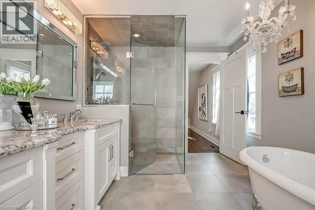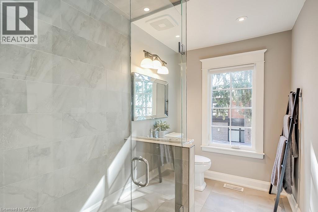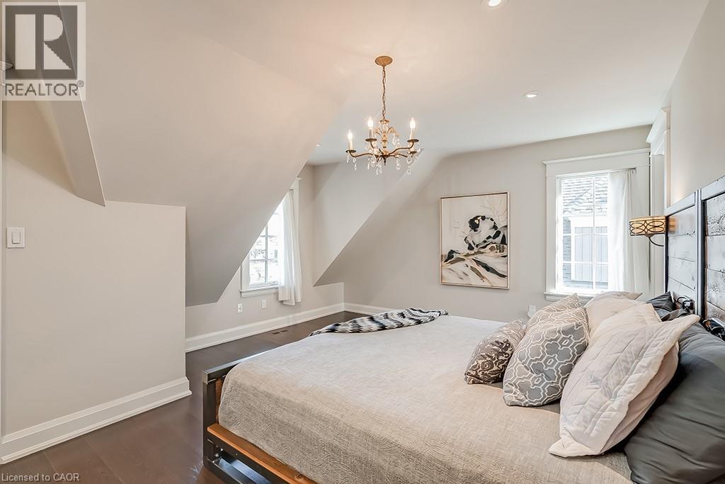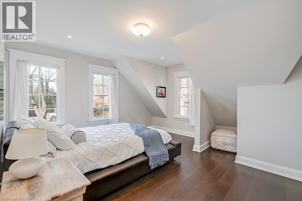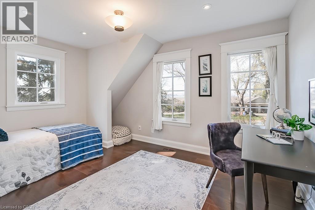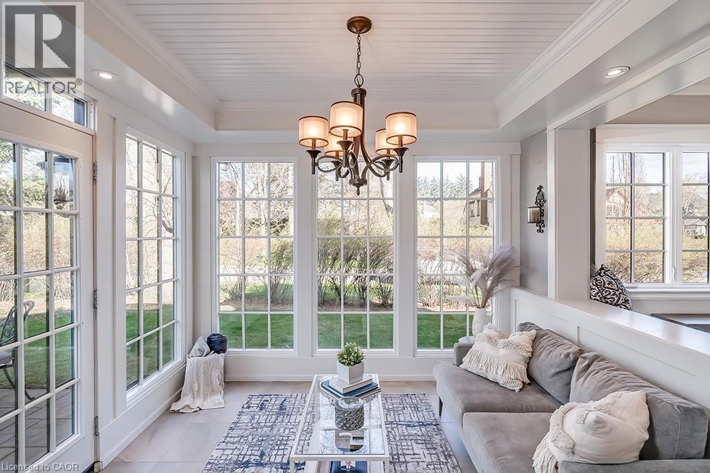 Beautifully upgraded character home in Aldershot's exclusive Indian Point! Just steps to downtown, the bay/lake, restaurants, shops, parks, highway access and the Burlington Golf & Country Club! Stunning custom kitchen with granite, coffered ceiling, stainless steel appliances, gas cooktop and a subway tile backsplash. Spacious family room with vaulted ceiling and a walkout to a large patio overlooking a tranquil outdoor setting. Living room with gas fireplace and large separate dining room with bay window and wainscoting opens to a charming sunroom with tray ceiling and walkout. The upper level features three bedrooms including two with stunning views of Burlington Bay and a primary bedroom with spa-inspired 5-piece ensuite and a separate dressing room! Hardwood floors, crown moulding, pot lighting and loads of natural light throughout! Main level laundry/mudroom with inside entry from a double garage with EV charger and two driveways with combined parking for at least 8 cars. 3+1 bedrooms and 2.5 bathrooms. (id:64974)