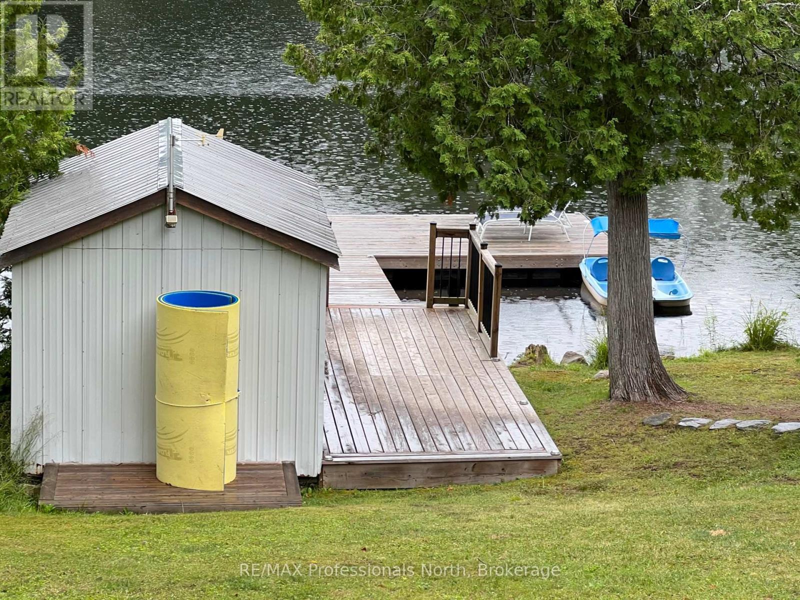 Waterfront on the Grace River with Access to Grace & Dark Lake. Turnkey 3-Bedroom Retreat with Boathouse, Newer Dock & Proven Income. Welcome to your private waterfront retreat on the sought-after Grace River, offering access to both Grace Lake and Dark Lake-a desirable two-lake chain ideal for boating, swimming, and exploring. This beautifully updated, year-round 3-bedroom cottage or home features a bright open-concept layout with modern finishes and expansive windows capturing peaceful water views. Designed for both comfort and functionality, it's perfectly suited as a personal getaway or full-time residence. Enjoy an expansive wrap around waterfront deck overlooking the shore complemented by a newer dock and a spectacular boathouse at the water's edge-ideal for maximizing your waterfront lifestyle. The property also includes a detached garage, providing excellent storage for vehicles and recreational equipment. Move-in ready and being offered with most furnishings included (some exclusions apply), this turnkey property also boasts a strong, established rental income history-making it an exceptional investment opportunity. A rare offering combining updated living, sandy waterfront, and access to a two-lake chain in a highly desirable location. (id:64974)