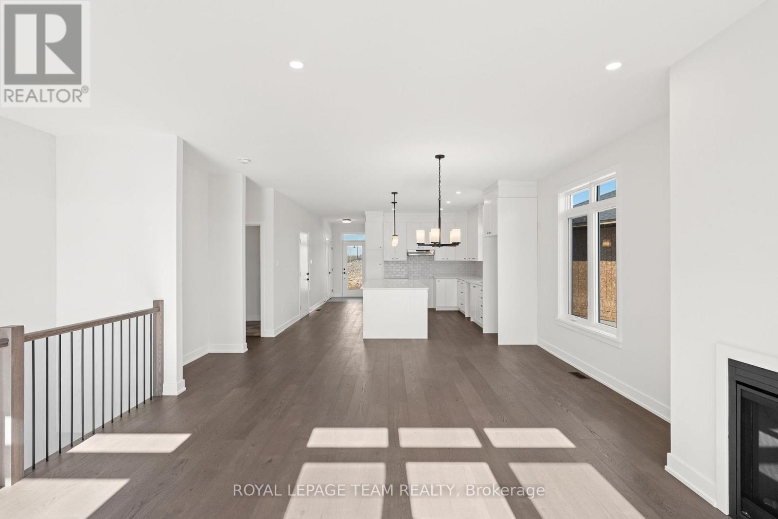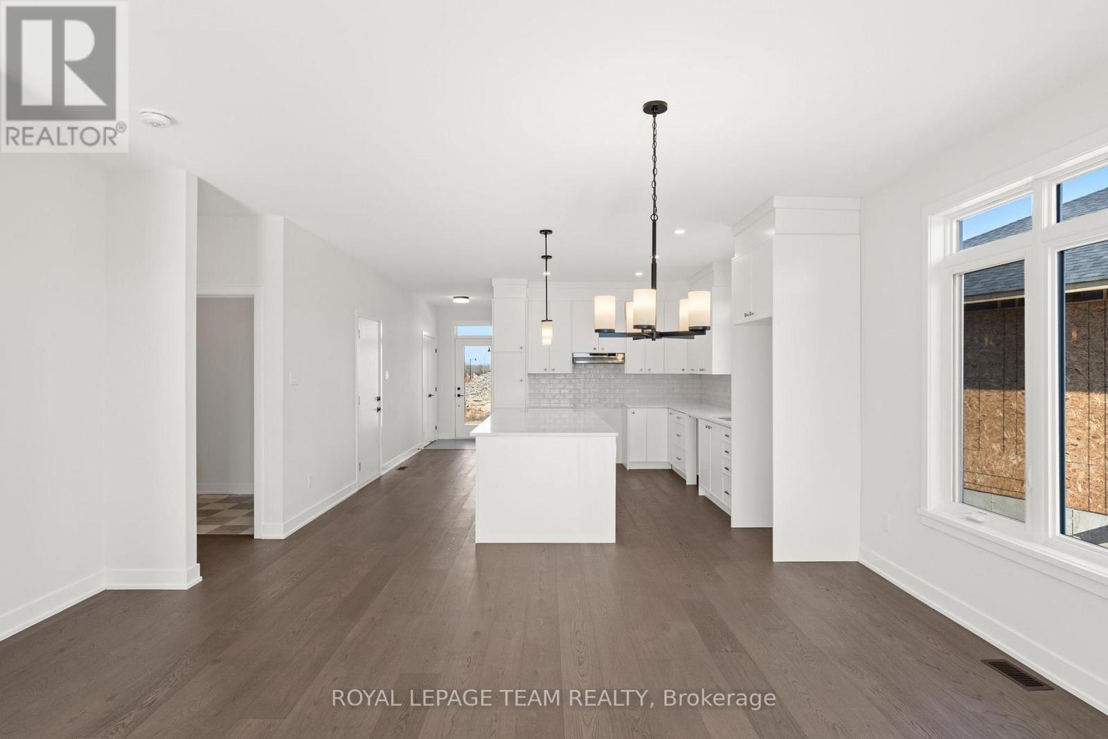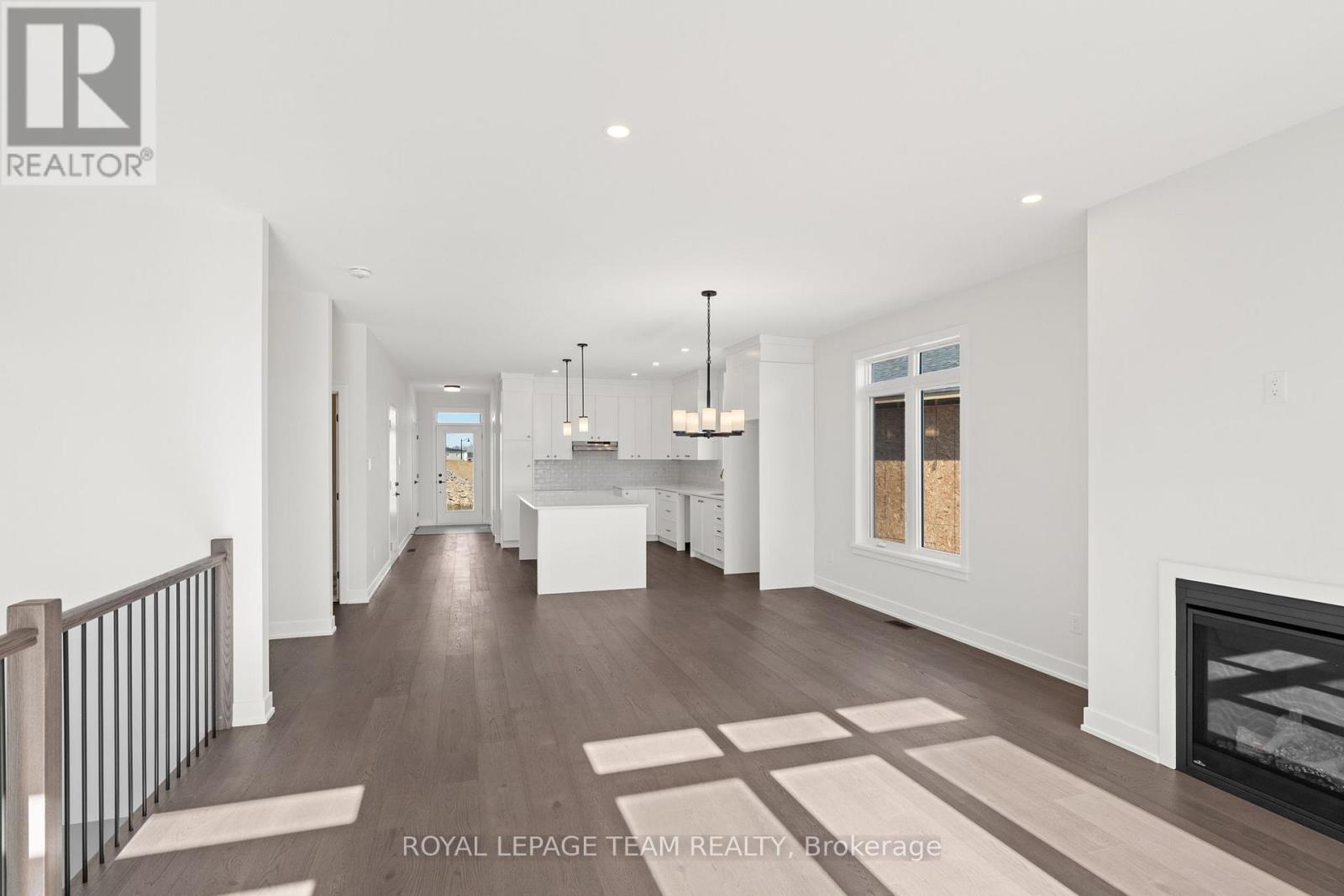 Welcome to Stirling Meadows in Brockville. This newly built property offers both comfort and convenience, with easy access to Highway 401, shopping, and everyday amenities. The Brock Model Gable Roof by Mackie Homes provides approximately 1,444 sq. ft. of thoughtfully designed living space, featuring two bedrooms, two bathrooms, and an office overlooking the front yard. The open-concept layout maximizes functionality and flow, with clear sightlines connecting the kitchen, dining room, and great room. Filled with natural light from large windows with transoms and recessed lighting, the interior feels bright and inviting. The kitchen showcases crisp white cabinetry, a tile backsplash, quartz countertops, and a centre island that extends the prep area. Perfect for entertaining, the dining room opens to the adjoining great room, which features a fireplace and access to the exterior deck. The primary bedroom features a walk-in closet and a contemporary 3-piece ensuite. Additional highlights include a dedicated laundry room and interior access to the single garage. Simply move in and enjoy this beautiful property! (id:64974)