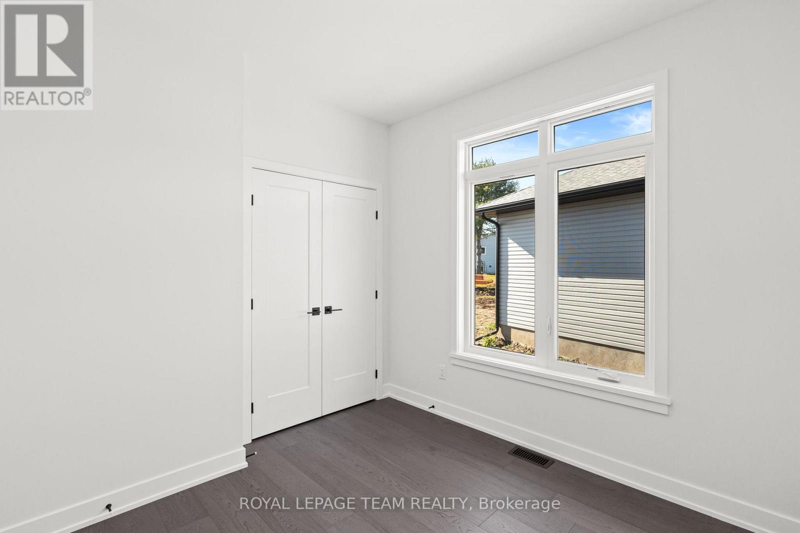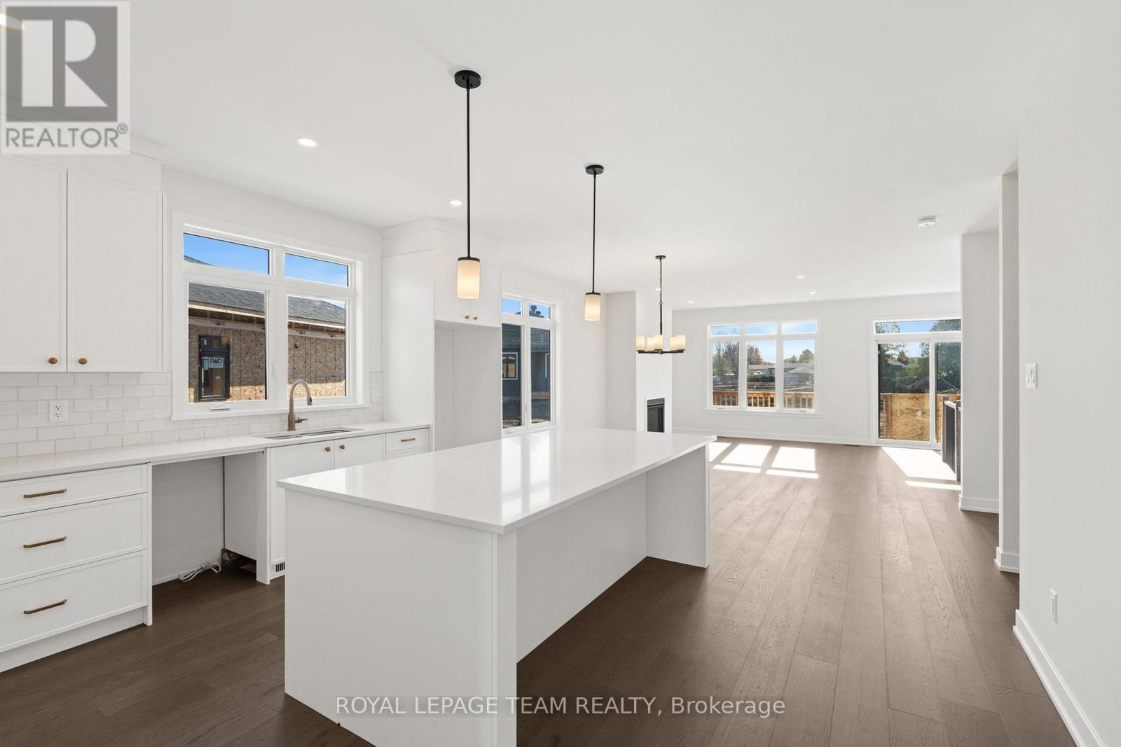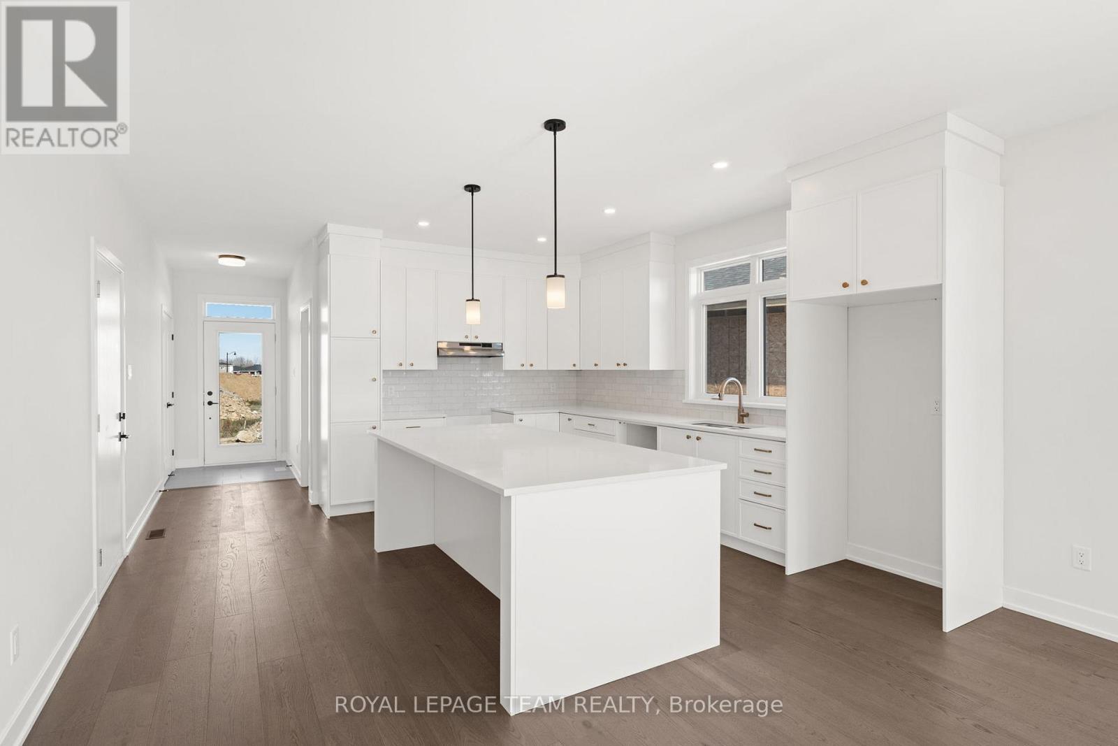 Welcome to Stirling Meadows in Brockville. This newly built property offers both comfort and convenience, with easy access to Highway 401, shopping, and everyday amenities. The Brock Model Gable Roof by Mackie Homes provides approximately 1,444 sq. ft. of thoughtfully designed living space, featuring two bedrooms, two bathrooms, and an office overlooking the front yard. The open-concept layout maximizes functionality and flow, with clear sightlines connecting the kitchen, dining room, and great room. Filled with natural light from large windows with transoms and recessed lighting, the interior feels bright and inviting. The kitchen showcases crisp white cabinetry, a tile backsplash, quartz countertops, and a centre island that extends the prep area. Perfect for entertaining, the dining room opens to the adjoining great room, which features a fireplace and access to the exterior deck. The primary bedroom features a walk-in closet and a contemporary 3-piece ensuite. Additional highlights include a dedicated laundry room and interior access to the single garage. Simply move in and enjoy this beautiful property! (id:64974)