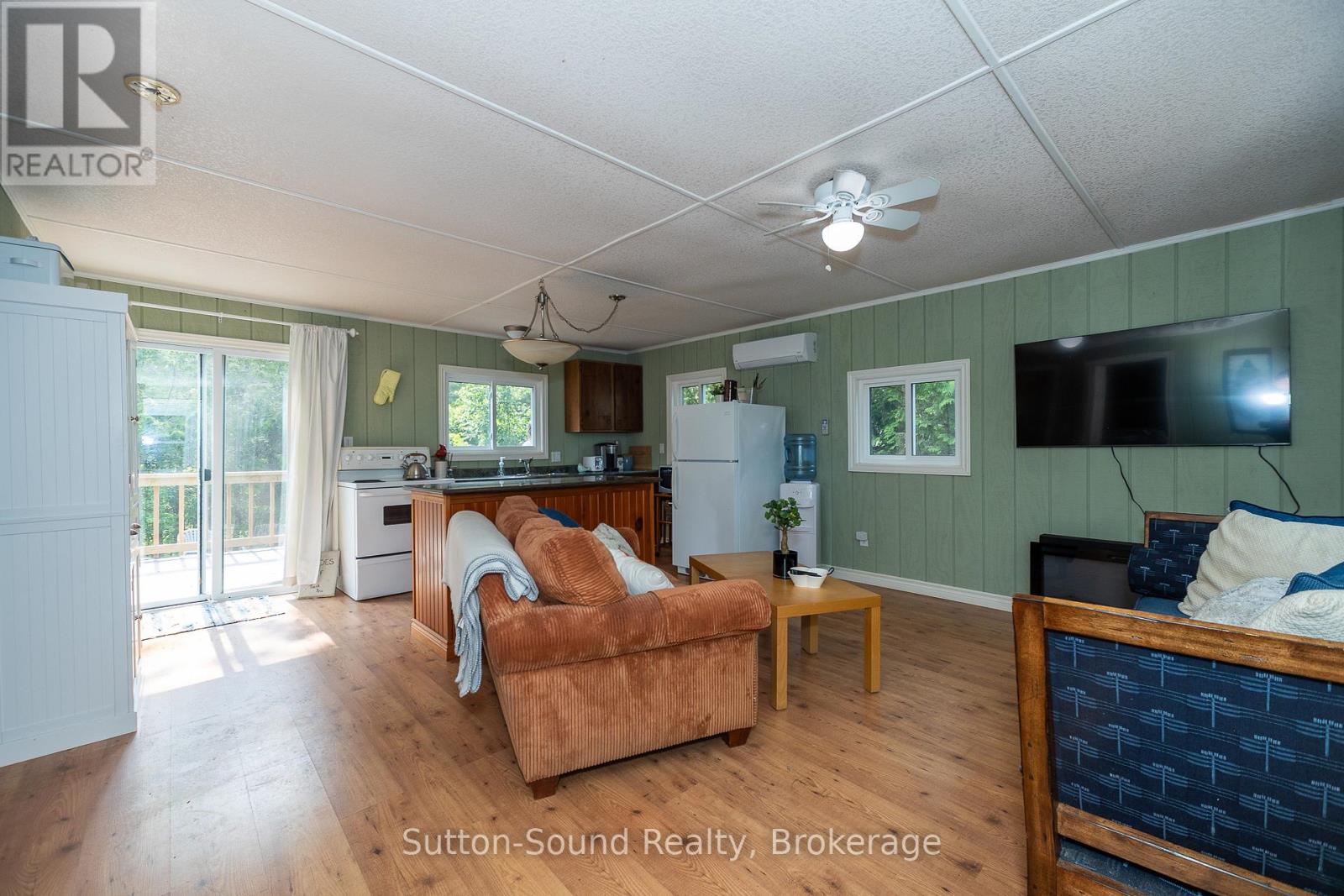 Your summer escape is calling! Just 150 metres from the sandy shores of Lake Huron, this adorable 2-bedroom cottage is tucked in a desirable location just south of Sauble Beach. Imagine morning dips in the lake, lazy afternoons on the wrap-around deck, and unforgettable sunsets that Lake Huron is famous for right at your doorstep! Inside, the open-concept living space is bright, comfy, and ready to enjoy, complete with a ductless heat pump with A/C for warm days and cool nights. Recent updates include vinyl siding, spacious deck, and more. There's plenty of parking and room to entertain after a day at the beach. Affordable seasonal living at its best annual lease is $4,660 + $1,200 maintenance fee. Pack your flip flops, bring the kids, and start making memories! (id:64974)