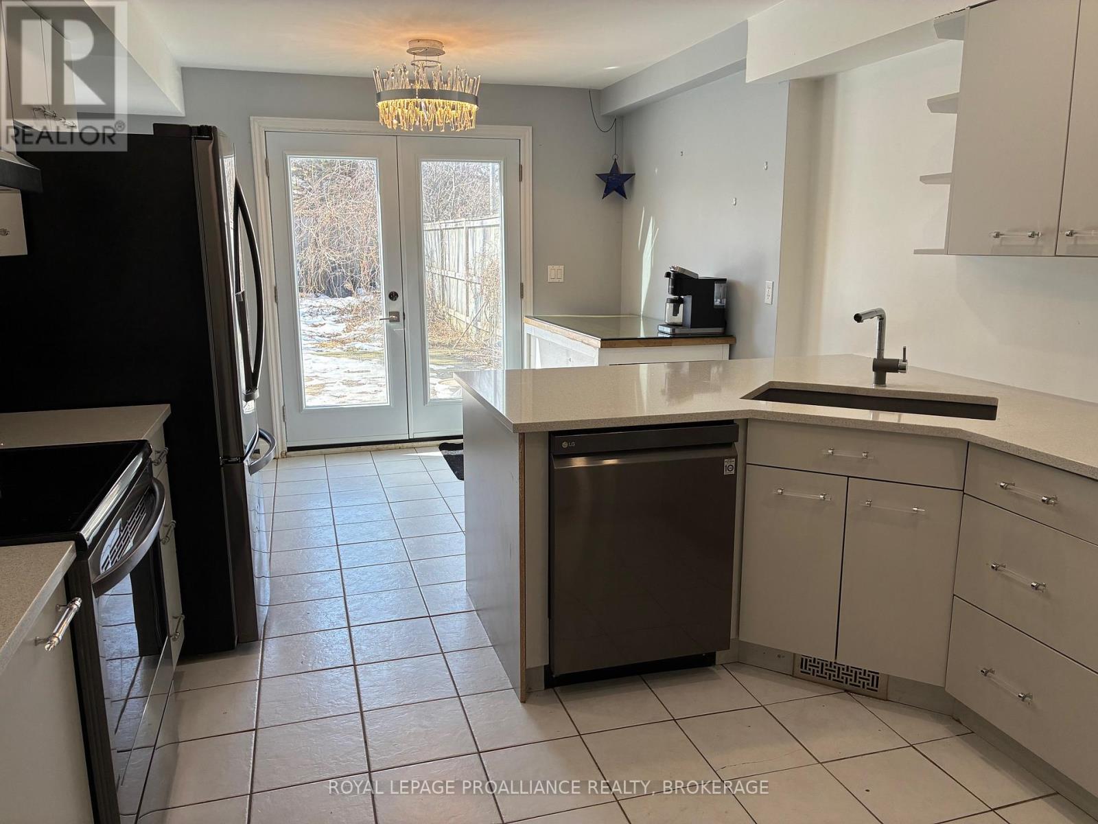 Discover your ABC's, Affordable, Bright and Convenient. This spacious and uniquely designed semi detached home is located in one of Kingston's most desired west end locations, next to Conservatory Pond. Upon entry, you're welcomed by a vaulted ceiling grand foyer that leads into an open-concept main level layout that is carpet free and offers living room, dining area, and updated kitchen. In 2019, the kitchen was completely replaces all new cabinetry, quartz counter tops and stainless appliances. Main floor laundry, access to the attached garage and a 2pc bathroom completes the main floor. The upper level features three generous sized bedrooms, two with oversized closets. The primary bedroom offers a "cheater" door to the main bathroom, huge windows and multiple closets. In-floor radiant heating on the main level with a forced air system that also offers A/C, that heats and cools the upper level. The fenced rear yard with no rear neighbour and large deck awaits your landscaping touches. Great neighbours and a cul de sac location make this property one to put on your list. Welcome Home. (id:64974)