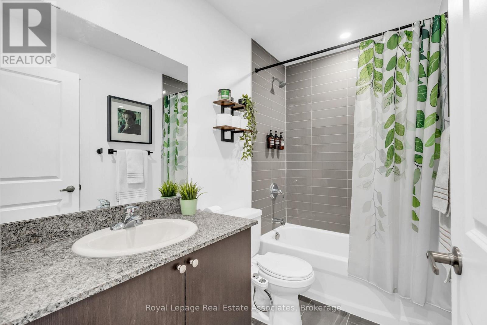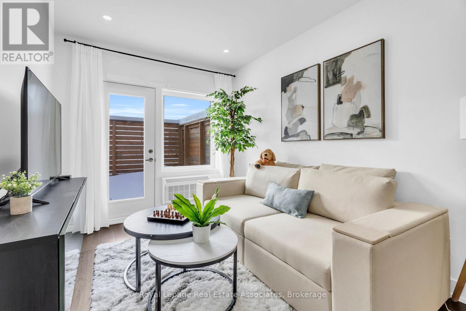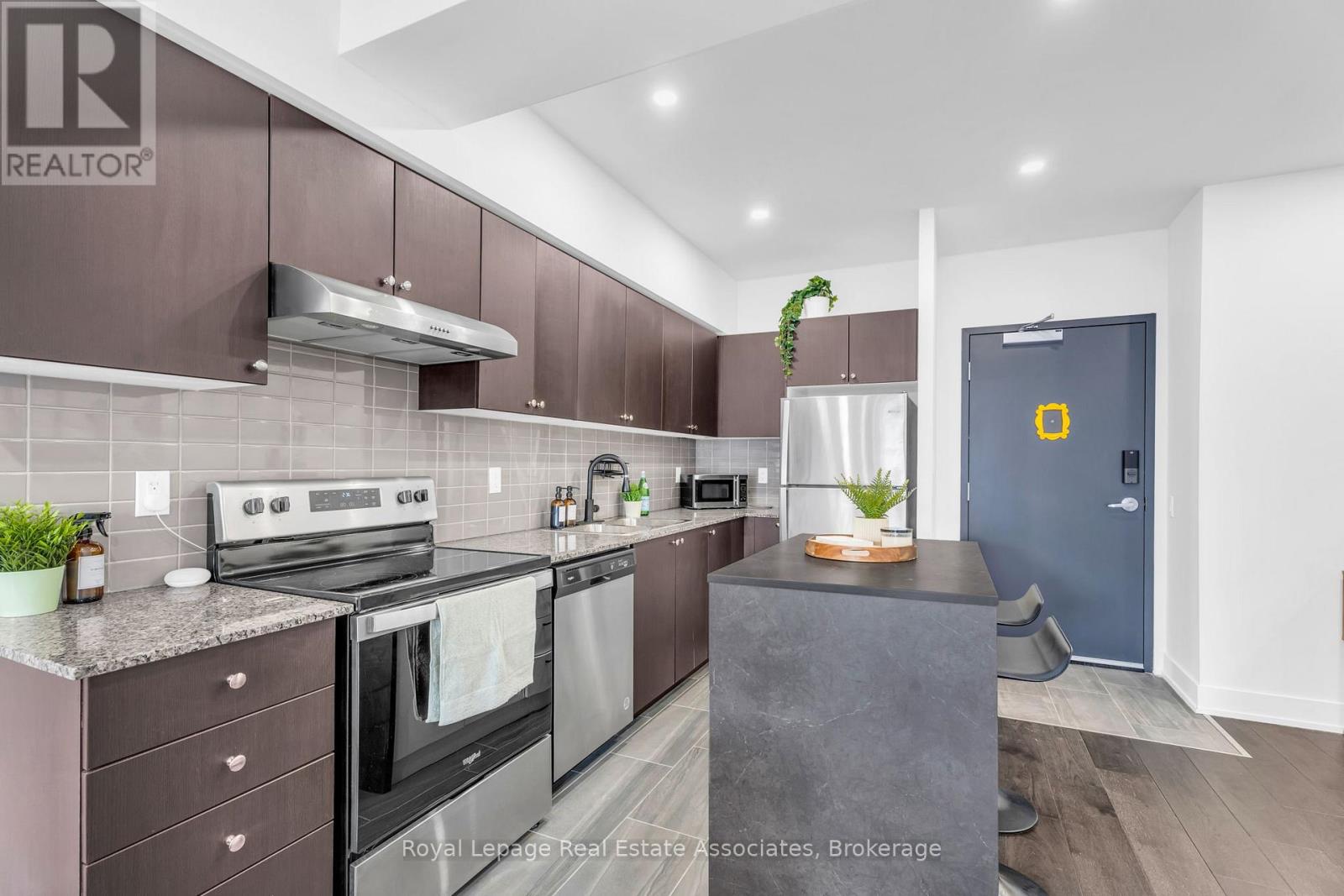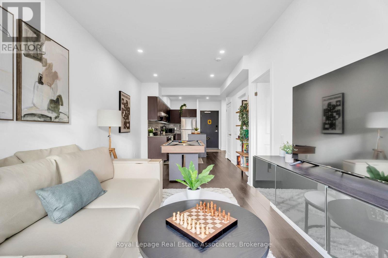 Set just moments from the heart of downtown Orangeville, this one bedroom plus den residence offers a thoughtfully composed balance of modern living and small-town ease. Positioned along Broadway Street and within easy walking distance to cafés, shops, restaurants, and everyday amenities, the home feels both connected and comfortably removed. Inside, the Madison model reveals a well-considered layout where light and proportion guide the experience from room to room. Large windows draw natural light deep into the living space, creating an atmosphere that feels open yet grounded. The flow is effortless, with a dedicated den offering flexibility for a home office, reading nook, or guest space, quietly set apart.The kitchen is clean-lined and contemporary, anchored by elegant porcelain tile flooring and a refined porcelain tile backsplash that bring both durability and understated sophistication. Designed for both function and calm, the space opens naturally to the living and dining areas, ideal for everyday living or effortless entertaining. From here, step outside to a rare and generous 220 square foot private walk-out patio-an extension of the living space that encourages morning coffee outdoors, evening unwinding, or simple moments of fresh air rarely found in condominium living.The bedroom is serene and well-proportioned, offering ample storage and a true sense of retreat at the end of the day. The modern four-piece bathroom is finished with porcelain tile flooring, echoing the home's cohesive design language. In-suite laundry and individually controlled heating and air conditioning in each room ensure comfort is both seamless and precisely tailored.Completing the offering are a private parking space, storage locker, and convenient visitor parking-details that quietly enhance daily life. This residence is ideal for first time homebuyers, downsizers or those seeking a refined, low-maintenance lifestyle just steps from the charm and vitality of downtown Orangeville. (id:64974)
