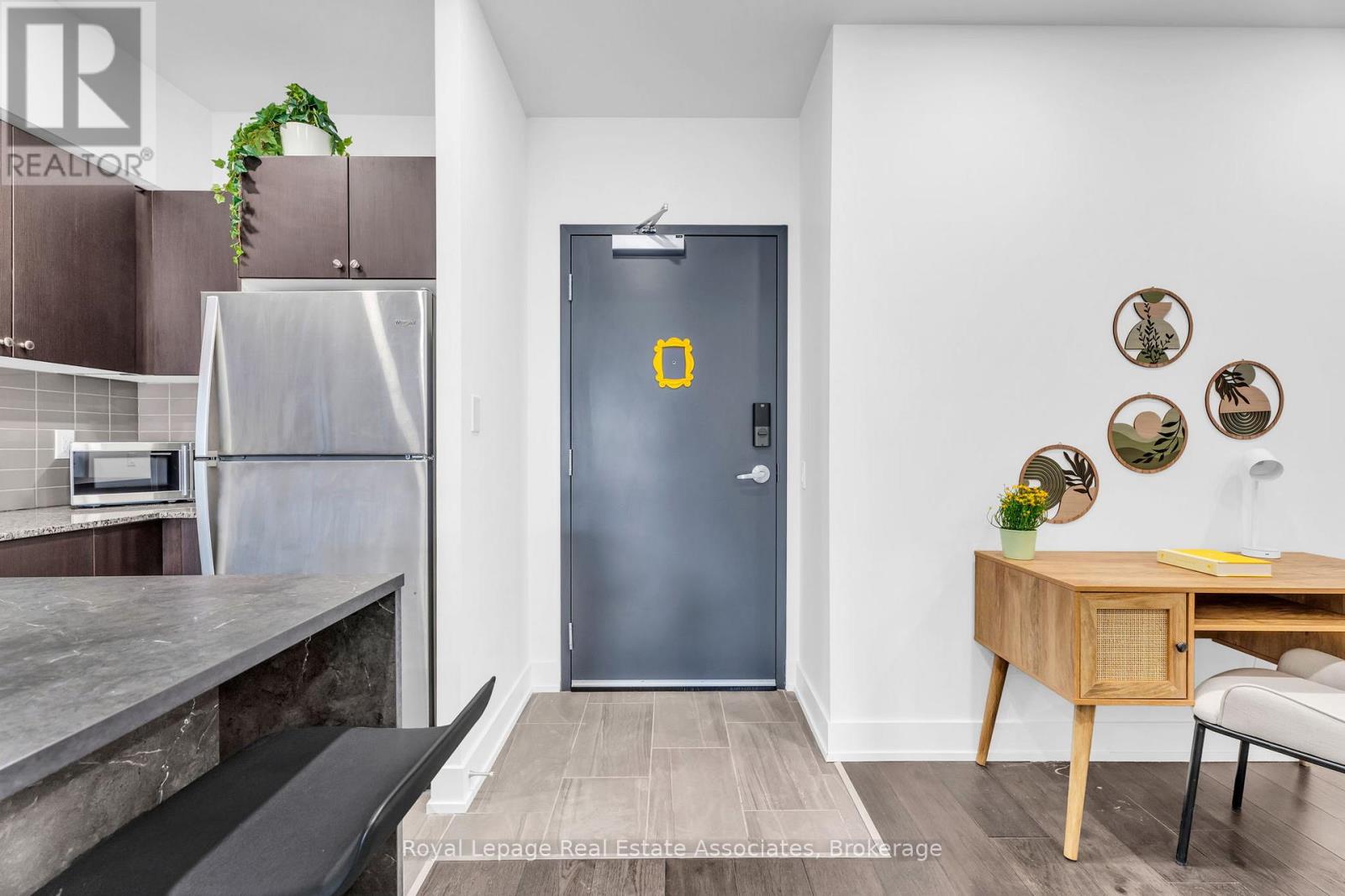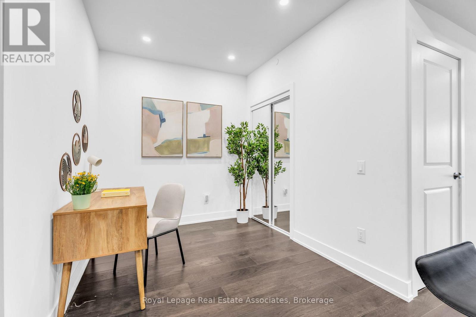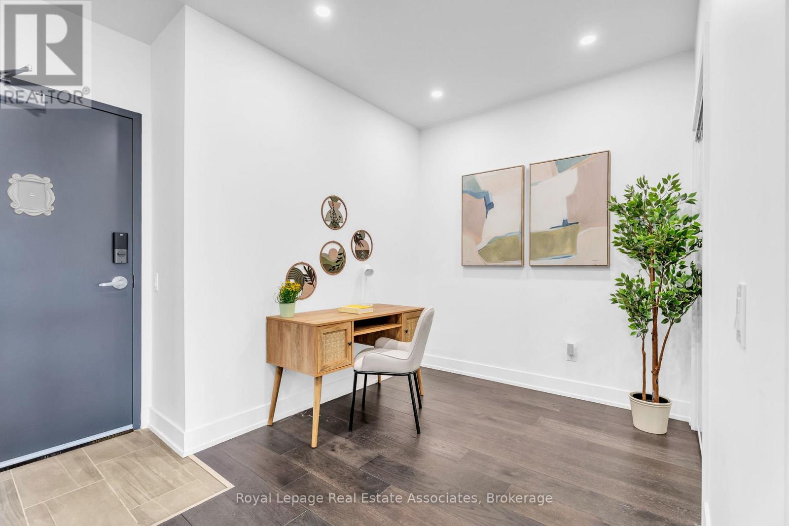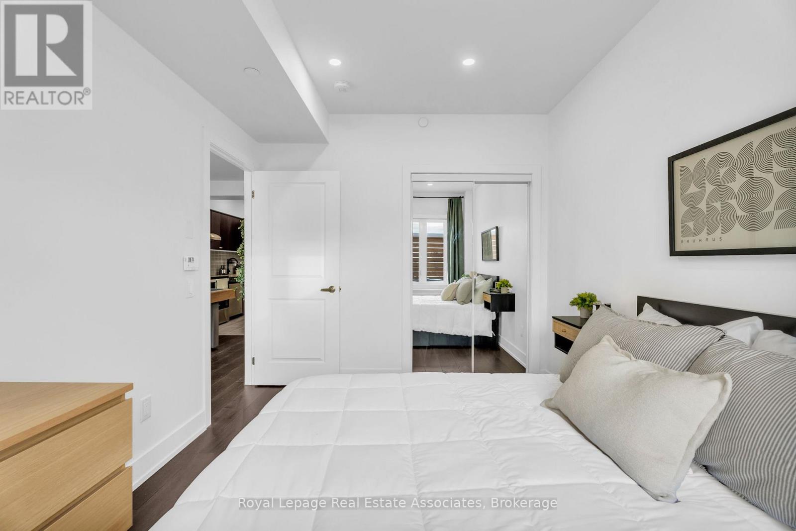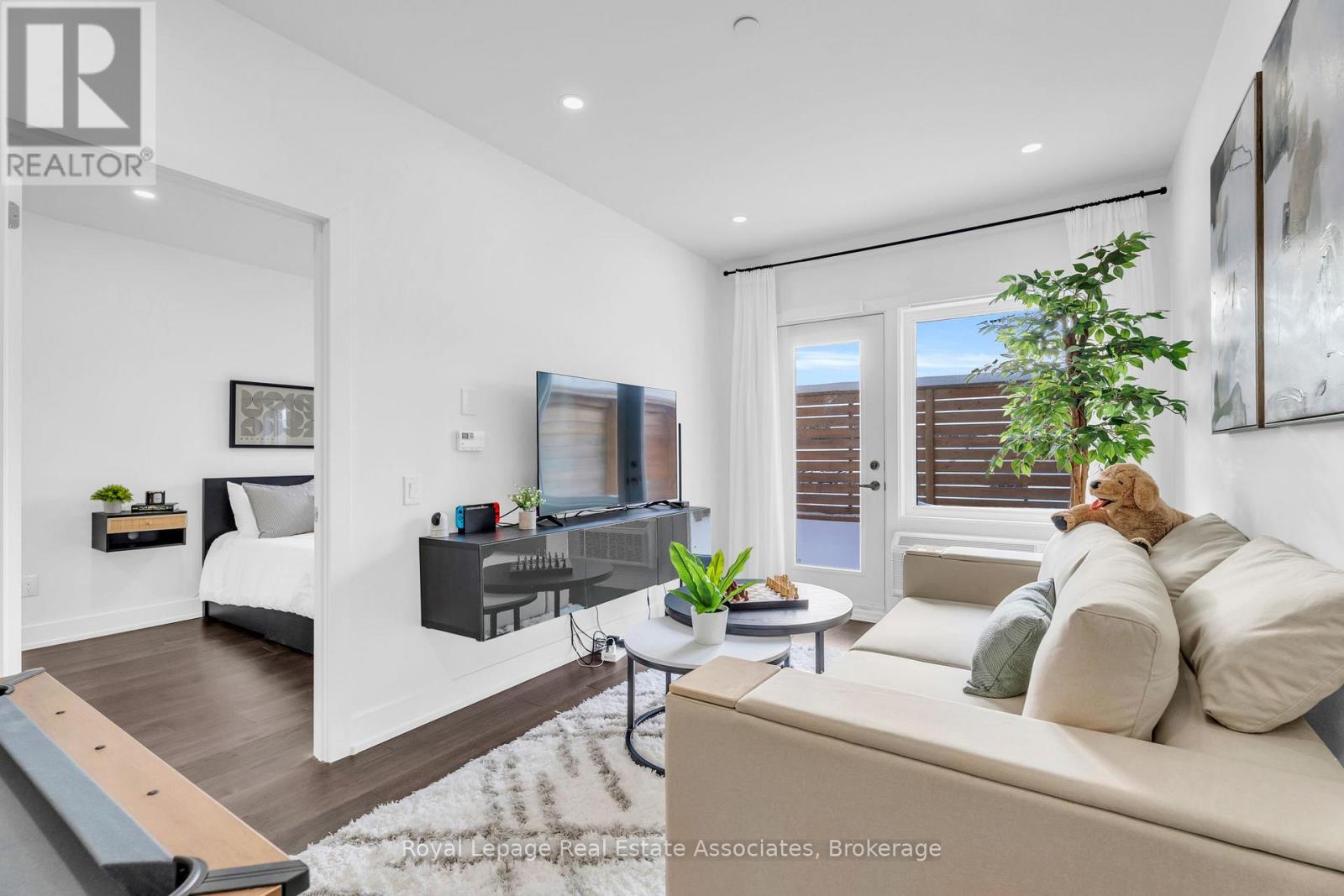 Set just moments from the heart of downtown Orangeville, this one bedroom plus den residence offers a thoughtfully composed balance of modern living and small-town ease. Positioned along Broadway Street and within easy walking distance to cafés, shops, restaurants, and everyday amenities, the home feels both connected and comfortably removed. Inside, the Madison model reveals a well-considered layout where light and proportion guide the experience from room to room. Large windows draw natural light deep into the living space, creating an atmosphere that feels open yet grounded. The flow is effortless, with a dedicated den offering flexibility for a home office, reading nook, or guest space, quietly set apart.The kitchen is clean-lined and contemporary, anchored by elegant porcelain tile flooring and a refined porcelain tile backsplash that bring both durability and understated sophistication. Designed for both function and calm, the space opens naturally to the living and dining areas, ideal for everyday living or effortless entertaining. From here, step outside to a rare and generous 220 square foot private walk-out patio-an extension of the living space that encourages morning coffee outdoors, evening unwinding, or simple moments of fresh air rarely found in condominium living.The bedroom is serene and well-proportioned, offering ample storage and a true sense of retreat at the end of the day. The modern four-piece bathroom is finished with porcelain tile flooring, echoing the home's cohesive design language. In-suite laundry and individually controlled heating and air conditioning in each room ensure comfort is both seamless and precisely tailored.Completing the offering are a private parking space, storage locker, and convenient visitor parking-details that quietly enhance daily life. This residence is ideal for first time homebuyers, downsizers or those seeking a refined, low-maintenance lifestyle just steps from the charm and vitality of downtown Orangeville. (id:64974)