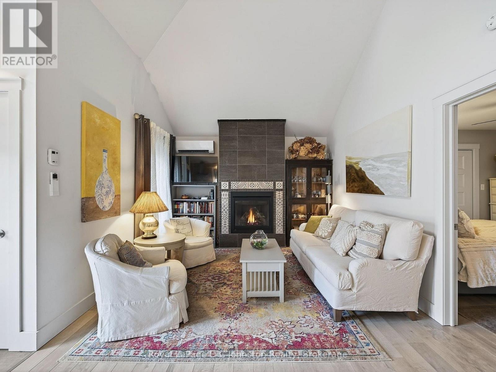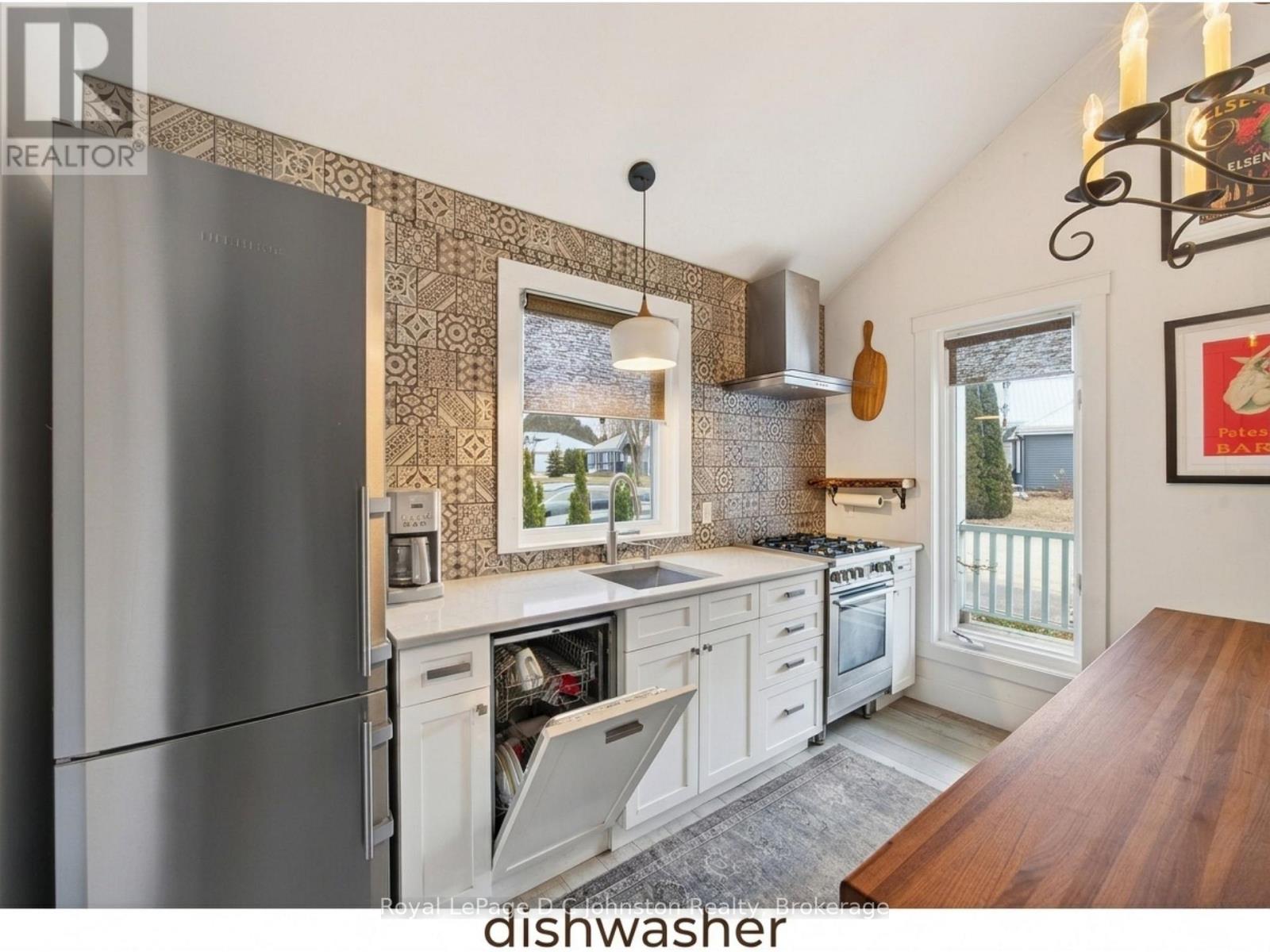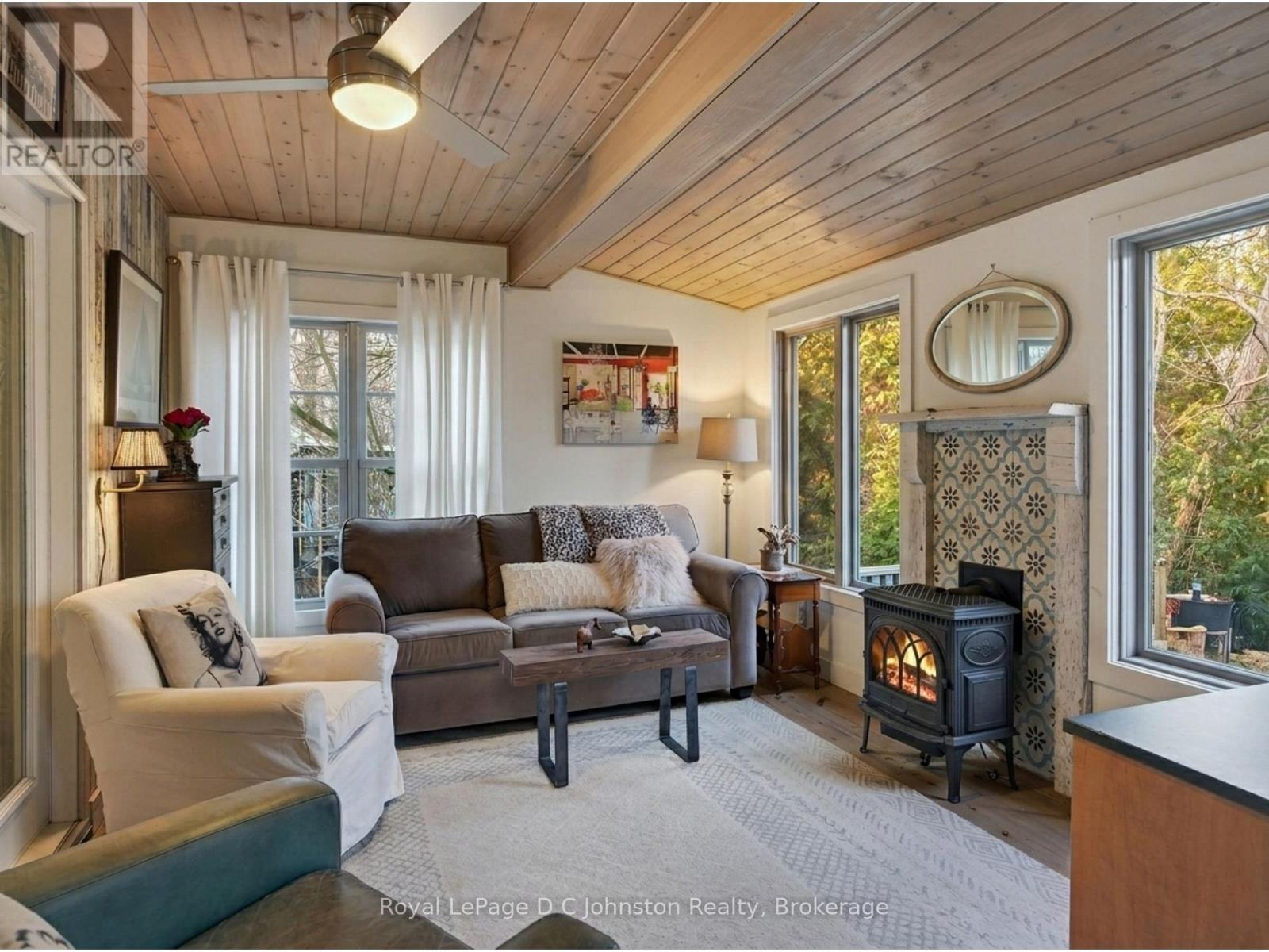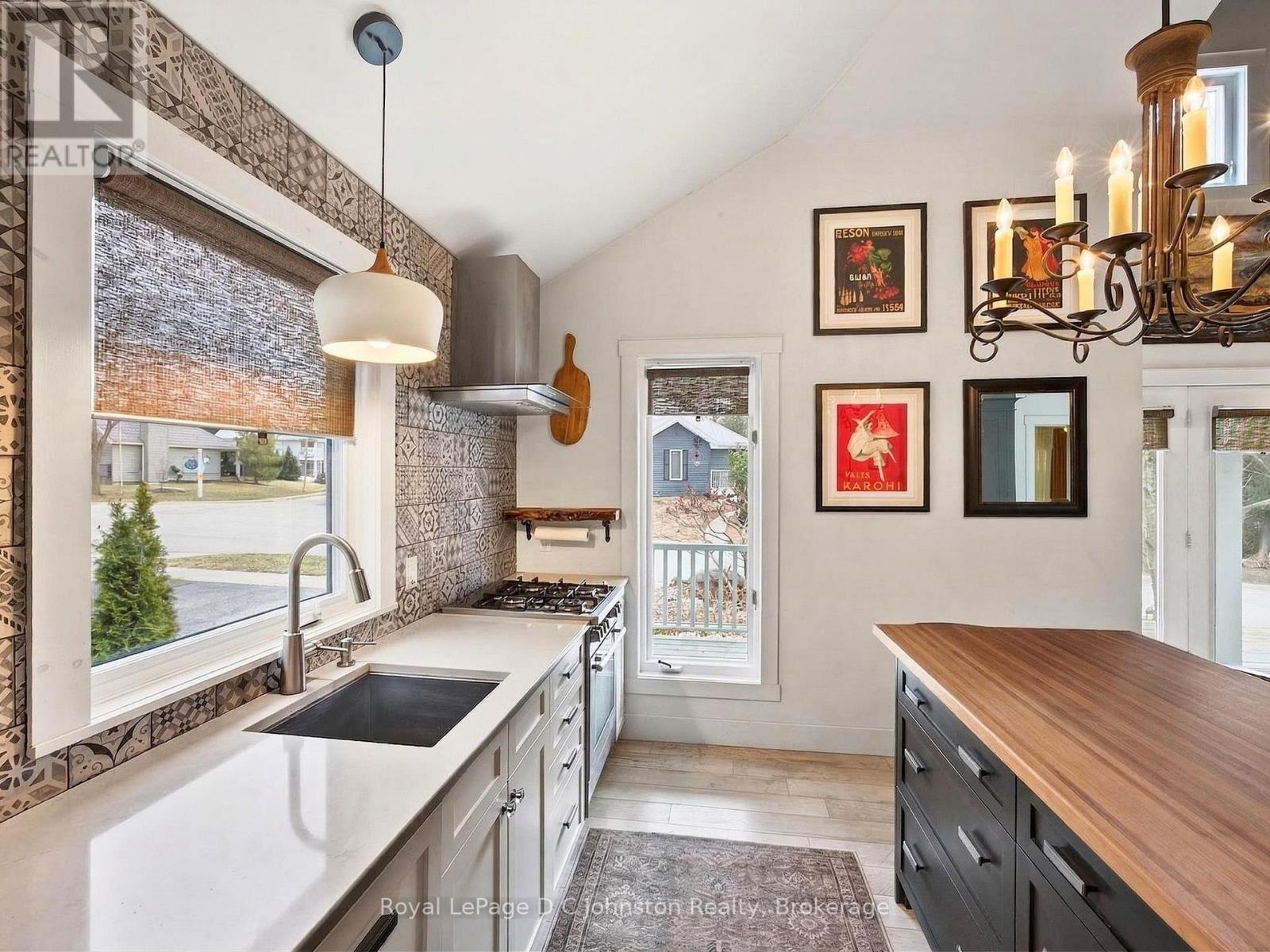 Forget land-lease; here you own the home and the "dirt" beneath it. Welcome to this charming, beautifully updated home, perfectly suited for year-round living or a relaxing cottage retreat. Thoughtfully renovated over the years, it showcases distinctive character and quality finishes throughout. Start your mornings on the inviting covered verandah, enjoying coffee while overlooking manicured gardens. Inside, the heart of the home is the impressive great room with soaring ceilings creating a bright, airy atmosphere. The open-concept kitchen, dining, and living area is ideal for entertaining, highlighted by a striking floor-to-ceiling tiled gas fireplace. The chef-inspired kitchen features granite countertops and premium Porter & Charles and Liebherr appliances. The spacious primary bedroom offers a private retreat with a luxurious 4-piece ensuite featuring in-floor heating, and French doors opening to the sunroom where you wake up to tranquil forest and ravine views. The peaceful four-season sunroom will quickly become a favourite space, surrounded by windows overlooking the ravine and creek while a cozy gas stove keeps it comfortable year-round. A second bedroom provides flexibility for guests, hobby area or a home office. Outside, enjoy a stone patio with privacy fencing overlooking the ravine, plus a storage shed with hydro. Located in the charming lakeside community of Southampton, this home puts you close to Lake Huron sunsets, boutique shopping, dining, and scenic trails. It is just a 7-minute walk to South Street Beach with its sandy shoreline and views of Chantry Island and the historic lighthouse. In the summer, the nearby trolley offers easy access to downtown, making this the perfect blend of comfort, nature, and lifestyle in sought-after Saugeen Shores. (id:64974)