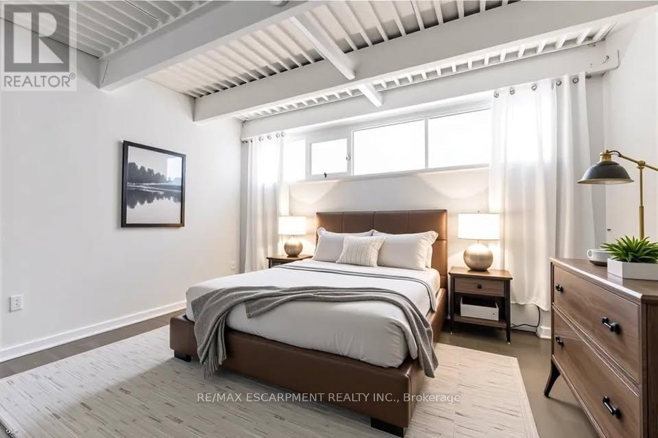 One-of-a-kind loft with soaring 21-foot ceilings! A rare opportunity to own a truly unique 1784 sqft condo/loft in the heart of one of Ontario's fastest-growing cities. This artistically designed space features 2 bedrooms, 2 full bathrooms, and a spacious walk-in closet in the primary suite. The open-concept layout seamlessly blends living, dining, and kitchen areas, all enhanced by polished concrete floors, exposed concrete pillars, and an industrial-chic aesthetic. The second-floor live/work loft provides the perfect home office or creative space, offering inspiring views overlooking City Hall and Hamilton's vibrant downtown core. Enjoy the convenience of walking distance to restaurants, shops, transit, and all urban amenities-the ultimate downtown lifestyle. This exceptional unit includes 1 parking space and a big locker, ideal for extra storage. A truly special home that will impress even the most discerning buyer. Book your showing today! (id:64974)