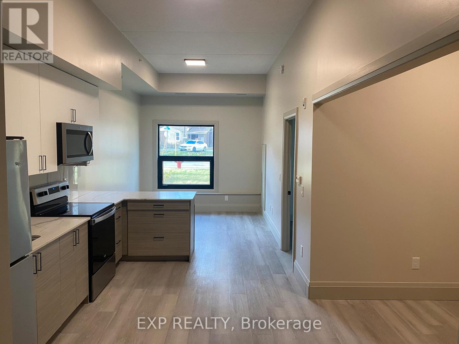 Welcome to 75 Barrie Road, a new residential building, in a prime location just minutes away from downtown, the Rec Centre, and many other amenities. This bright and open one-bedroom unit boasts a modern design and features, including a Den - 8' x 10'7", and stainless steel Whirlpool appliances. Convenient on site laundry service 24/7, high speed fibre internet, spacious lobby in a secure building. 24/7 surveillance, & a full maintenance staff. Note: Exterior of building: aluminum composite. *Monday morning showings to be booked by Friday. Virtual Tour of different unit/same floor plan. **EXTRAS** Tenants responsible for their individual hydro and water usage, and units are individually metered. Smoke free building and security cameras at entry points. (id:64974)