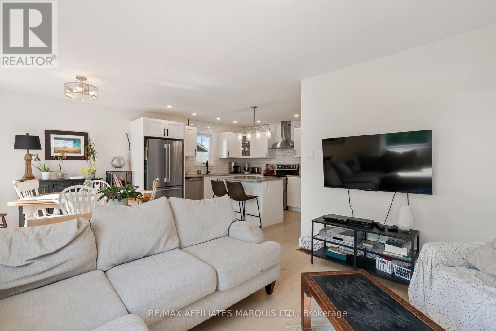 Modern Raised Bungalow in the Heart of Alexandria. Situated just blocks from all the amenities of downtown Alexandria, this beautifully crafted 2024 raised bungalow offers the perfect blend of peaceful small-town living with easy access to both Ottawa and Montreal. Step inside to discover a bright, open-concept main floor featuring a stylish kitchen with a center island (including seating for two), a spacious dining area with patio doors leading to your private deck and deep backyard, and a welcoming living roomall finished with light engineered hardwood and crisp white walls. Two bedrooms, a four-piece bathroom, and a convenient main floor laundry room with an insulated door for sound reduction complete the upper level. The fully finished lower level includes a large rec room, a generous third bedroom with a walk-in closet, another four-piece bathroom, a utility room, and ample storage space. Modern, airy, and move-in ready. (id:64974)