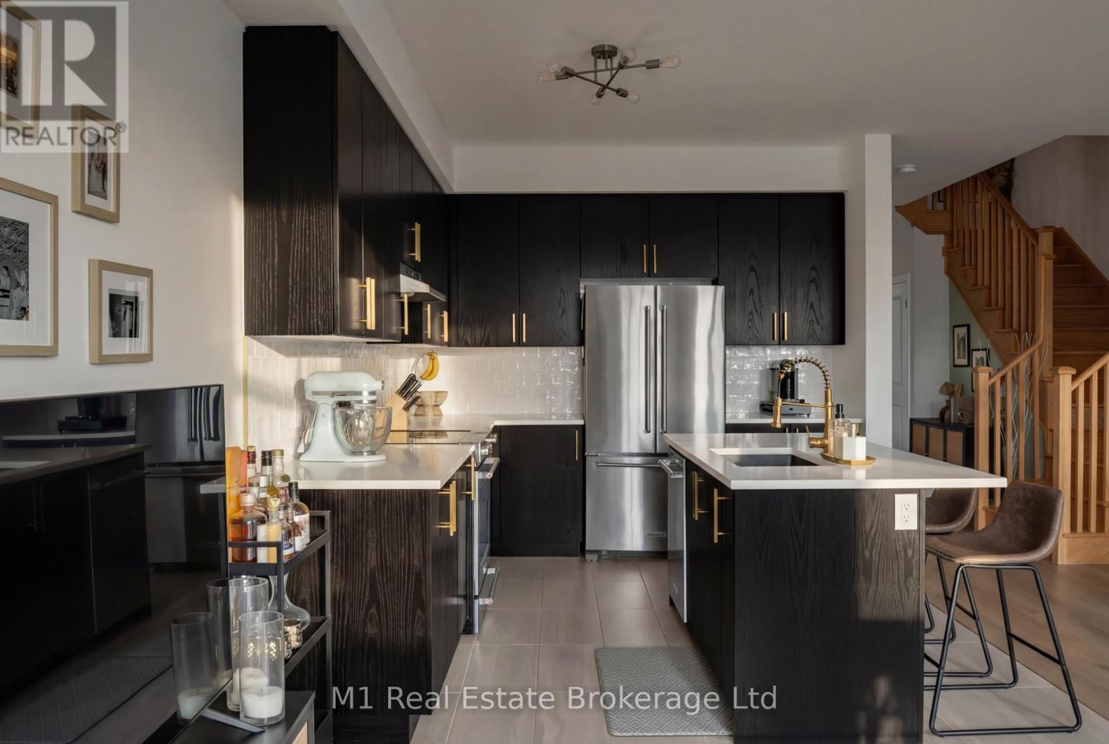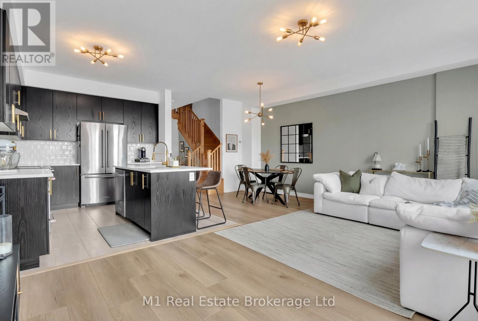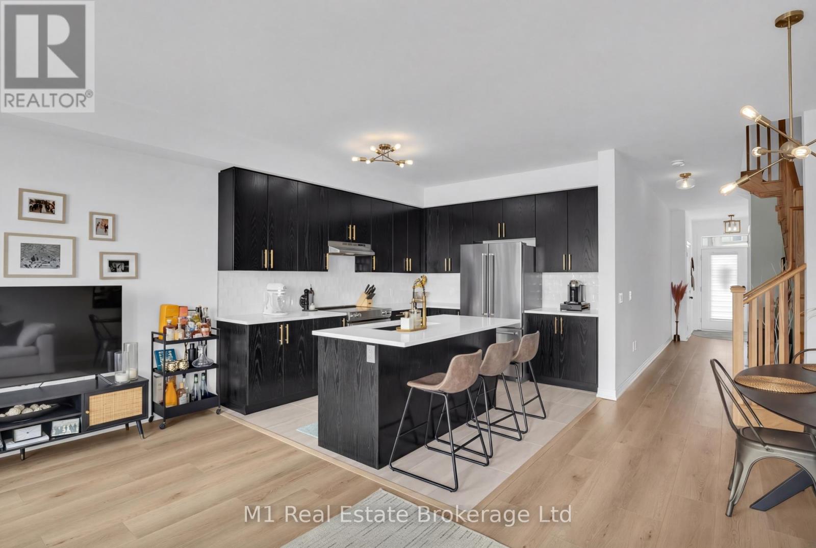 Picture yourself pulling up to 106 Edminston Drive in the heart of Fergus's welcoming west-end Storybrook neighbourhood, where every street feels like the start of something special. Steps away from your door sits the brand-new Grand River Public School, so close that morning drop-offs turn into a relaxed stroll, giving you extra minutes for that second cup of coffee and fewer hectic goodbyes. This freehold townhome delivers almost 1500 square feet of bright, open living across three comfortable bedrooms and 3 bathrooms, with the backyard opening straight onto quiet greenspace-no houses looking in, just serene views of trees and open sky that bring instant calm every time you step outside or glance through a window. Step inside, and the fresh upgrades grab your attention immediately. The kitchen gleams with new Kitchen Aid appliances, smooth quartz counters, and stylish updated cabinet hardware that make cooking feel easy and enjoyable. Sleek LVP flooring runs throughout the main areas, staying clean and looking great with minimal effort. Warm new light fixtures brighten every room, fresh door hardware adds thoughtful quality touches, the main-floor powder room has been fully refreshed for convenience, and the master bedroom closet includes a smart organizer to keep things tidy. Out back, a huge brand-new fenced yard waits for summer barbecues, kids playing freely, or just quiet mornings with your coffee in hand. And don't forget the single-car garage complete with opener-no more battling winter ice on your windshield. This place isn't just a house; it's where your everyday feels easier, brighter, and more yours, steps from the newest school, backed by peaceful green views, and finished with all the modern touches so you can move right in and start making memories. Scroll no further. Come see it before it's gone and someone else gets to call it home. (id:64974)