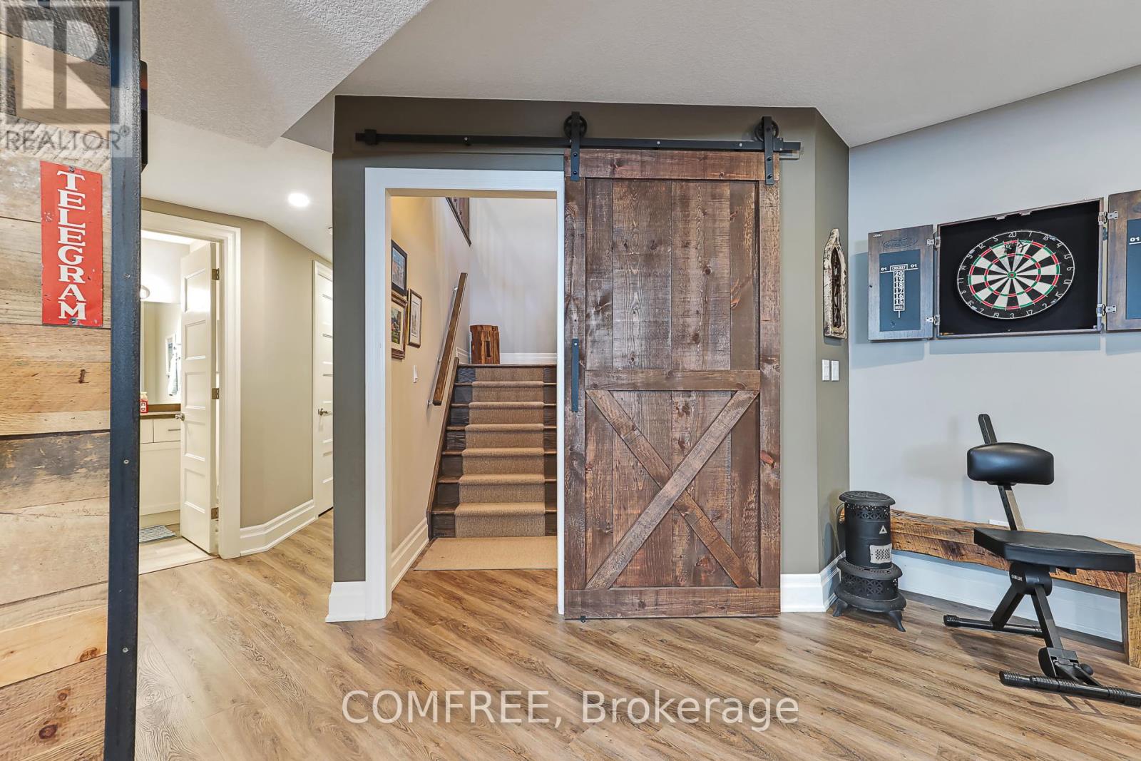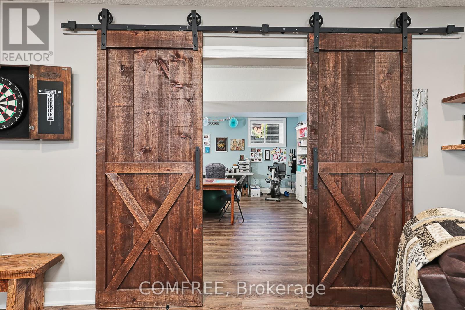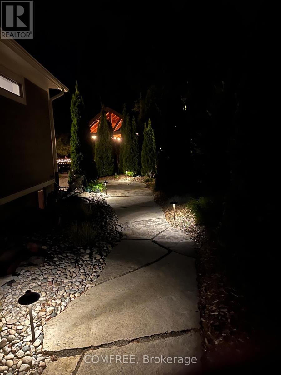 106 High Bluff Lane is located on one of the most sought after streets in Thornbury. This 2+2 Bedroom Bungalow with a 3-Car Garage, and over 3600sqft of living space, is on a private, fully fenced, park-like, 1/4 acre lot backing onto greenspace and a ravine. It is a beautifully landscaped property with close to $200K spent on perennial gardens, mature trees, inground sprinkler system, low voltage landscape lighting, interlock driveway that can easily accommodate 5 cars, interlock patios, and a 12' x 14' pavilion. There is also a garden shed with separate electrical panel. The large front porch is a great place to sit and relax. The main floor consists of Engineered hardwood floors and has a large open plan chef's dream kitchen with Bosch Appliances - 5 Burner Gas Cooktop, Built-in Range &Microwave/Convection oven, French 3-door Fridge, Dishwasher and a Marvel Beverage fridge. There is a Cathedral ceiling in the dining room and great room with floor to ceiling stone gas fireplace and huge windows & sliding door looking out to the backyard. A large primary bedroom has an ensuite with heated floors and walk in closet. A front bedroom/office completes the main floor. The basement boasts 8.5' ceilings with large, upgraded windows and the ultimate man cave with custom bar and a gas wood stove that keeps the basement comfortable all year long. There is also huge craft studio that could easily become a games room or gym space. 2 more nice sized bedrooms and a bathroom with heated floor complete the basement area. All the closets have been custom designed for the ultimate in storage solutions. Custom built-ins in the garage and a Generac generator are just some of the extra features of this property. You will have a 2-minute walk to access the Georgian Trail, a 5-minute walk to Goldsmith's Farm Market, a 20-minute walk to Foodland & LCBO and a 30-minute walk to town to enjoy any of the many coffee shops and restaurants (id:64974)