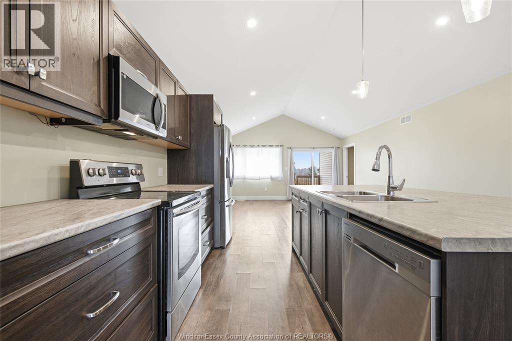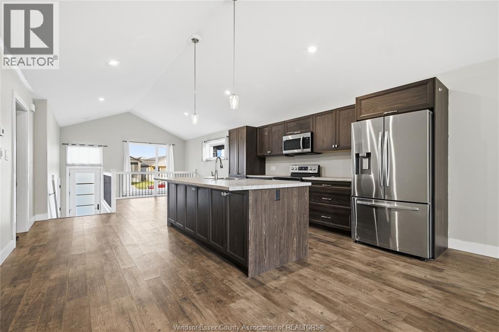 **Modern Raised Ranch Built in 2022** Welcome to this bright and thoughtfully designed bungalow offering open-concept living, with vaulted ceilings & premium layout, modern finishes, and excellent potential with an unfinished basement. **Open-Concept Main Level with Vaulted Ceilings** Enjoy a sunfilled living room with a large front window and seamless walk-out to a wooden deck with covered porch - perfect for relaxing or entertaining. The central kitchen features a large island, stainless steel appliances including fridge, stove, built-in microwave, and dishwasher, flowing into a spacious eat-in area with vaulted ceilings and vinyl flooring. The primary bedroom offers a walk-in closet and a private 3pc ensuite with a standing shower. Two additional bedrooms with closets and vinyl flooring are serviced by a 4pc main bathroom. Functional layout and natural light make this home ideal for comfortable everyday living.**Unfinished Lower Level- Endless Potential** The basement features high ceilings, large windows, and a utility room with tankless hot water heater, offering a great opportunity to create additional living space, recreation areas, or an in-law suite tailored to your needs.**Great Outdoor Space & Family- Friendly Setting** The property includes a double front driveway, single-car garage, and a backyard with covered porch and wooden deck - ideal for outdoor enjoyment. Located in a growing Chatham community, close to amenities, schools, and parks. A fantastic opportunity for buyers seeking modern bungalow living with room to grow.** (id:64974)