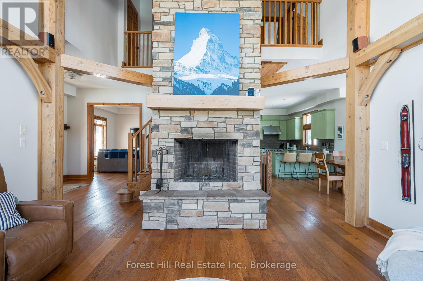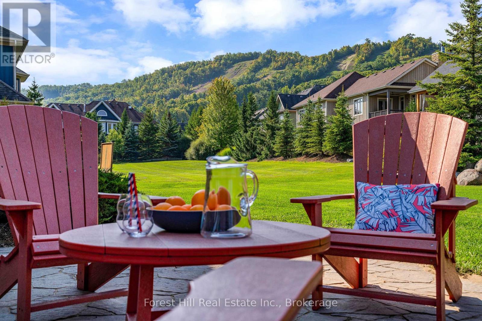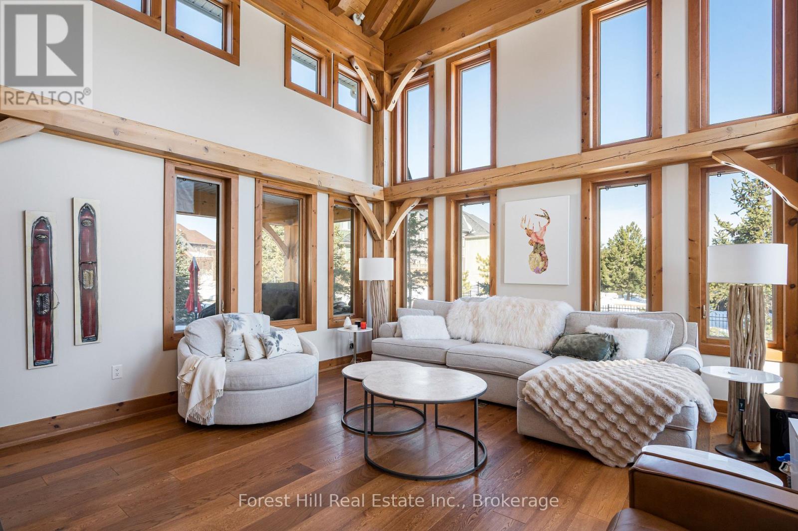 SUMMER SEASONAL (June/July/Aug) Enjoy an unforgettable summer in this exceptional 5 BED, 5 BATH chalet located in the prestigious Orchard community, just minutes from Craigleith and the heart of Blue Mountain. Perfectly positioned with views toward the south side of Craigleith Ski Club, this elegant Lake Louise model offers refined post-and-beam architecture, generous living spaces, and seamless indoor-outdoor living for the ultimate warm-weather retreat. The main level features a bright open-concept living and dining area with striking Douglas fir beams, oak-engineered hardwood floors, and a beautiful wood-burning fireplace that anchors the space. The chef-inspired kitchen includes granite countertops, ample prep space, a large pantry, and direct access to the functional ski/mudroom with heated floors and convenient dog wash. A welcoming den near the front entrance provides the perfect spot for reading, relaxing, or working remotely. Upstairs, the primary suite offers a private retreat with a spa-inspired ensuite. A second bedroom includes its own ensuite, while two additional bedrooms and another full bathroom provide comfortable accommodations for family and guests. The fully finished lower level features 9-foot ceilings, a spacious games area, a 5th bedroom, and a full bathroom, creating the ideal hangout space after a day exploring the area's trails and beaches. Step outside to the newly built deck with hot tub overlooking the ski hills, while the expansive backyard provides plenty of room to relax, entertain, and enjoy the fresh mountain air. The home is equipped with a Sonos sound system that extends throughout the interior and outdoor spaces. Located just minutes from Craigleith Ski Club, the Tennis Club, community pool, Blue Mountain Village, and the shores of Georgian Bay, this property offers convenient access to hiking, biking, golf, swimming, and all the amenities that make Blue Mountain a premier four-season destination. (id:64974)