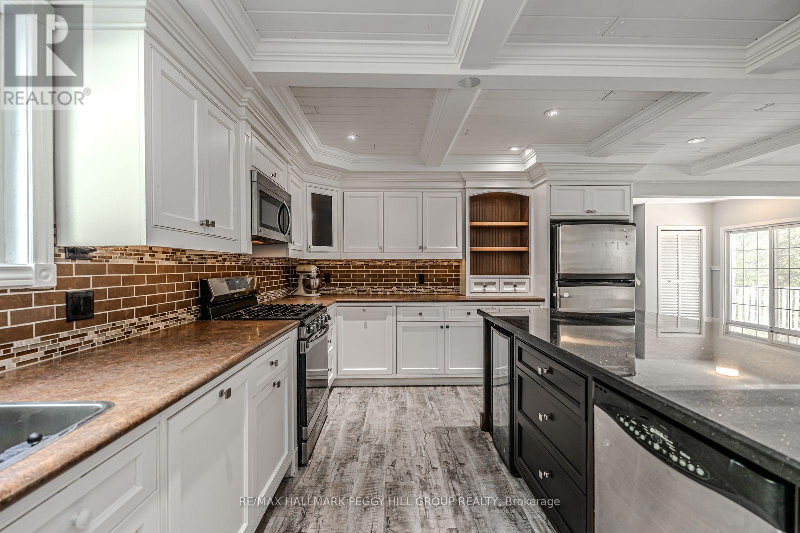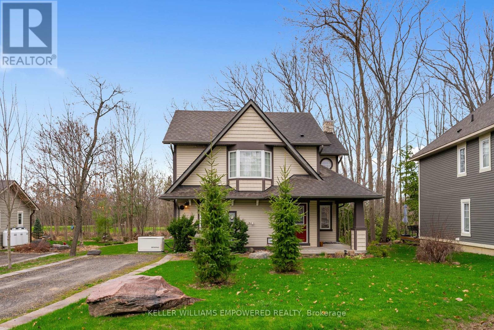 WELCOME TO YOUR OWN PRIVATE 3+ ACRES OF MUSKOKA PARADISE WITH A 1400 SQ FT HEATED GARAGE/SHOP, RESORT-STYLE OUTDOOR LIVING, & RUSTIC CHARM! This 3+ acre retreat showcasing a Muskoka-style landscape with rock outcroppings, abundant wildlife, and a private forested EP backdrop, all located just 5 minutes from Hwy 400 and the Oak Bay Golf Club, under 10 minutes to marinas, and close to all everyday essentials. Enjoy year-round recreation with Mount St. Louis and Horseshoe Valley Ski Resort less than 30 minutes away, while Orillia, Barrie, and Midland are within 35 minutes for urban amenities. The 2-storey brick home boasts dramatic rooflines, stamped concrete walkways and steps, and a welcoming full-width covered front porch. The 1,400 sq ft insulated and heated garage is a standout with 13+ ft ceilings, radiant heat, compressed air lines, a paint spray booth, overhead storage, office and loft space, and multiple access points including dual garage doors, an oversized roll-up rear door, a side man door, and interior entry. Outdoor living shines with a patio and screened pergola, a powered tiki bar and firepit, a two-tiered deck with covered storage below, and a garden shed with a wood storage overhang, all complemented by a 5-zone irrigation system. The open kitchen, dining, and living area features a walkout to the back patio, plus a pantry, family room, and a renovated bathroom with heated floors, granite counters, and a steam shower. The upper level offers 4 bedrooms, including a primary retreat with a walk-in closet, fireplace, and a walkout to the deck, paired with a second full bathroom with heated floors and granite counters. Shiplap-style ceilings with faux wood beams add character, while thoughtful upgrades include vinyl and tile flooring, modern door hardware, fresh paint, and updated electrical. From the striking exterior to the thoughtful interior finishes, this one-of-a-kind #HomeToStay promises a life of natural beauty, convenience, and endless enjoyment. (id:64974)