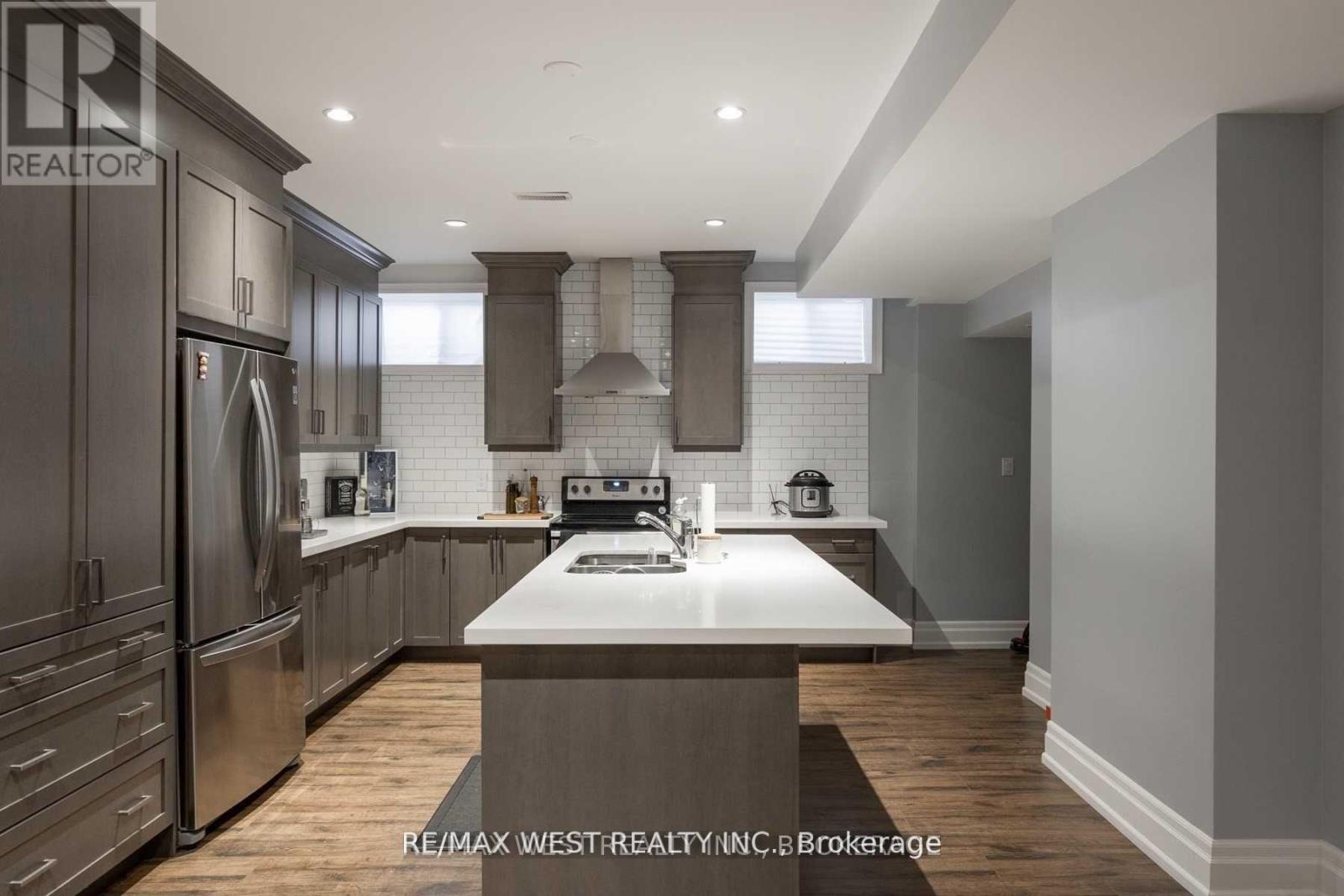 This Professionally Finished Basement Offers Upscale Living With a Separate Entrance and a Full Kitchen. Featuring Hardwood Floors, and Smooth Ceilings Throughout, It's Designed for Comfort and Style. The Gourmet Kitchen Includes Stainless Steel Appliances: Fridge, Gas Stove, Built-in Oven and Microwave, and Dishwasher. Additional Perks Include a Camera Security System for Peace of Mind. Ideal for a Rental Suite, This Unit is a Rare Find and Won't Last Long-Book a Viewing Today! (id:64974)