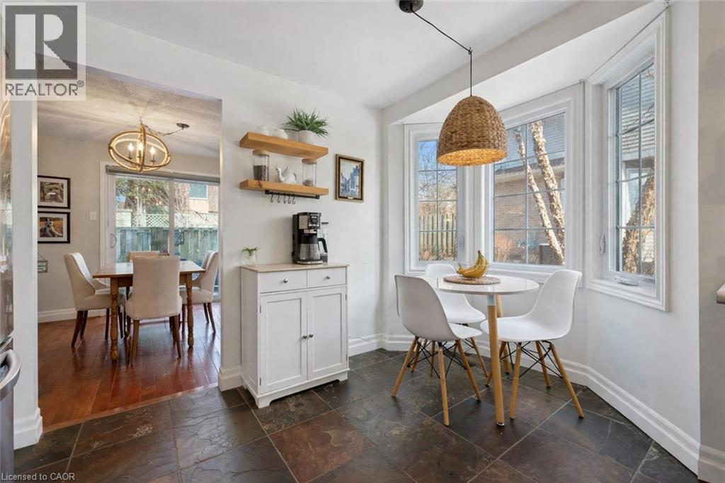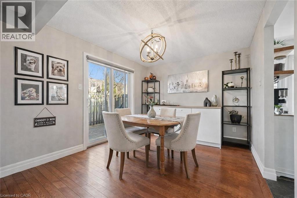 Beautifully renovated 2-bdrm, 3.5-bath townhome offering stylish move-in-ready living in highly desirable community W/in-ground pool & tennis/pickleball courts! From the moment you step inside you’ll notice warmth of hardwood flooring & thoughtful updates throughout. Eat-in kitchen W/sleek grey cabinetry, tile backsplash, S/S appliances & lots of counter space. Rustic wood display shelving adds character while the bay window nook creates perfect spot to enjoy morning coffee surrounded by natural light. Formal dining area offers elegant setting for entertaining W/stunning light fixture & sliding doors that lead to private backyard creating seamless indoor-outdoor flow. Living room W/gas fireplace & custom B/I shelving—perfect place to unwind at the end of the day. Convenient 2pc bath completes this level. Upstairs the primary bdrm offers hardwood, large windows & W/I closet. A versatile nook within the room offers perfect space for a dressing area, home office or reading corner. Ensuite is tastefully updated W/stylish vanity. 2nd bdrm offers custom B/Is & is complemented by 4pc bath W/large vanity & shower/tub. Finished lower level offers incredible versatility W/rec area highlighted by stylish shiplap fireplace & rustic wood mantel creating a warm elevated feel. Updated bathroom W/modern vanity & dedicated laundry room complete this level. Meticulously maintained & thoughtfully updated: furnace 2019, water softener 2021 & HWT 2023. Step outside to private fully fenced backyard W/large deck, mature trees & lots of space to relax & entertain. Residents of this well-maintained complex enjoy access to inground pool, tennis & pickleball courts & visitor parking—all the benefits without the maintenance. Nearby walking path connects to Royal Recreational Trail offering riverside pathways leading all the way to Guelph Lake. Short walk to Riverside Park, nearby golf course & amenities. Complete W/attached 1-car garage this is truly a turnkey opportunity—just move in & enjoy (id:64974)