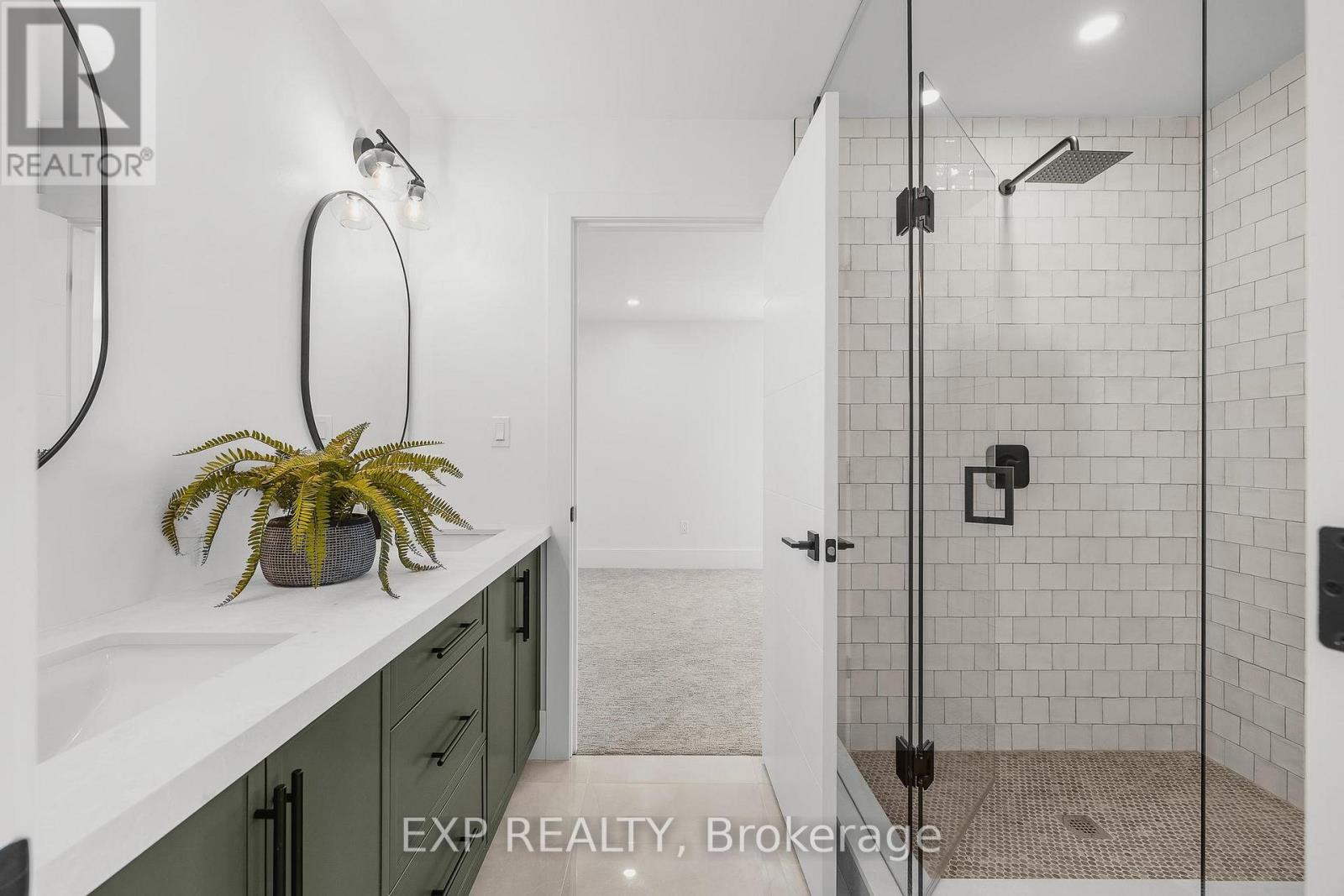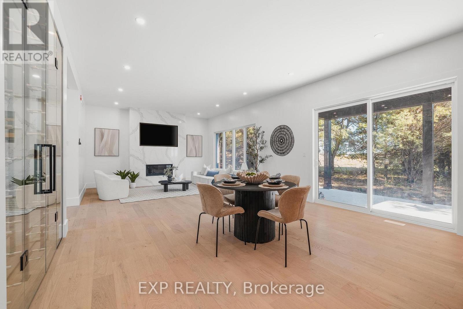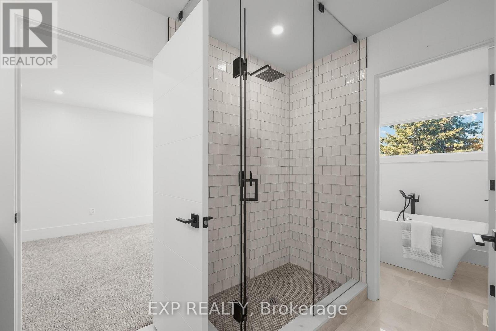HST REBATE AVAILABLE, SAVE 10'S OF THOUSANDS. REACH OUT FOR MORE DETAILS!!! Welcome to an extraordinary expression of modern luxury, where architectural elegance & functional design merge seamlessly. This bespoke Cailor Homes creation has been crafted w/ impeccable detail & high-end finishes throughout, Situated on a one of a kind secluded tree lined lot. Step into the grand foyer, where soaring ceilings & expansive windows bathe the space in natural light. A breathtaking floating staircase w/ sleek glass railings serves as a striking architectural centerpiece. Designed for both productivity & style, the home office is enclosed w/ frameless glass doors, creating a bright, sophisticated workspace. The open-concept kitchen & dining area is an entertainers dream. Wrapped in custom white oak cabinetry & quartz countertops, the chefs kitchen features a hidden butlers pantry for seamless storage & prep. Adjacent, the mudroom/laundry room offers convenient garage access. While dining, admire the frameless glass wine display, a showstopping focal point. Pour a glass & unwind in the living area, where a quartz fireplace & media wall set the tone for cozy, refined evenings. Ascending the sculptural floating staircase, the upper level unveils four spacious bedrooms, each a private retreat w/ a spa-inspired ensuite, & walk-in closets. The primary suite is a true sanctuary, featuring a private balcony, and serene ensuite w/ a dual-control shower & designer soaker tub. The fully finished lower level extends the homes luxury, featuring an airy bedroom, full bath & oversized windows flooding the space w/ light. Step outside to your backyard oasis, complete w/ a sleek covered patio. (id:64974)