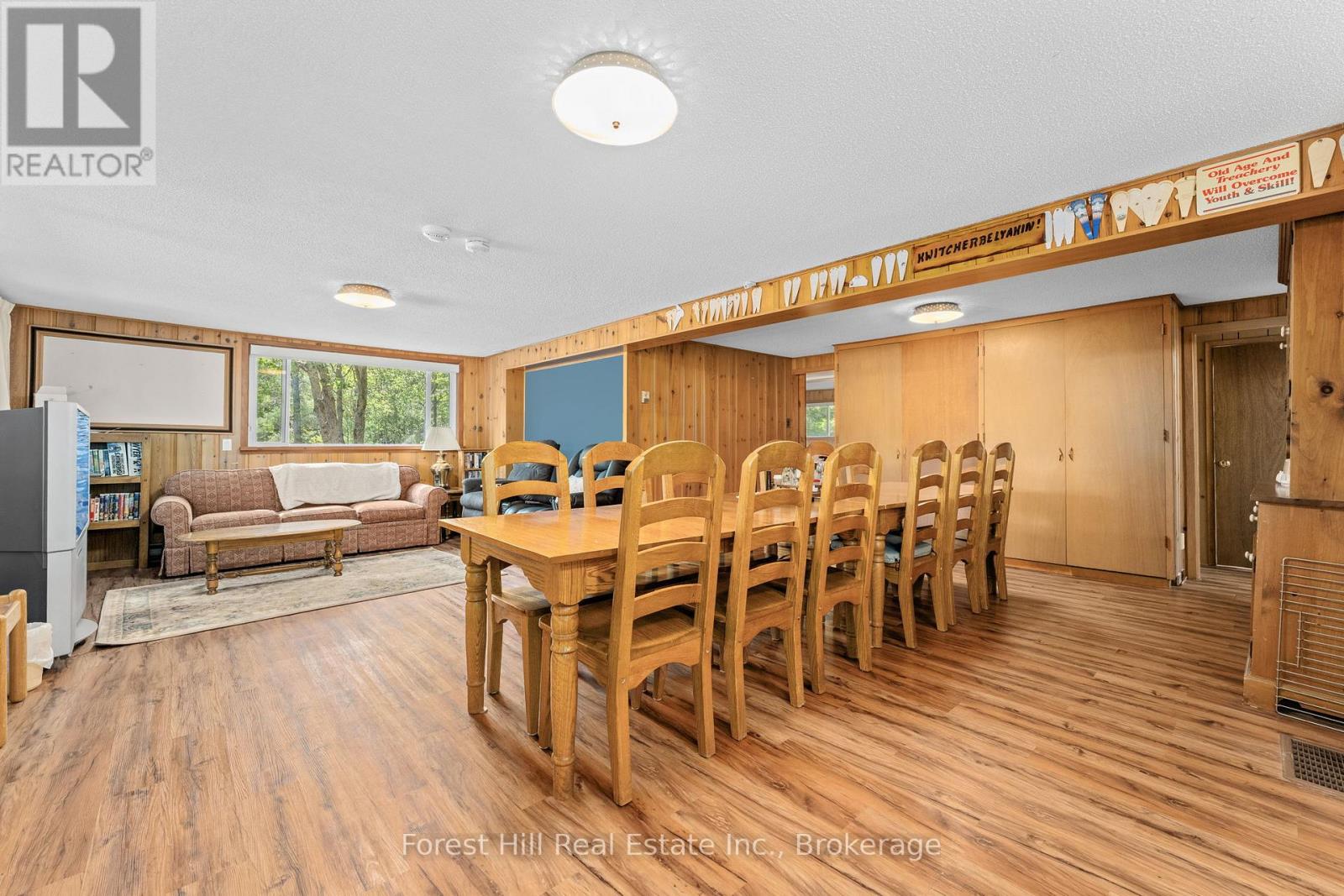 Welcome to a rare family retreat on the shores of Pine Lake. Cherished by one family, this year-round cottage is ready for new memories to be made. With 6 bedrooms and 4 bathrooms, there is space for everyone kids, grandkids, and friends alike. The spacious main floor living, kitchen, and dining areas invite laughter, long dinners, and evenings spent together. A front sitting room, framed by a large picture window, invites uninterrupted lake views, making it the perfect spot for morning coffee. For added convenience, there is a separate laundry room as well as the comforts of a furnace and central AC, ensuring ease and comfort no matter the season. Outside, you'll find just over 170 feet of waterfront, with deep water off the dock, perfect for swimming, boating, and waterfront fun. The attached single-slip boathouse with accommodation above offers additional guest space or a private lakeside escape. At the same time, an inclinator from the parking area to the main entrance ensures easy access for everyone. The property also includes ample parking and a detached 2-car garage. A separately deeded 8+ acre parcel across the road offers potential for future development opportunities, adding even more value and flexibility to this special package. Located minutes from Gravenhurst and a short drive from the GTA, this beloved cottage is a solid, well-maintained building just waiting for a new family to bring their vision and create the next chapter of its story. ** This is a linked property.** (id:64974)