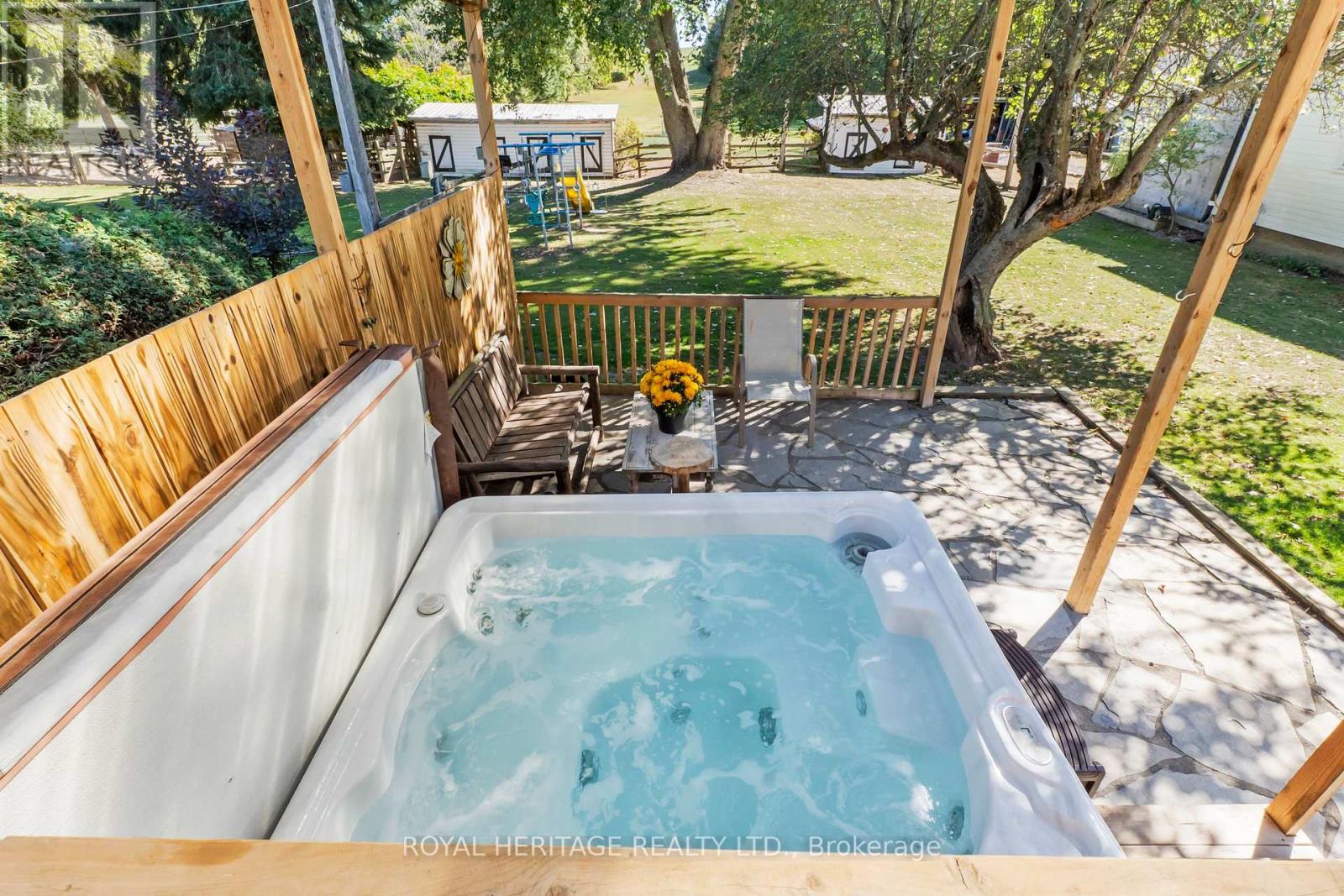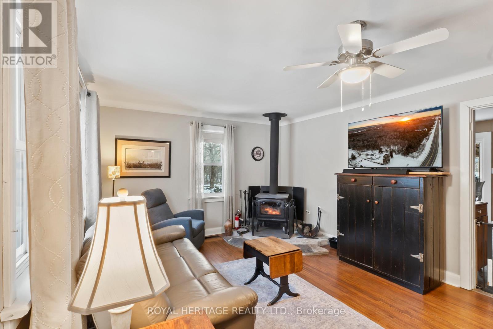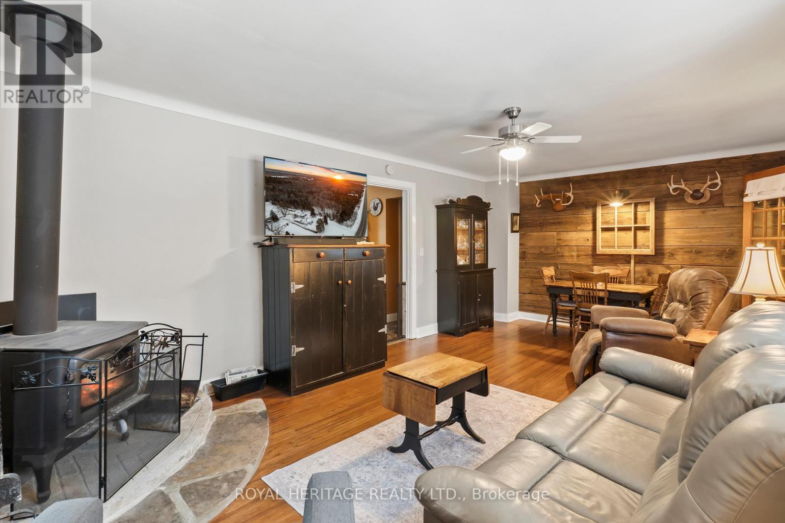 Drive up your own long private lane and step into a property that truly has it all. Over 12 acres of land with winding trails, wide-open fields, and a breathtaking lookout point with panoramic views of Lake Ontario and the hills beyond. At the heart sits a charming two-bedroom bungalow with a walkout deck, hot tub, and BBQ space- the perfect spot for everyday relaxation. The home has seen meaningful updates over the years, including a renovated bathroom in 2024, central air installed in 2022 (with a 10 yr warranty), propane furnace 2017, and ongoing upgrades that provide peace of mind for the next owners. Inside, you'll also find useful touches like a pantry/office space and plenty of natural light. Step outside to a large fenced yard, ideal for pets or kids, with a generous quantity of firewood ready for use. Beyond the home, the land opens up to a pond, multiple sheds, three chicken coops, and a dog kennel, blending function with country charm. For those who dream bigger, the 24 X 24 garage/workshop is insulated with electrical and comes with loft storage and an attached carport- a true hub for projects, cars, or hobbies of any kind. All of this is located just minutes from the 401 and close to local conveniences including the library, pharmacy, school and community arena. With ample space for parking and projects, this property offers the rare combination of privacy, space, and convenience. This property is more than just a home, its a lifestyle, an investment, and an opportunity waiting to be unlocked. Your country escape. Your future vision. All here, on 12 unforgettable acres. (id:64974)