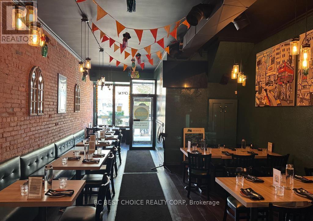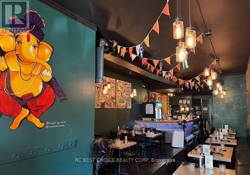 Excellent opportunity to acquire a fully equipped full-service Indian restaurant with LLBO licence in a prime Bloor St W & Dufferin St location. Toronto will host six FIFA World Cup 2026 matches. This may bring more traffic, more visitors, and better sales potential for downtown restaurants. Buyer may continue with the existing business or convert to their own concept, subject to landlord approval. Situated in a busy, high-traffic area with strong pedestrian exposure and tremendous future growth potential, with several nearby residential developments expected to bring even more customers to the neighbourhood. Approx. 1,500 sq ft with a functional layout offering 50+ seats, well suited for both dine-in and take-out operations. Professional full kitchen allows for immediate takeover and operation. Please do not go direct or speak to staff. (id:64974)