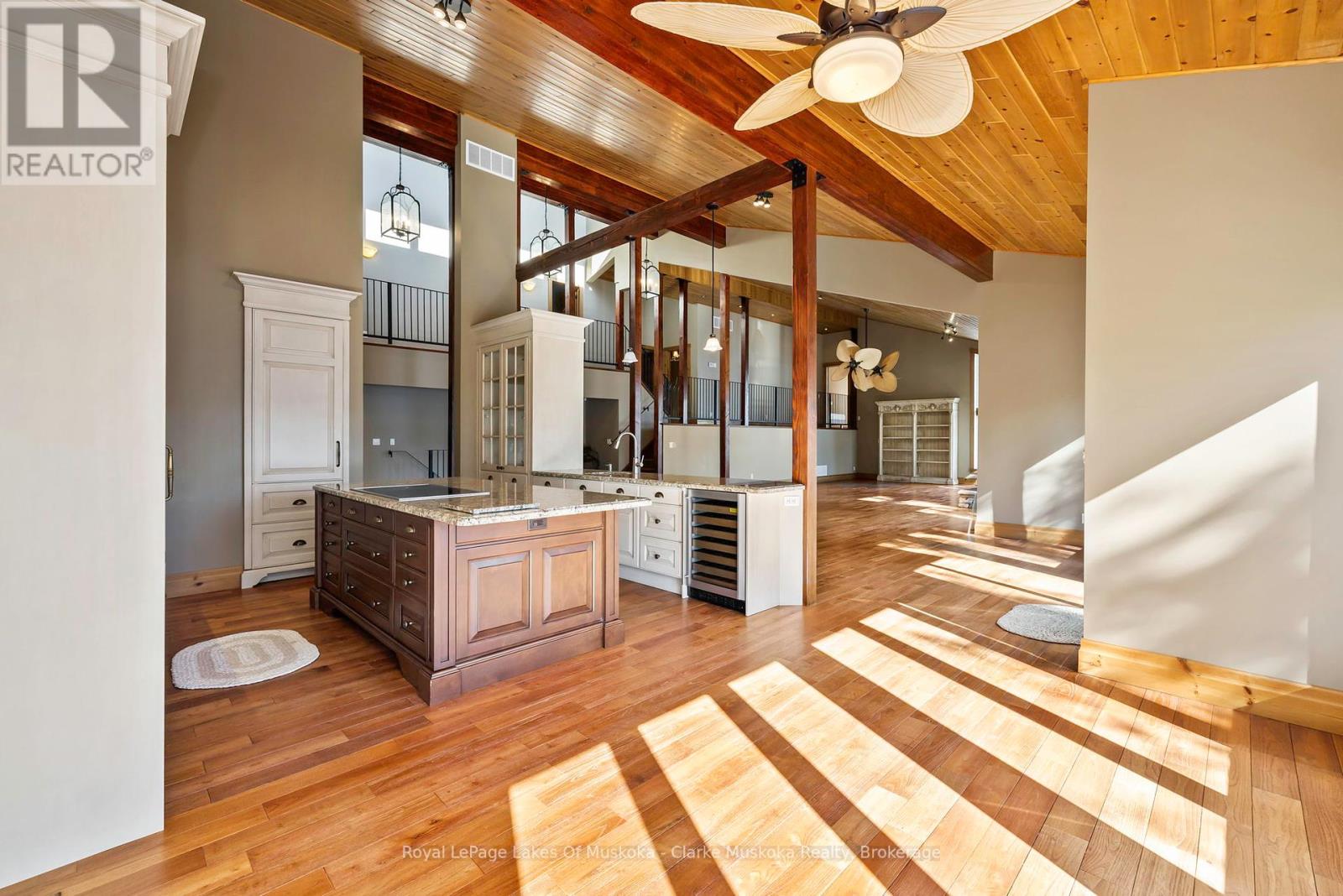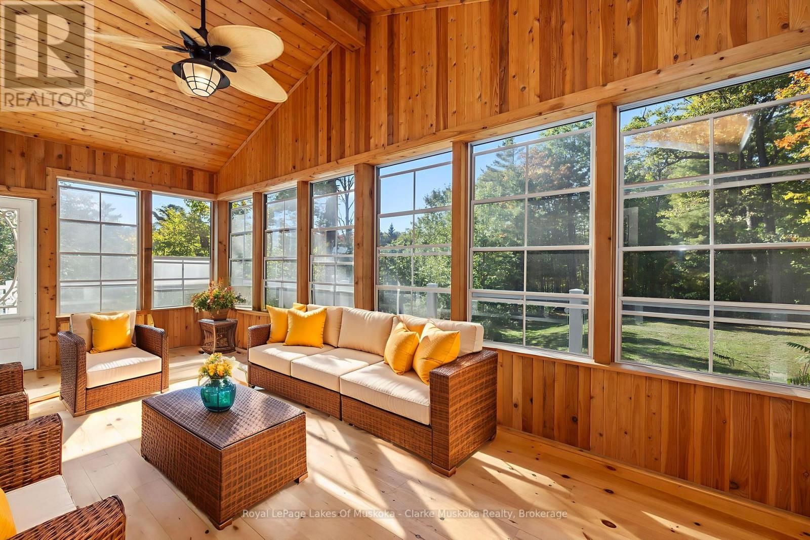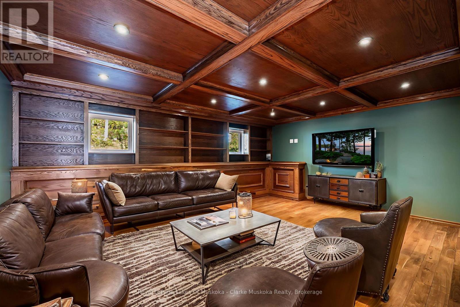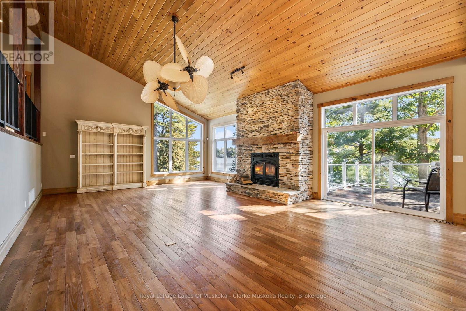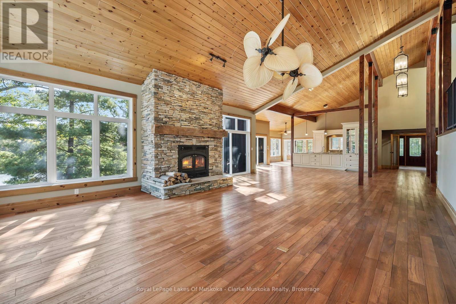 Nestled on a private 3.2 acre lot with 540 feet of shoreline on Lake Muskoka, this stunning property is built for family, entertaining, and year-round enjoyment. The 6,432 + sq. ft. cottage has 6 bedrooms, 5 bathrooms, and endless space for relaxing. Natural light pours through the wall-to-wall windows, with expansive living areas on both the main and lower levels, the main floor is anchored by a gorgeous stone wood fireplace, while the basement living area features a stone propane fireplace. The kitchen is a chefs dream, with a Sub-Zero fridge/freezer, KitchenAid island cooktop, double oven, and bar fridge. Theres even a cigar/TV lounge for cozy nights in. Step outside to a wrap-around patio with a built-in Viking BBQ, perfect for summer nights by the lake. A 3-season sunroom offers a peaceful spot to take in the views. Upstairs, the primary suite is a retreat of its own complete with a fireplace, walk-in closet, private deck, and spa-like ensuite with jacuzzi and glass shower. With a bunkie, two-storey garage, and plenty of privacy, this is more than just a cottage its Muskoka living at its finest. (id:64974)