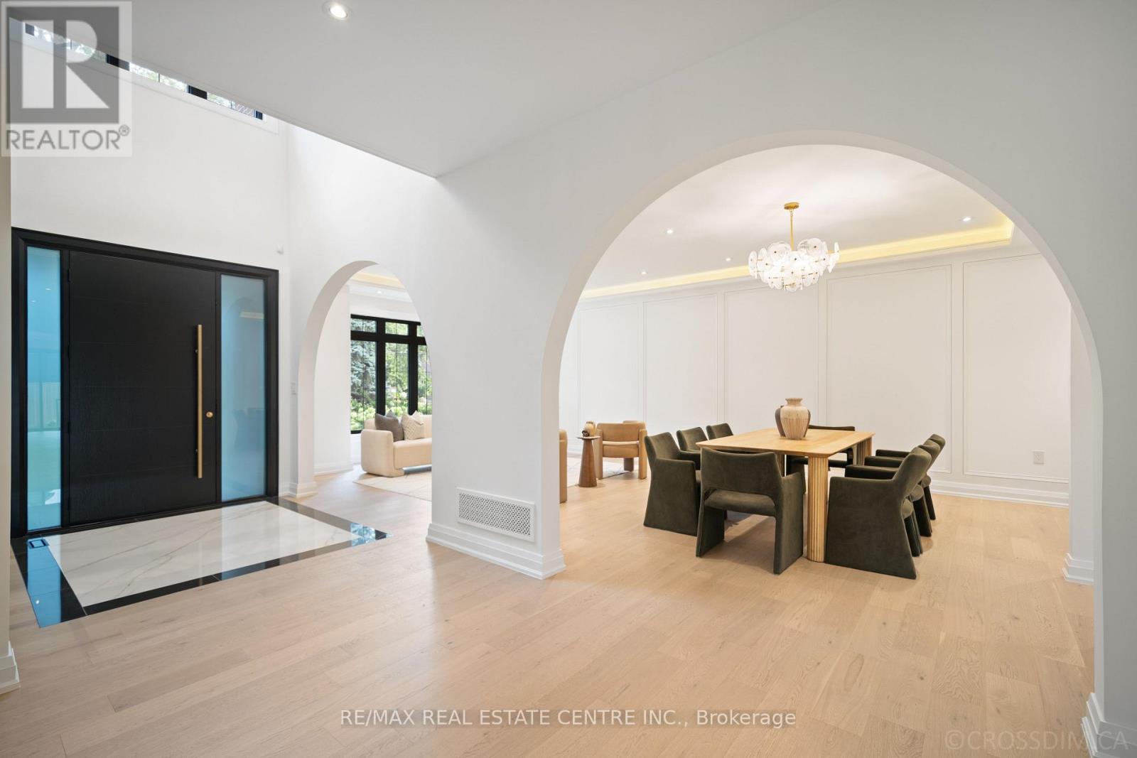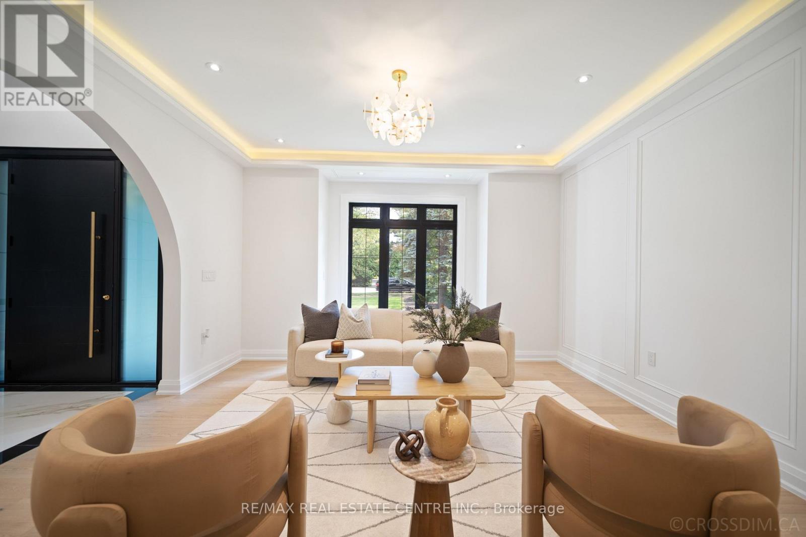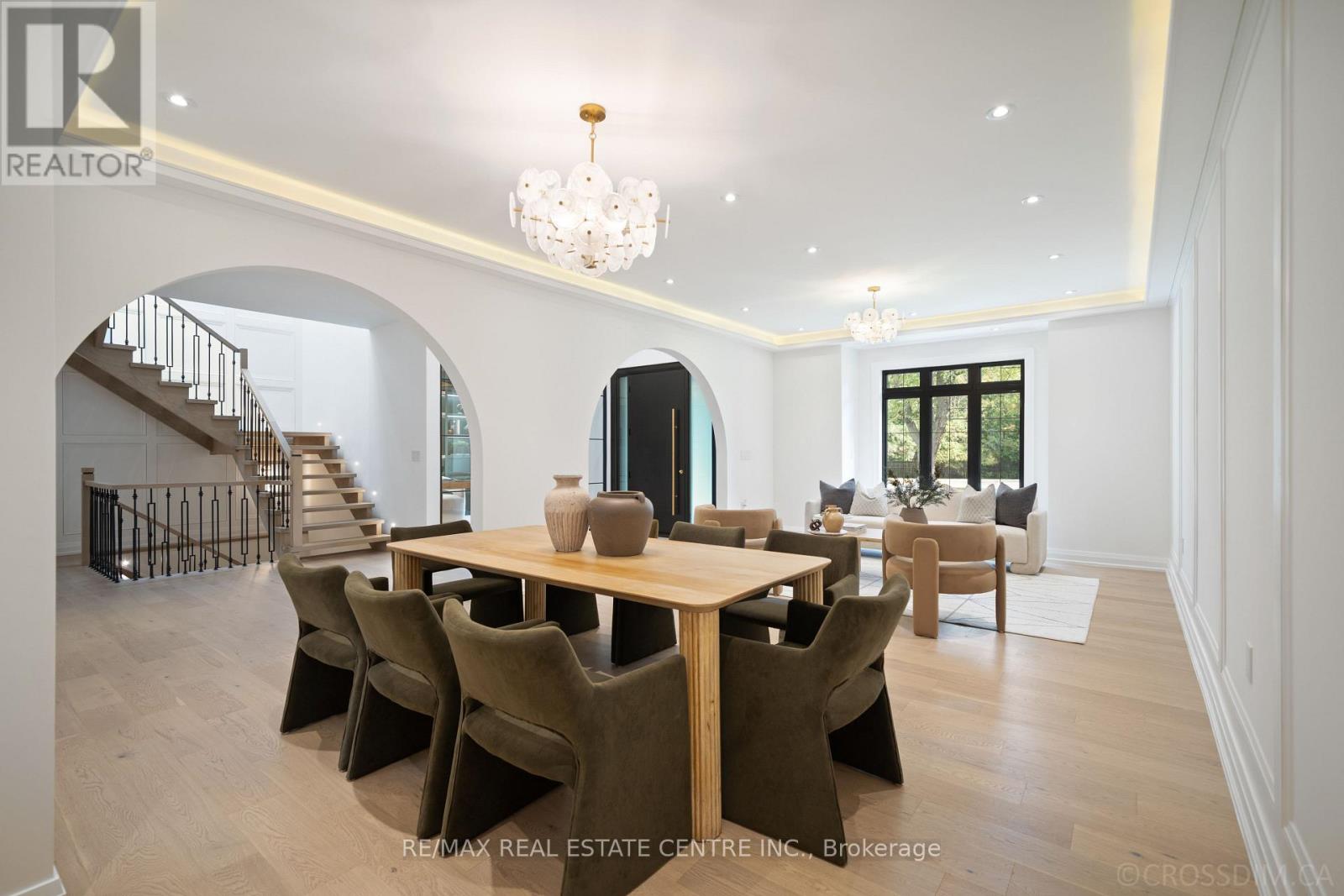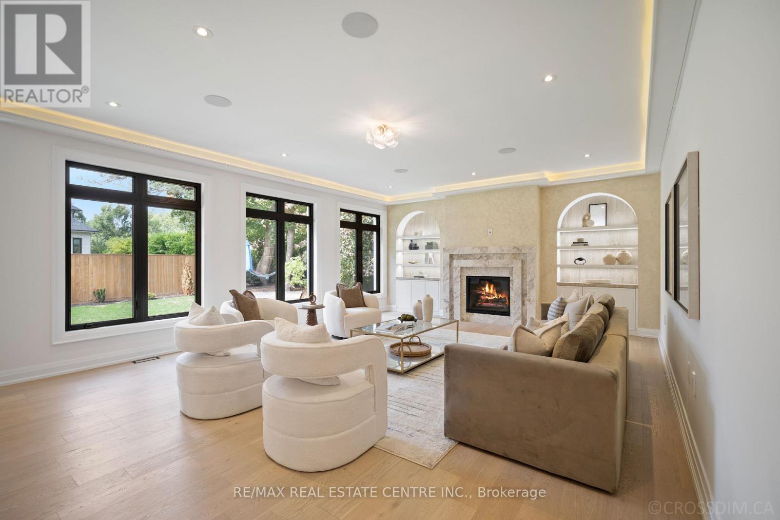 Redefine Elegance In This Masterfully Designed Residence Where Timeless Architecture Meets Modern Sophistication. Created By Rohit Bhoite, An Internationally Renowned Interior Designer With An Unwavering Passion For High-End Finishes, This Custom Home Is A Rare Statement Of Artistry And Craftsmanship. Situated On An Impressive 75X150 Ft Lot With Over 6000 SqFt Of Meticulously Designed, Functional Living Space Across 3 Levels. Located In The Prestigious Pocket Of Southwest Oakville Surrounded By Amenities And Walking Distance To Lake And Top Rated Schools Including Appleby College. Step Into The Welcoming Entryway Framed By Graceful Archways And Soaring Ceilings Leading To Open Concept Living And Dining Room With Luxury Trimwork And Integrated LED Cove Lighting. The Home Office Is A True Statement Of Space With Its Bold Character And Dramatic Windows To Create An Atmosphere Designed To Inspire And Ignite Creativity. The Gourmet Chefs Kitchen Is A True Showpiece Offering A Sleek, Oversized Calacatta Quartz Waterfall Island, Two-Tone Custom Cabinetry, Integrated Thermador Appl, Luxury Porcelain Backsplash Complete With W/I Pantry And Servery. The Family Room Showcases Italian Marble Fireplace Mantle Highlighted By Graceful Travertine-Inspired Archways And B/I Shelving. The Main Level Is Complete With W/O To Deck And Fully Enclosed Yard, Direct Access To The Dbl Car Garage And Mudroom, And Iconic Milano-Inspired Powder Room. Upper Level Offers 3 Skylights, Full Laundry Room And 4 Spacious Bedrooms, All With Ensuite Baths And Spacious Closets. The Primary Retreat Features Spacious His&Hers W/I Closets Complete With B/I Custom Shelving, Elevated Lighting, Fireplace And 5Pc Spa-Quality Bath. Fully Finished Lower Level Offers 2 Additional Bedrooms, 1.5 Baths, Custom Glass Enclosed Wine Bottle Storage, Fitness Centre, Home Theatre And Expansive Living Area With Kitchenette. Experience The Perfect Balance Of Luxury Modern Design And Timeless Warmth. Your Dream Home Awaits! (id:64974)