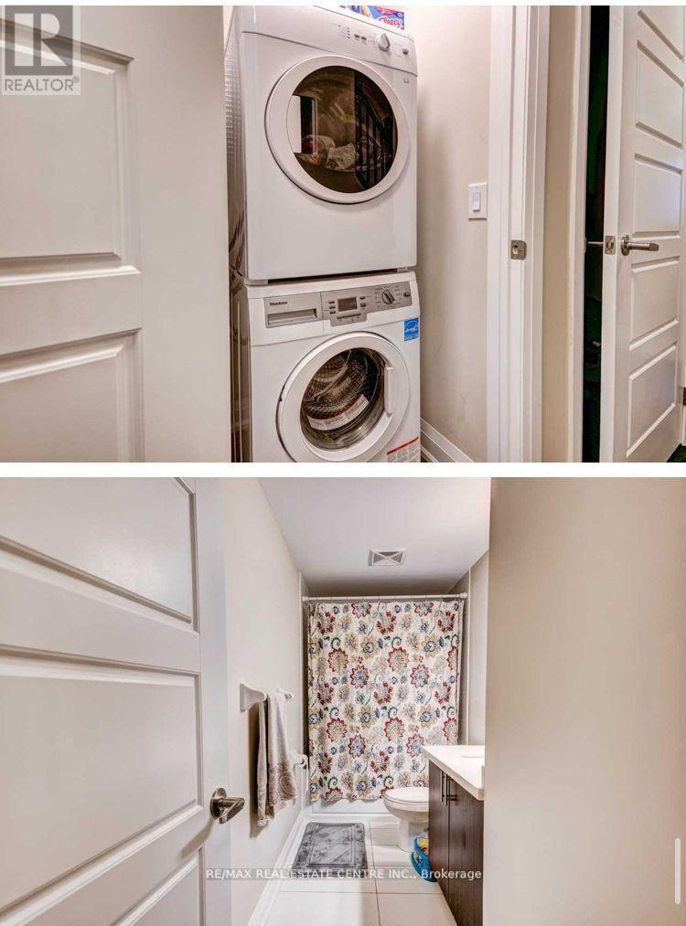 Bright, spacious, and well-maintained 2-bedroom, 2.5-bath stacked townhome in a highly desirable Milton location. Features an open-concept kitchen and living area with 9-ft ceilings, hardwood flooring throughout, upgraded staircase, smooth ceilings, and modern light fixtures. Contemporary kitchen boasts a large centre island with quartz countertop, backsplash, and under-cabinet lighting. Generously sized living area overlooks the front yard and opens to a Juliet balcony with a large front patio-perfect for relaxing or entertaining. Washrooms are finished with granite countertops. Includes two premium underground parking spaces and a personal locker. Conveniently located close to amenities, transit, and with easy access to Highways 401 & 407. (id:64974)