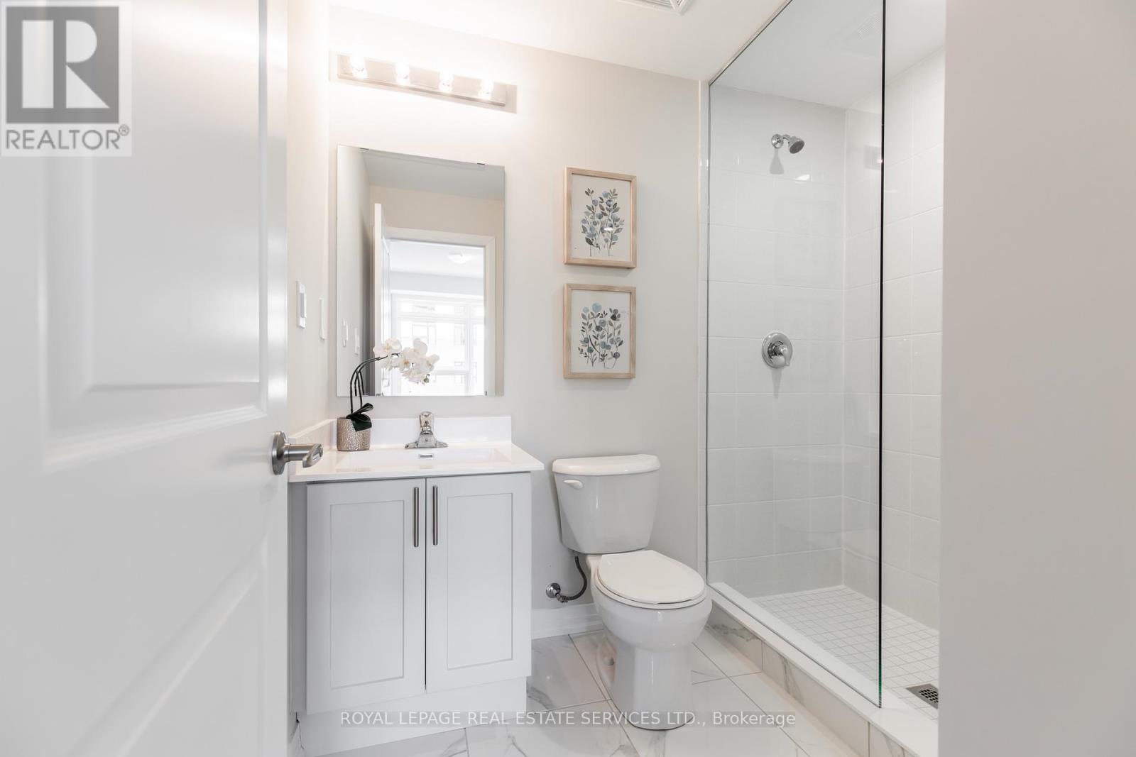 1 year old Fernbrook built, main floor unit featuring 2 bedrooms plus 2 full bathrooms. Carpet free. NO STAIRS! Spacious private balcony. White kitchen featuring a breakfast bar, stainless steel appliances, granite countertops with white subway-tile backsplash, coupled with plenty of room for storage in the large utility closet. The sizeable primary bedroom features a walk-in closet and an ensuite bathroom with a stand-up shower. Comes with 1 parking spot and 1 locker. Ideal family-friendly location. Close to great schools and parks. Close to Sobeys plaza, Hwys, Milton GO, Wilfrid Laurier University Milton Campus, Milton & Oakville Hospitals, Niagara Escarpment, Rattlesnake Point Golf Course and more. Please note pictures were taken before tenant moved in. Unit is no longer staged. (id:64974)