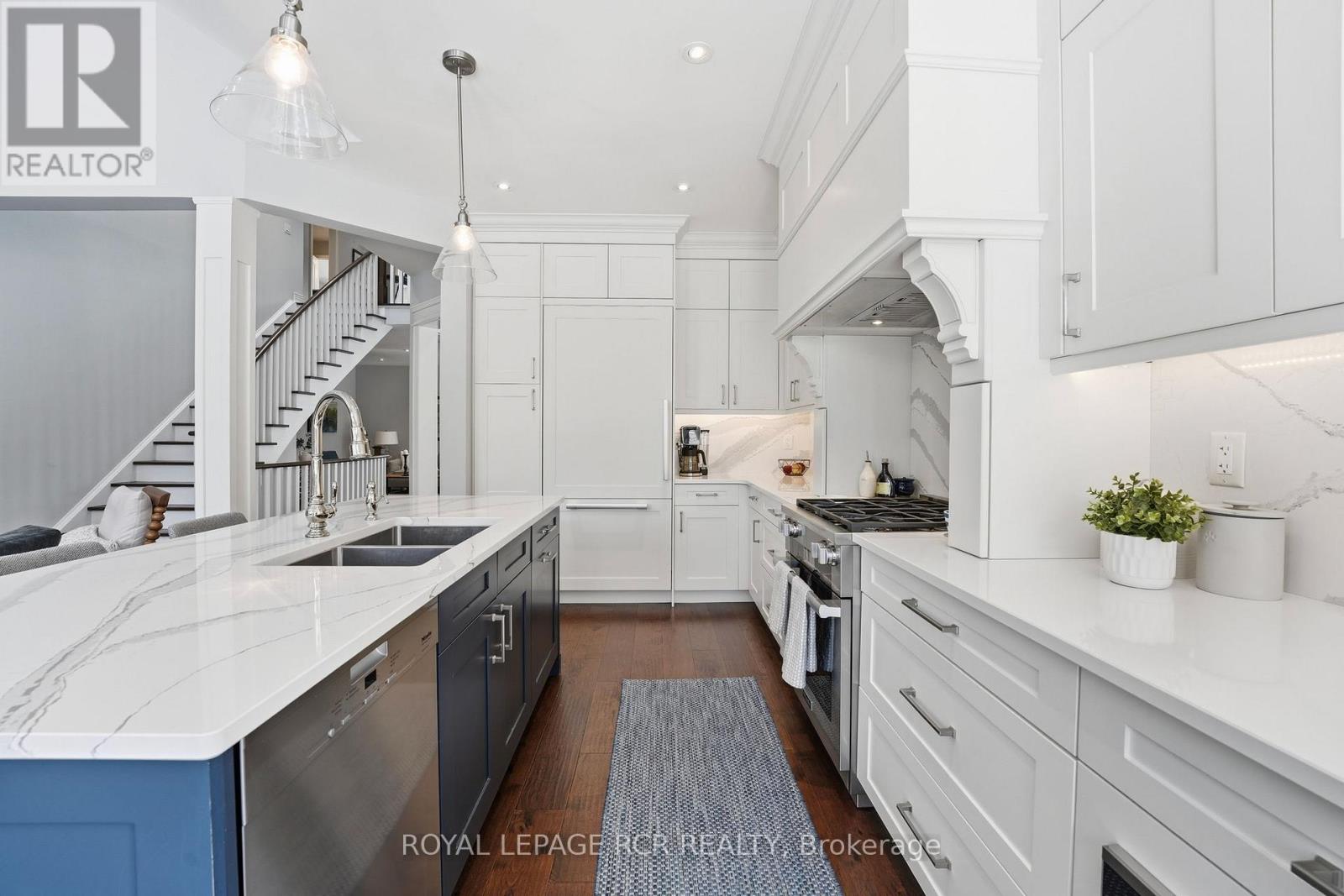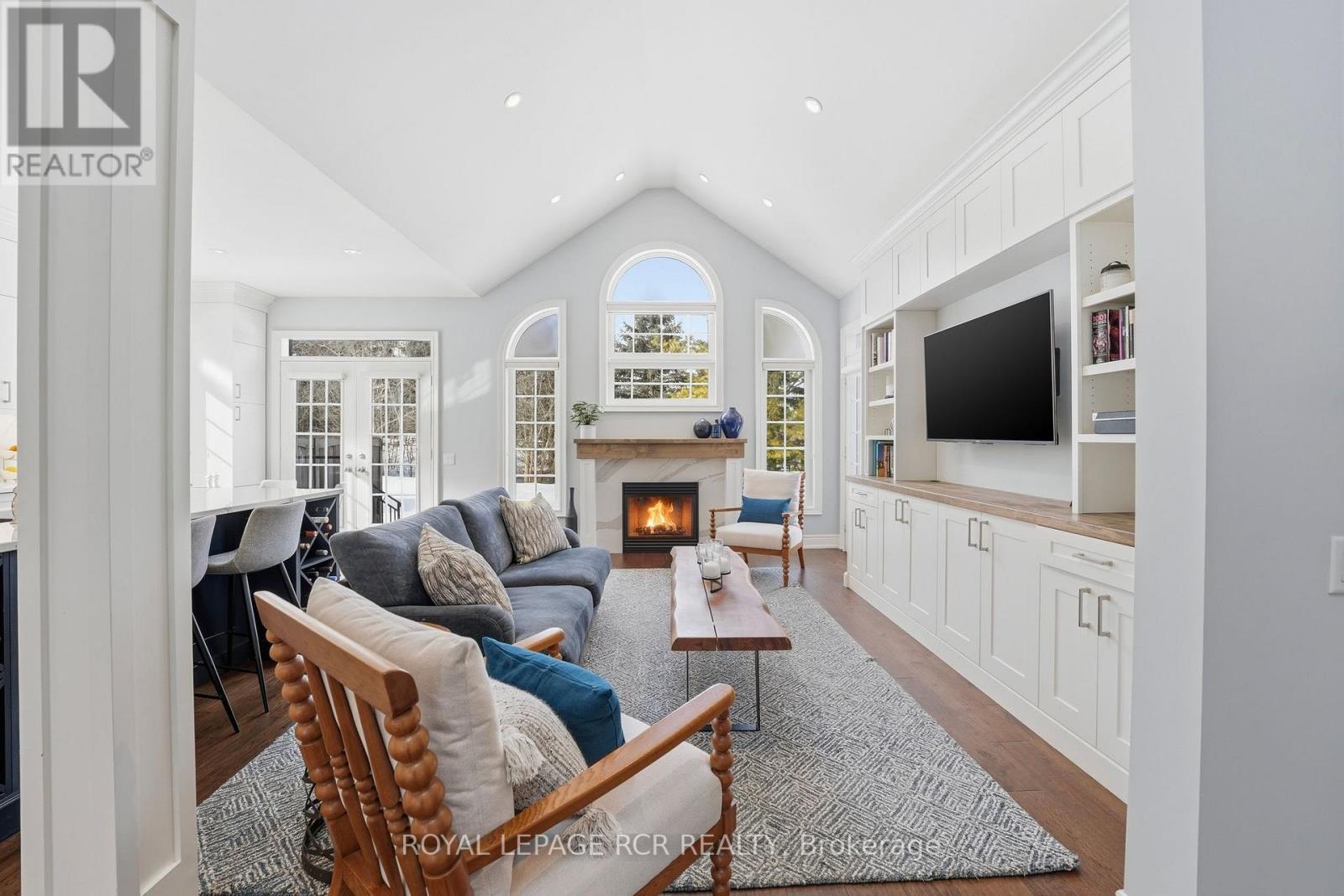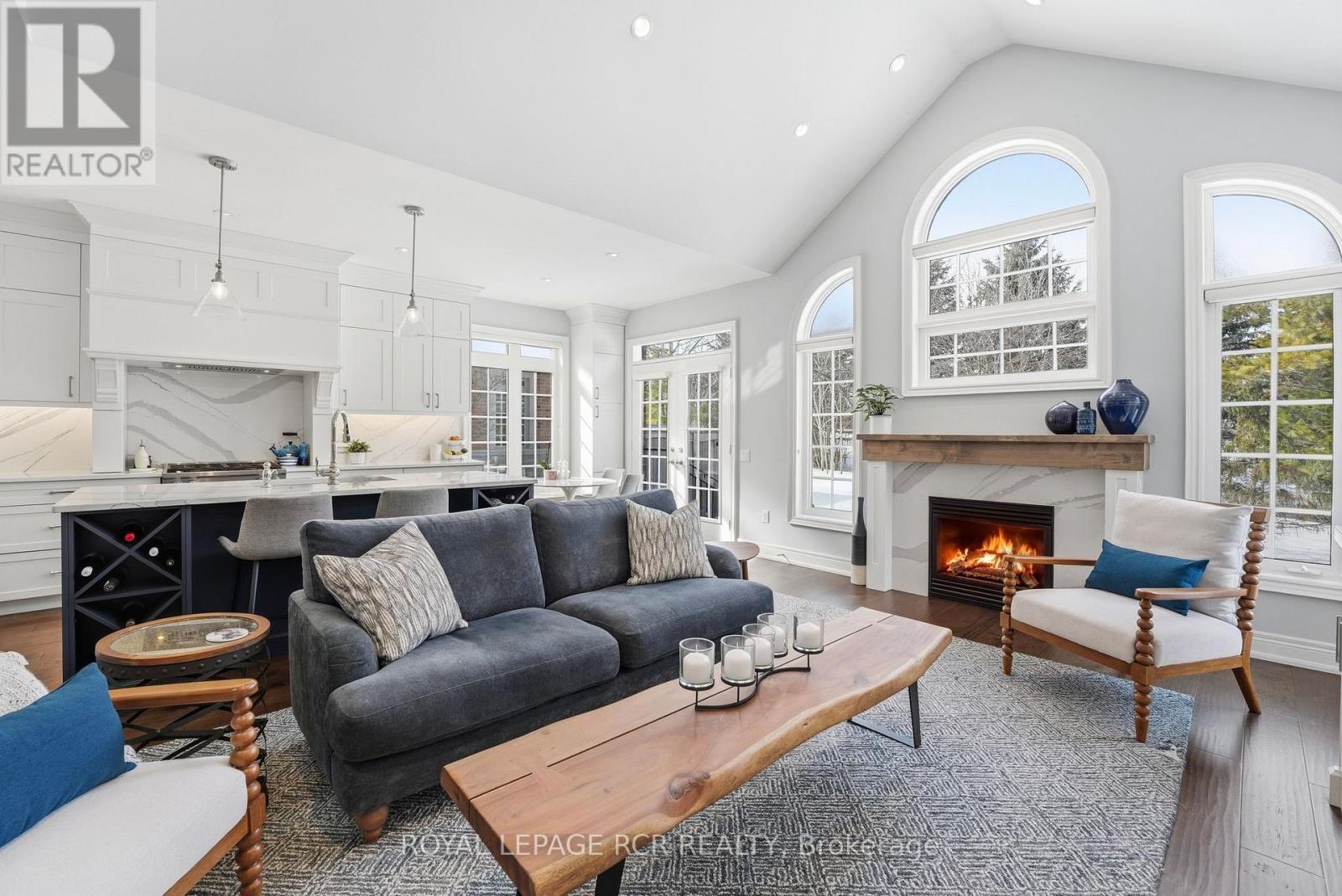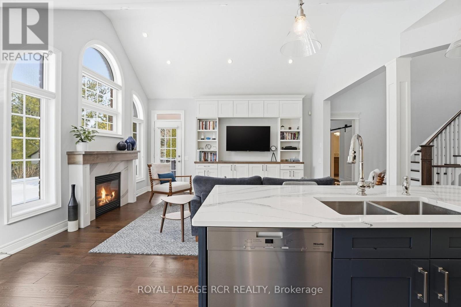Welcome to this beautifully updated 3-bedroom, 4-bathroom home in a sought-after gated community - your effortless next step in Aurora Estates. Enjoy the convenience of maintenance-free living, an interlocked driveway and two-car garage. The private backyard features an interlocked patio and deck with BBQ gas line, lush lawn, and mature gardens. The kitchen includes a centre island with seating and premium Miele appliances, and opens to a bright family room with vaulted ceilings, pot lights, and a cozy gas fireplace. A breakfast nook provides a walkout to the backyard for easy indoor-outdoor living. The main floor primary suite offers a walk-in closet and 4-piece ensuite, along with the convenience of main floor laundry and mudroom with garage access. Upstairs, two bedrooms share a bathroom and feature a loft-style office space or sitting room. The finished basement is ready for family gatherings. It includes a recreation room with bar area and gas fireplace, craft room, cold cellar, storage, a 3-piece bathroom, and an additional room with a walk-in closet for flexible use. Close to walking trails, golf, Longos and the 404 for easy travel. 16 Bonnell Crescent has it all, come and see what your next chapter looks like! (id:64974)