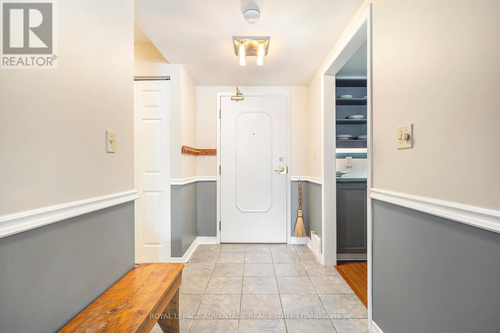 Desirable Tay River Condo in the Heart of Perth! Welcome to this highly sought-after condominium building perfectly situated in the heart of Perth - backing directly onto the tranquil Tay River. This beautiful and convenient ground-floor unit offers comfort, style, and an unbeatable location. Step inside to find a bright and inviting living room with patio doors leading to your cozy private deck - ideal for morning coffee or evening relaxation. The updated galley kitchen features sleek quartz countertops, modern appliances (included), and plenty of workspace. The laundry/pantry area provides extra storage for all your essentials. There are two spacious bedrooms, including a large primary suite with a walk-in closet and cheater ensuite featuring a tub and separate shower. The secondary bedroom that's perfect for guests or an ideal home office. Enjoy the convenience of two parking spaces - one underground and one outdoors! The building itself offers exceptional amenities, including a stunning entrance, a common room with panoramic Tay River views, a games/exercise room, and a workshop on the lower level. The underground garage even features a car wash area. This secure, well-maintained building boasts excellent walkability to all the charming shops, restaurants, and attractions that downtown Perth has to offer. This is the condo you've been waiting for - combining comfort, community, and convenience in one perfect package! (id:64974)