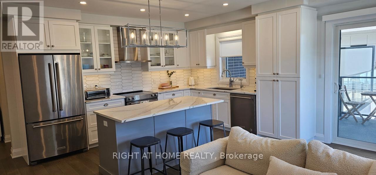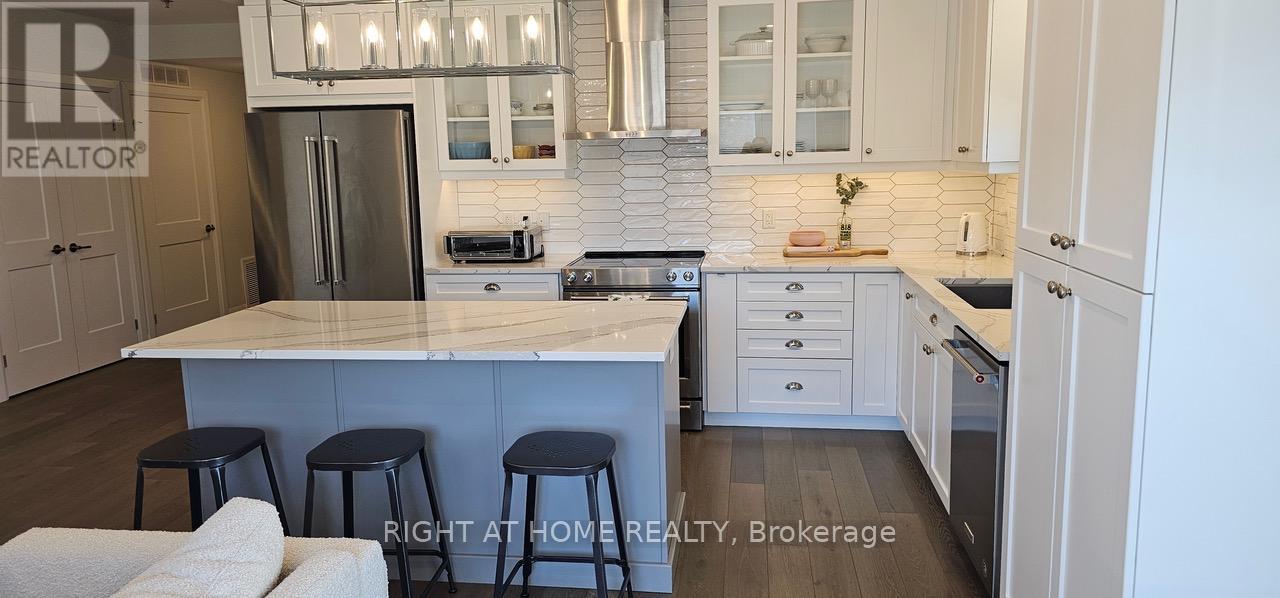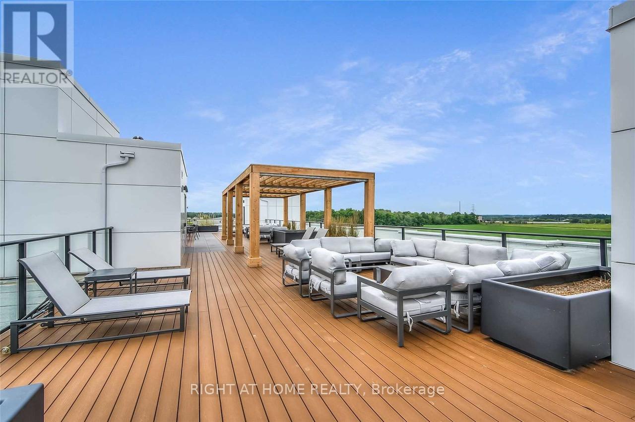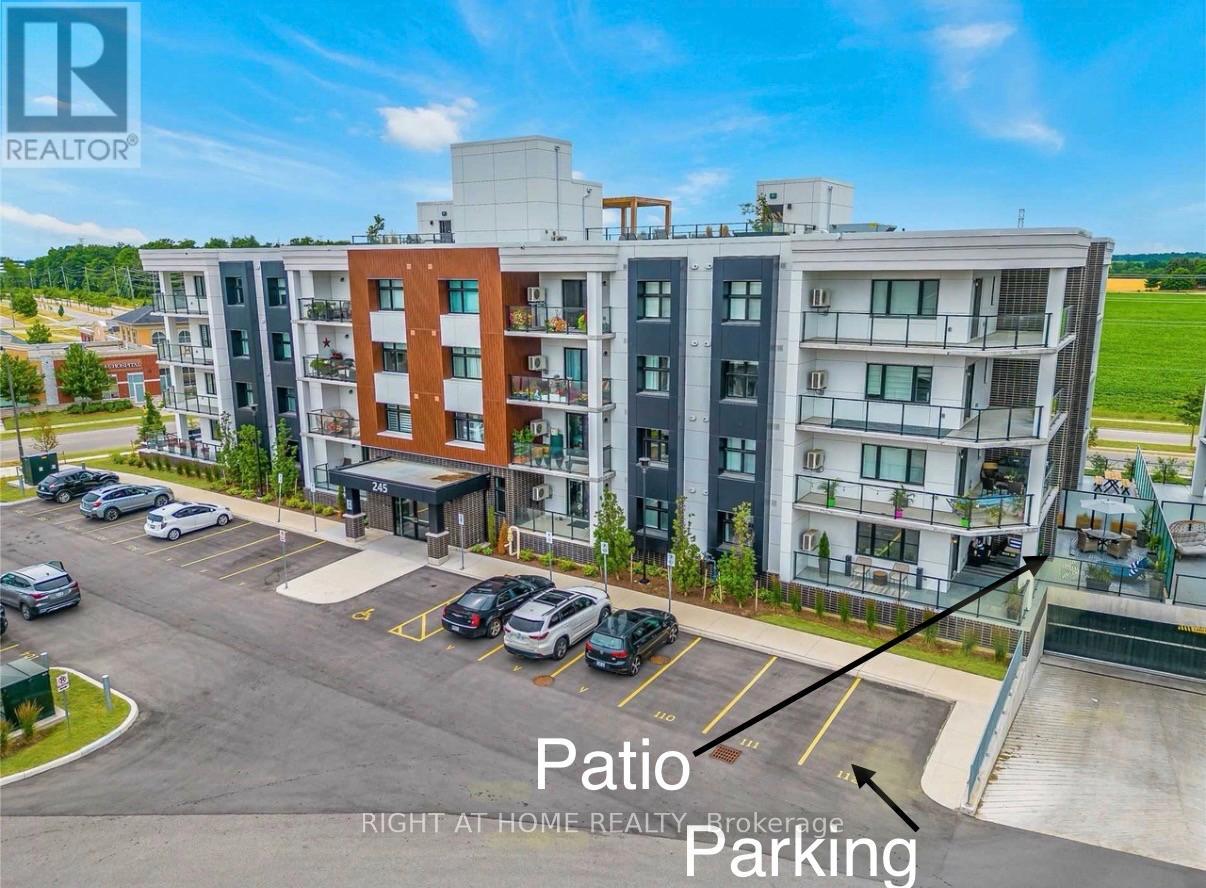 Welcome Home! This bright CORNER unit in the sought-after Carriage Crossing community features a carpet-free, open-concept layout with stylish upgrades throughout. Enjoy a spacious living area filled with natural light and a modern kitchen complete with quartz countertops, subway tile backsplash, KitchenAid stainless steel appliances, and a large island with a sit up breakfast bar. Step outside to your impressive wraparound balcony offering nearly 650 sq ft of private outdoor space, plus access to an incredible rooftop terrace which features: a fire table and lounging area, BBQ area, planter gardens, and stunning views. Conveniently located near amenities, highways, universities, and colleges, it offers easy access to public transit, Blackberry, Conestoga Mall, St. Jacobs Farmers Market, and beautiful walking and biking trails. Plus, it's just a quick walk to RIM Park & Grey Silo Golf Course. This home is a perfect combination of comfort, convenience, style, and indoor-outdoor living! (id:64974)