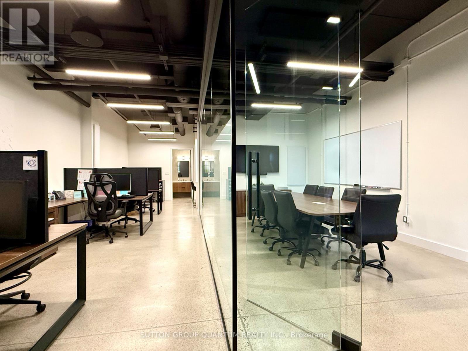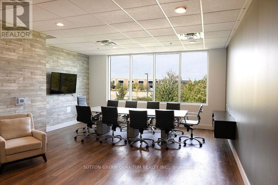 Here is your opportunity to own a main-floor commercial unit in Oakville! This 1,430 sq. ft. office space is meticulously finished, maximizing every square inch for functionality and style. The layout features a welcoming reception area, a boardroom, open office desk space, a kitchen, a full bathroom, and a storage/mechanical room. Located in a modern plaza with ample parking right at the Oakville/Burlington border. The property offers flexible zoning that accommodates institutions, banks, law firms, accountants, insurance firms, immigration services, tutorial centers, design and display centers, and other professional offices. (Non-retail, non-automotive, and non-food uses.) The building also provides shared access to a 416 sq. ft. boardroom, a common kitchen, and washrooms. The unit itself comes equipped with an alarm system, security cameras and equipment, a built-in sound system, all electric light fixtures, a kitchen fridge, coffee maker, speed oven, dishwasher, HVAC equipment, and a tankless water heater. Burloak Marketplace development includes major anchors such as Food Basics and Shoppers Drug Mart, offering added convenience and visibility. Plus ample parking for staff and clients! (id:64974)