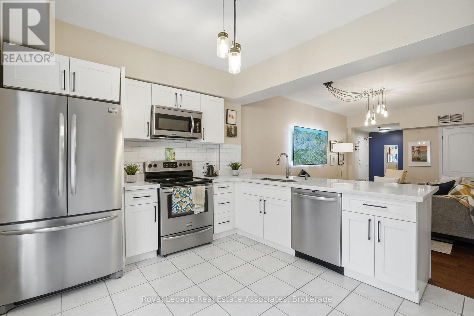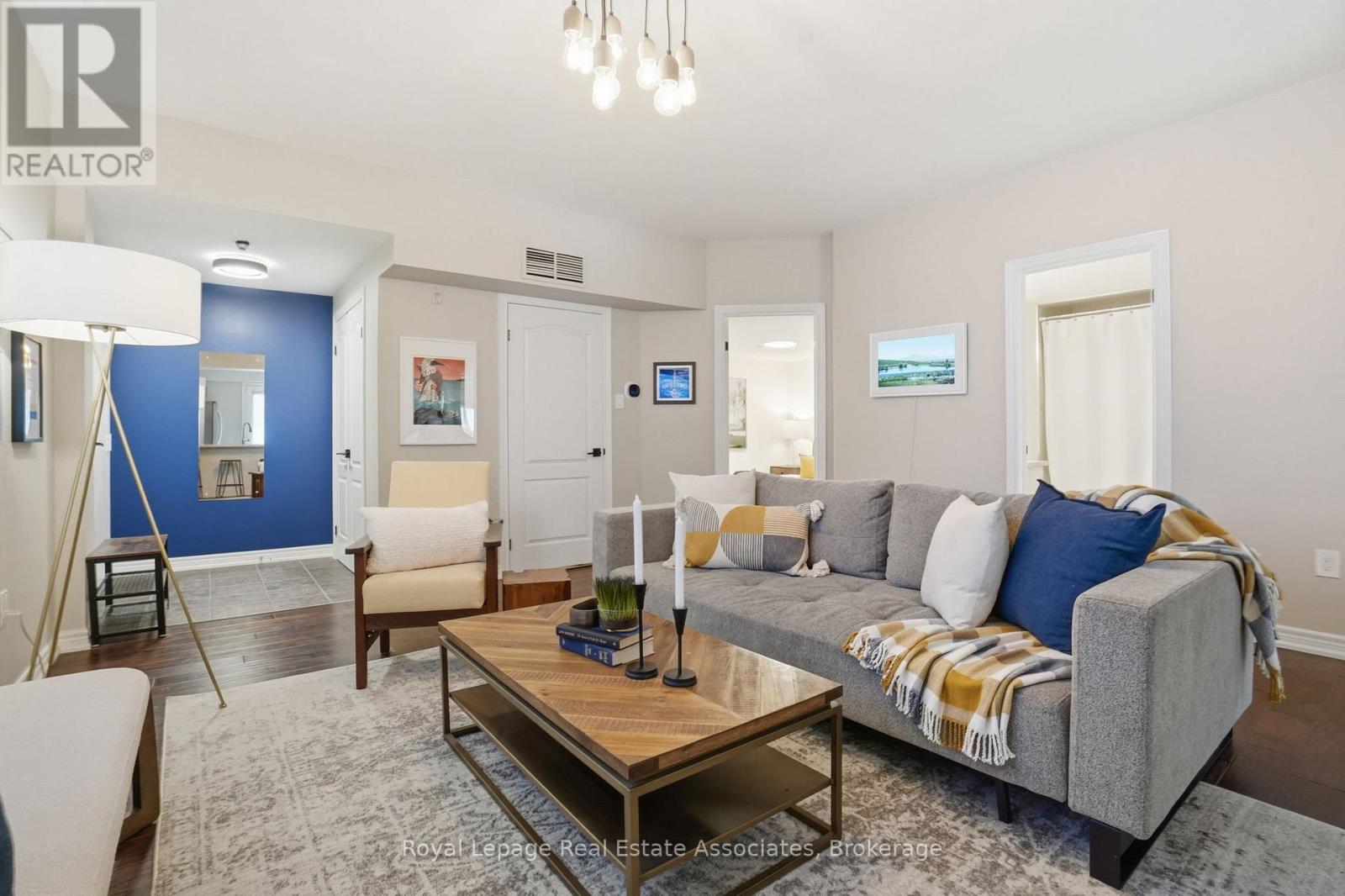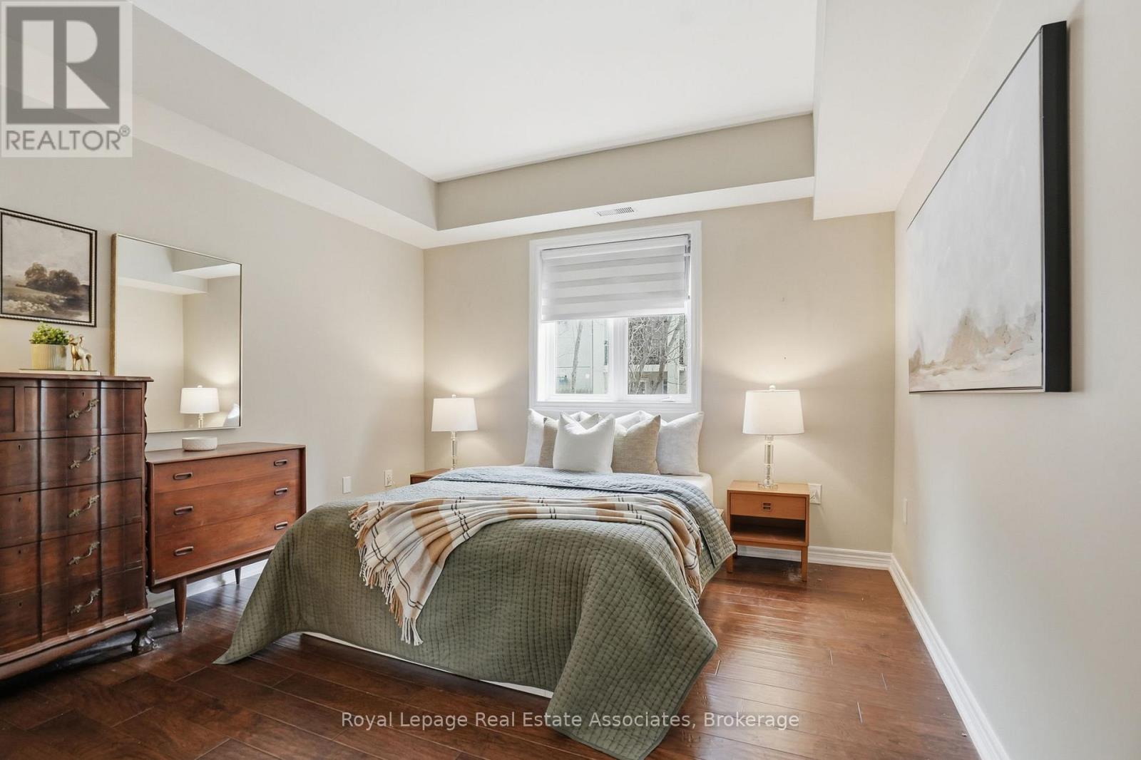 A rare opportunity in a highly sought-after building with very low turnover, a true testament to how much residents love living here. This ground-level 1-bedroom + den condo offers the perfect blend of comfort and convenience, ideal for buyers seeking easy access living without elevators or stairs. The versatile den is perfect for a home office, guest room, or cozy reading space. Inside, you'll find beautiful hardwood floors throughout and a spacious, open-concept layout designed for both relaxing and entertaining. The kitchen impresses with its generous size and updated countertops, offering plenty of prep and storage space. The oversized bathroom adds to the home's functional appeal. Step outside to your private ground-level patio, a peaceful outdoor retreat perfect for morning coffee or evening unwinding. Low-maintenance living in a building people rarely leave, don't miss this exceptional opportunity. (id:64974)