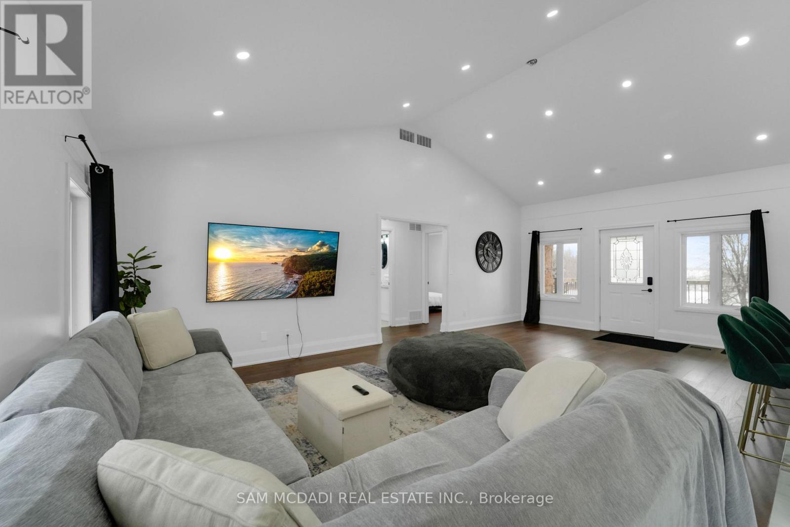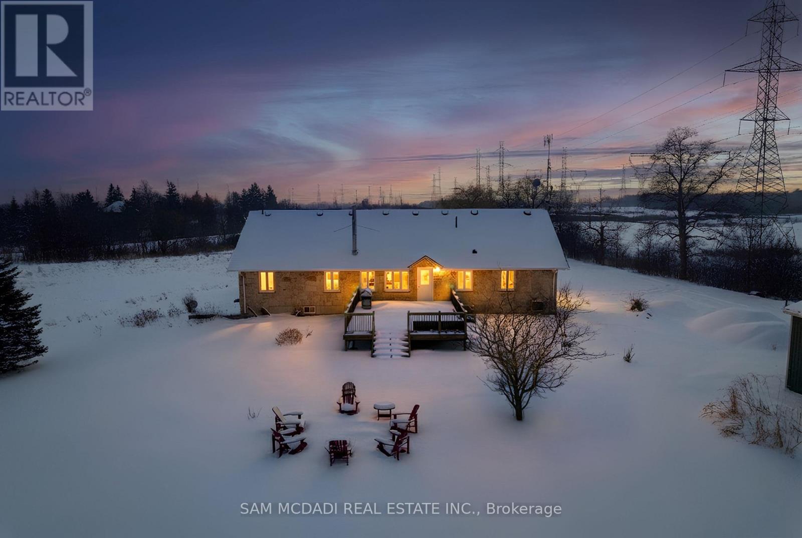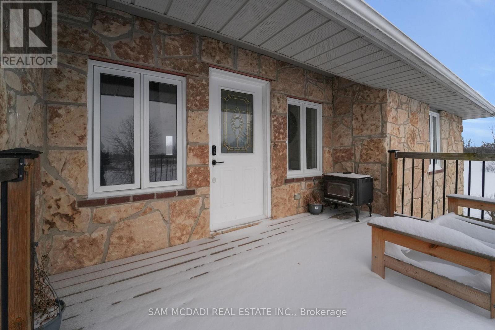 Set on an expansive 41-acre parcel, this beautiful bungalow features 3+1 bedrooms and 3 bathrooms with proven AirBnB income potential. Generating approximately $7,000 per month as a premium short-term rental during peak season, this residence presents a compelling opportunity for investors and lifestyle buyers alike. Upon entry, you'll be met by soaring 15-ft cathedral ceilings, extensive pot lighting, and curated finishes throughout, creating a bright and contemporary interior. The main level features an open-concept layout anchored by a striking chef's kitchen with an oversized island, large-format porcelain tile flooring, quartz countertops, custom cabinetry with refined hardware, and stainless steel appliances. Hardwood flooring defines the adjoining living space, while expansive windows bring in natural light and views of the surrounding countryside. The primary bedroom includes a walk-in closet and private 3-piece ensuite, complemented by two additional bedrooms and a full 5-piece bathroom. The finished lower level adds exceptional versatility with a separate entrance, offering a spacious recreation room, den, additional bedroom, 4-piece bath, and a servery with kitchenette capability, ideal for extended family use or supplementary income. Outside, the stone exterior, covered deck, and elevated setting provide year-round enjoyment, while the surrounding 41 acres offer a mix of open land and natural features, well suited to hobby farming or long-term land holding. The property's location further enhances its appeal, situated just 20 minutes to Hamilton, a short commute to the Grand River, known for kayaking, canoeing, fishing, and scenic trails, and close to local attractions, conservation areas, and charming small-town amenities. Do not miss this rare offering! (id:64974)