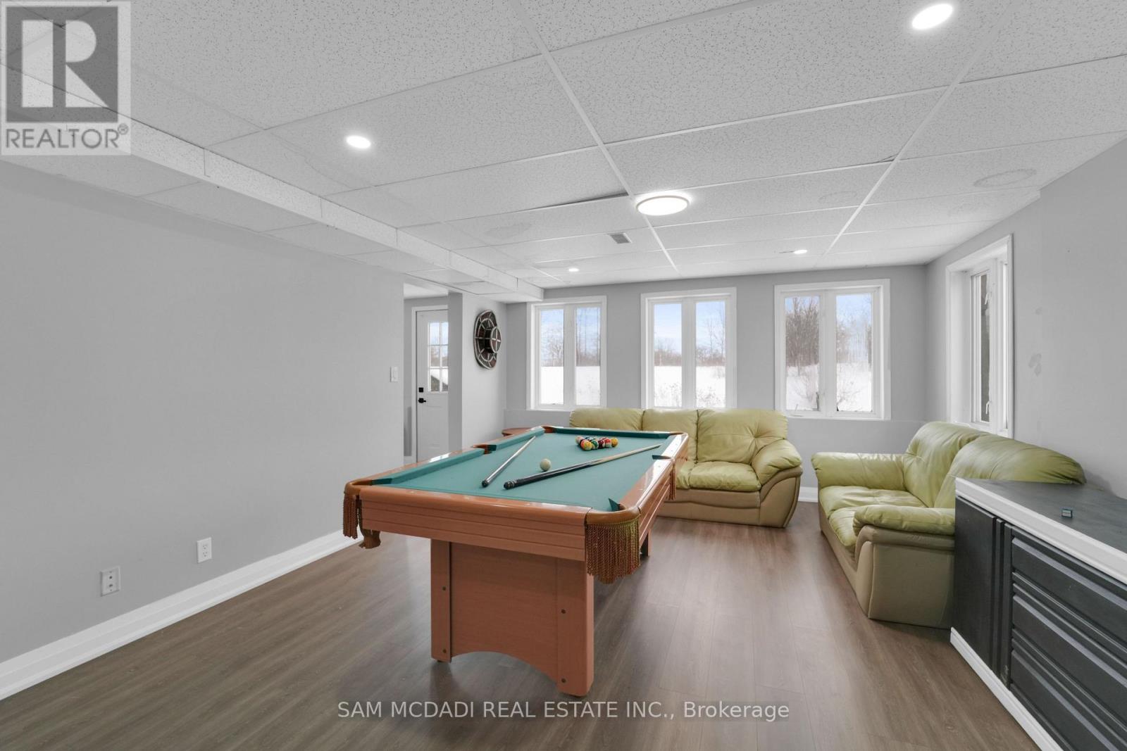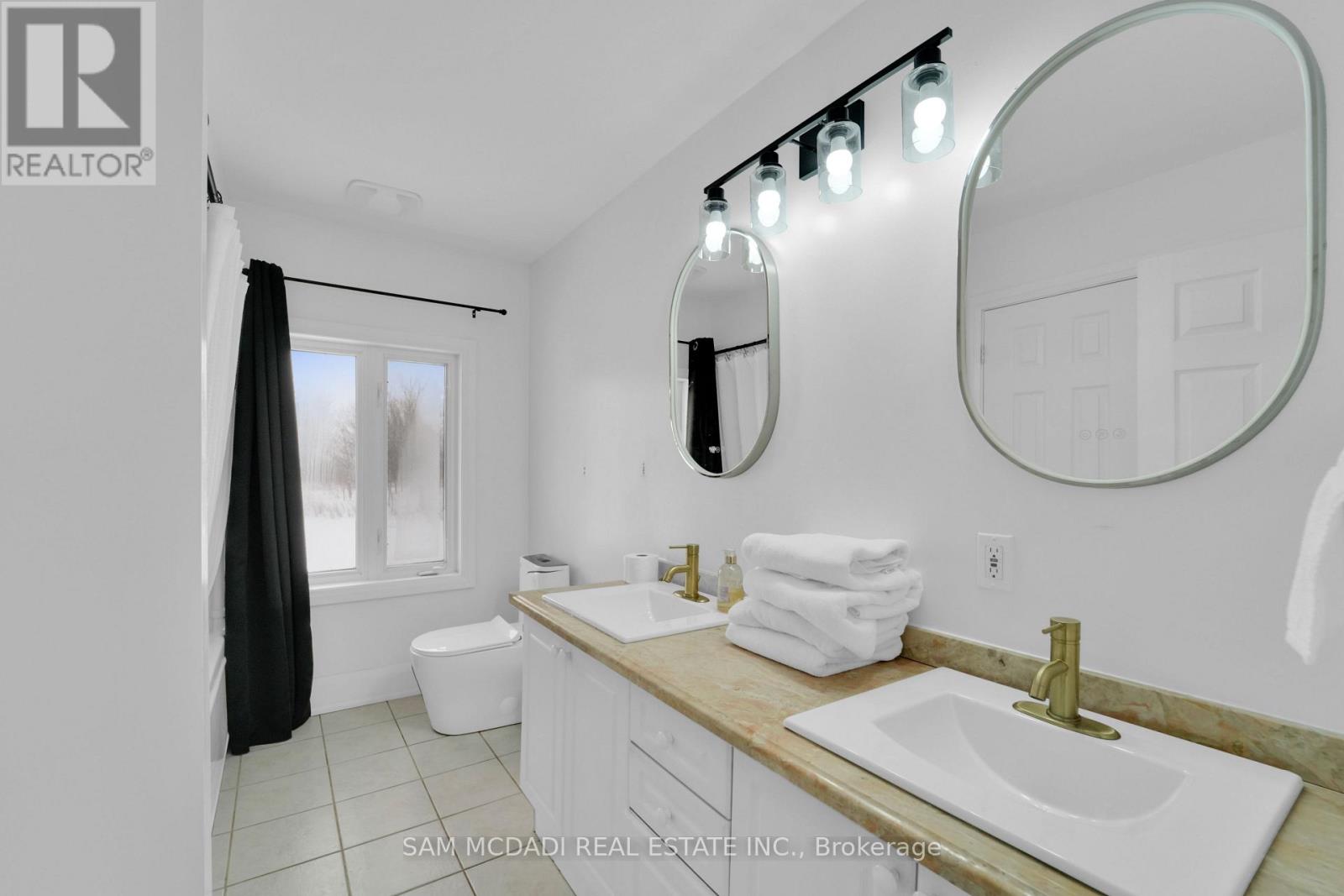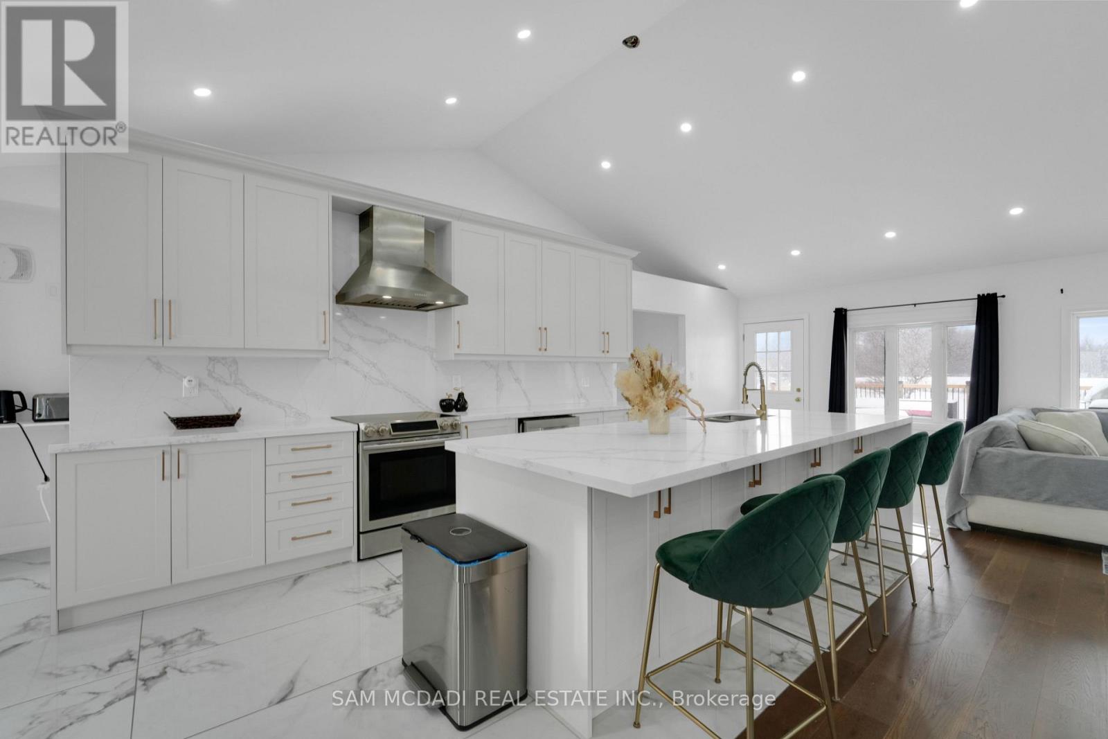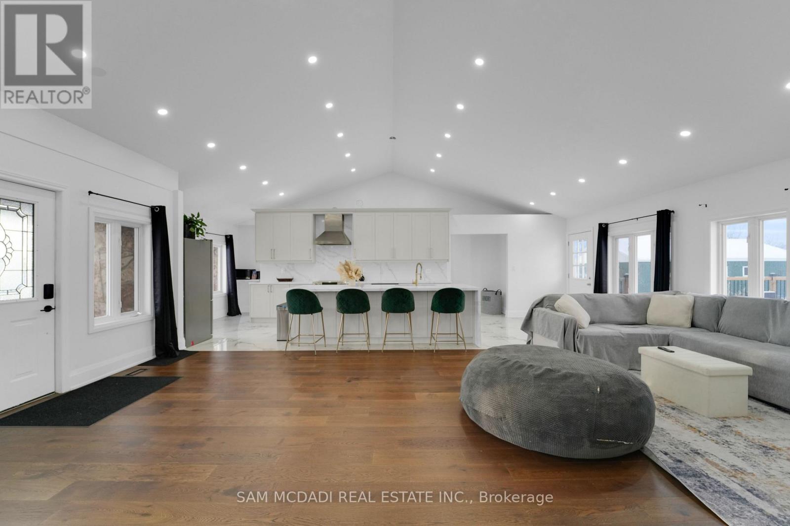 Set on an expansive 41-acre parcel, this beautiful bungalow features 3+1 bedrooms and 3 bathrooms with proven AirBnB income potential. Generating approximately $7,000 per month as a premium short-term rental during peak season, this residence presents a compelling opportunity for investors and lifestyle buyers alike. Upon entry, you'll be met by soaring 15-ft cathedral ceilings, extensive pot lighting, and curated finishes throughout, creating a bright and contemporary interior. The main level features an open-concept layout anchored by a striking chef's kitchen with an oversized island, large-format porcelain tile flooring, quartz countertops, custom cabinetry with refined hardware, and stainless steel appliances. Hardwood flooring defines the adjoining living space, while expansive windows bring in natural light and views of the surrounding countryside. The primary bedroom includes a walk-in closet and private 3-piece ensuite, complemented by two additional bedrooms and a full 5-piece bathroom. The finished lower level adds exceptional versatility with a separate entrance, offering a spacious recreation room, den, additional bedroom, 4-piece bath, and a servery with kitchenette capability, ideal for extended family use or supplementary income. Outside, the stone exterior, covered deck, and elevated setting provide year-round enjoyment, while the surrounding 41 acres offer a mix of open land and natural features, well suited to hobby farming or long-term land holding. The property's location further enhances its appeal, situated just 20 minutes to Hamilton, a short commute to the Grand River, known for kayaking, canoeing, fishing, and scenic trails, and close to local attractions, conservation areas, and charming small-town amenities. Do not miss this rare offering! (id:64974)