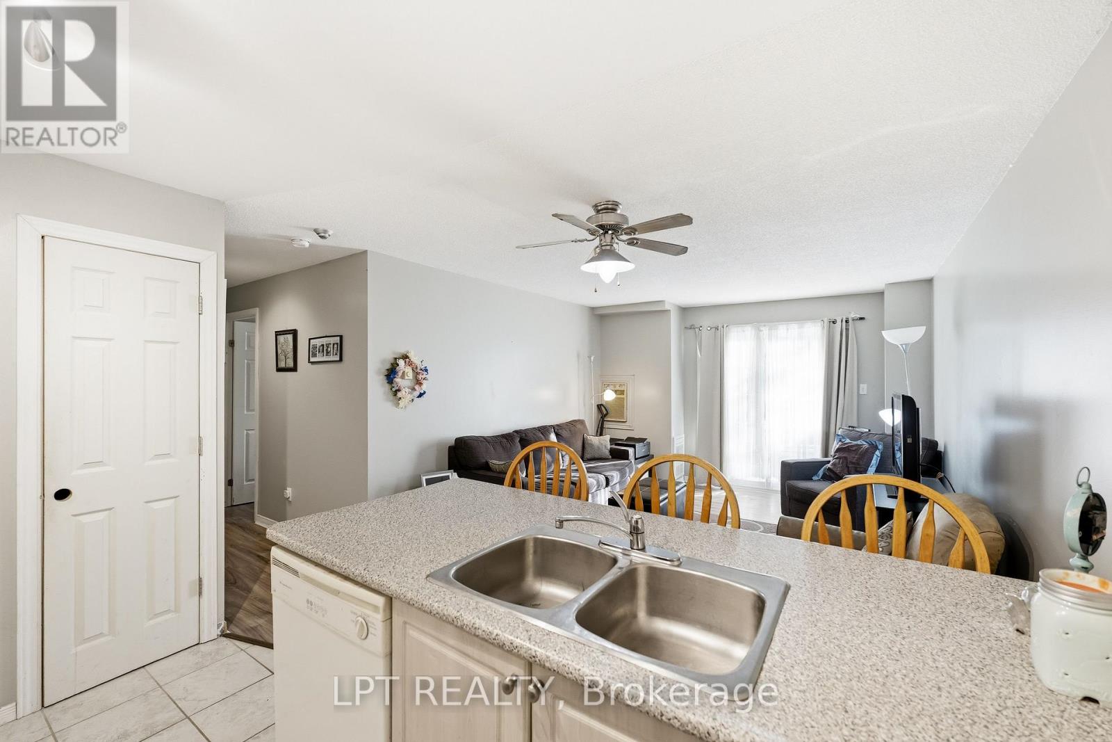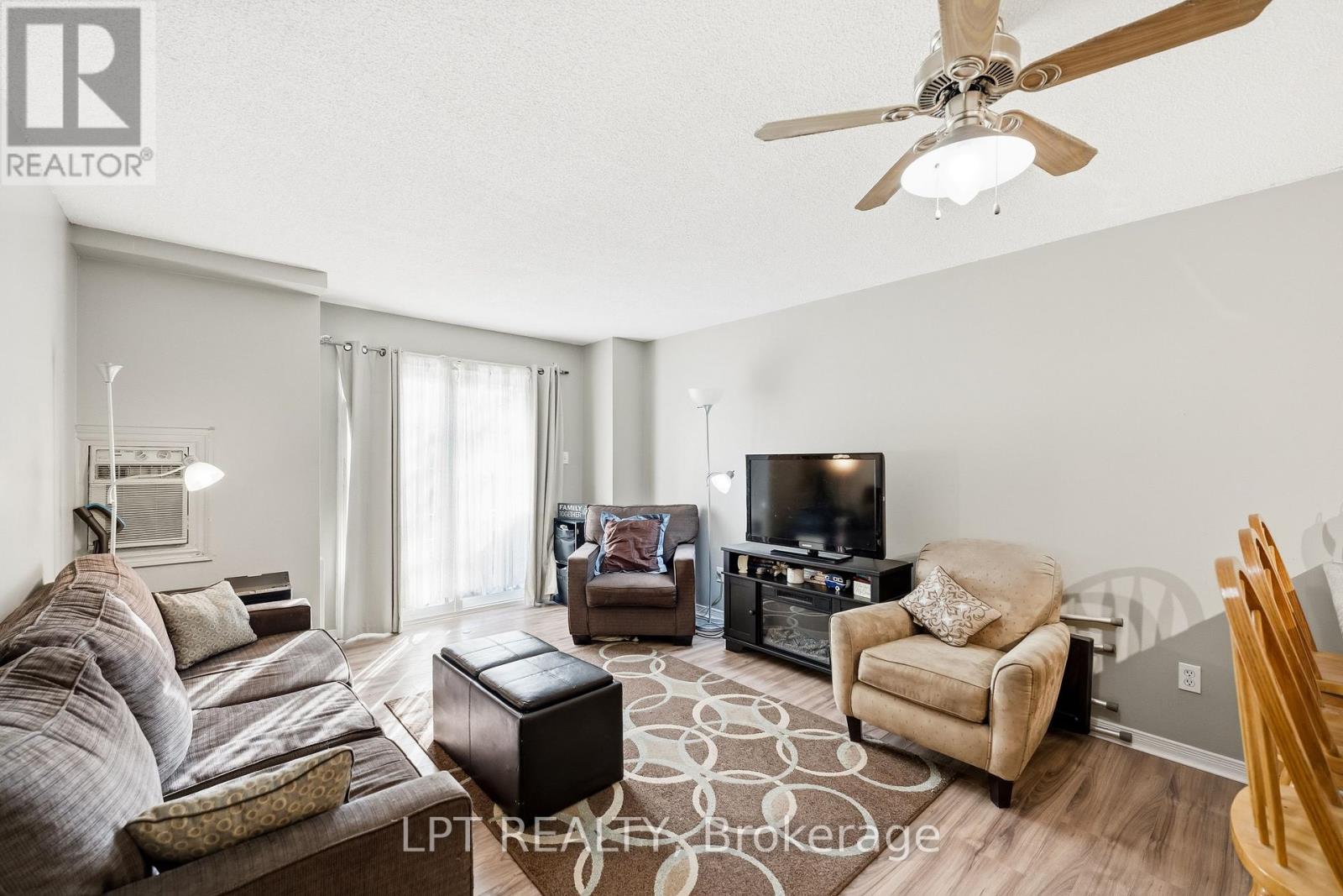 Welcome to this well-maintained 2-bedroom, 1-bathroom condominium apartment in the sought-after Aspen Springs community, where comfort meets convenience in one of Durham Region's fastest-growing areas. This bright and functional unit features an open-concept living and dining space with updated flooring, creating a warm and inviting atmosphere perfect for both relaxing and entertaining.The kitchen offers a practical layout with ample cabinetry and a breakfast bar, seamlessly connecting to the main living area. Step out to your patio and enjoy a quiet, tree-lined view that adds a rare sense of privacy and calm, a standout feature for condo living.Both bedrooms are well-proportioned with generous closet space, ideal for first-time buyers, small families, or those looking to downsize without compromise. The unit also includes in-suite laundry and convenient surface parking for added everyday ease. Located in a highly desirable Bowmanville neighbourhood, this property places you just minutes from shopping, restaurants, parks, schools, and major commuter routes including Highway 401, making it an excellent option for both homeowners and investors looking for strong rental appeal. If you're looking for an affordable condo that's - move-in ready - 2 bedrooms, and low-maintenance living, you'll immediately recognize the value this home offers. (id:64974)