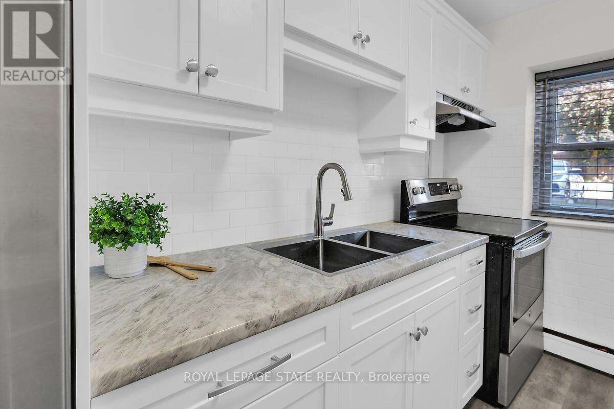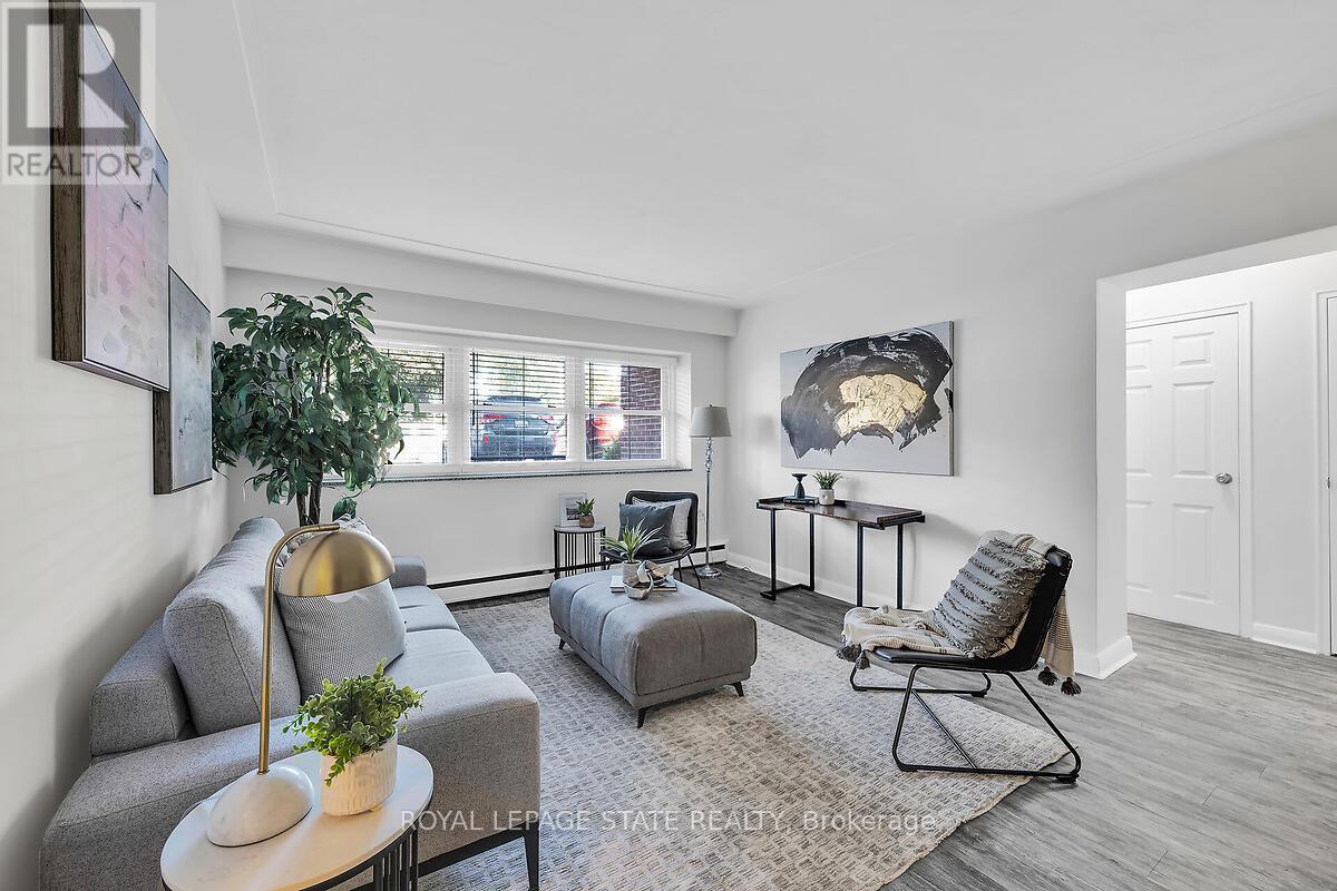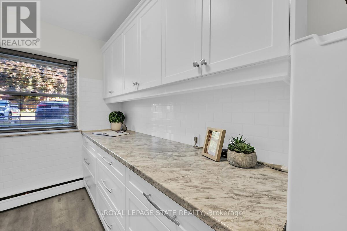 Welcome to Sun Valley Co-operative, Corner unit in a highly-sought after, well maintained, adult-oriented building in the heart of Dundas. This awesome fully renovated 2 bedroom main-floor unit offers modern comfort and convenience just steps from University Plaza, McMaster Hospital and quick access to Downtown Dundas, Ancaster and Hamilton. Over $60,000 in quality renovations (2018-2024) including flooring, lighting, mirrored closet doors, walk-in shower stall with seat, stunning custom kitchen and stainless steel appliances included. This unit comes with great space, is carpet-free, filled with natural light, ground-level private patio, ideal for retirees, empty nesters or professionals seeking turnkey living. Enjoy the wheelchair-accessible main-floor location with easy access to parking-no elevators needed. Extraordinarily well-managed co-op includes property taxes, building insurance, heat, water, cable TV, phone, internet, parking and locker in monthly fee-offering outstanding value. Common laundry, secure entry and beautifully maintained grounds complete the package. Prime Dundas location across from University Plaza, with grocery stores, dining, banks and bus stops just steps away. Minutes to highway 403, Ancaster Meadowlands, Costco, Conservation trails and the charm or Downtown Dundas. A rare opportunity to own a fabulous, move-in ready home in a quiet, friendly community! (id:64974)