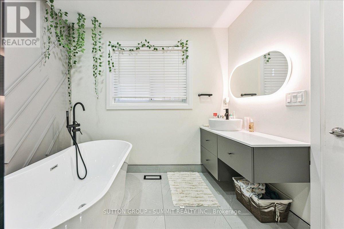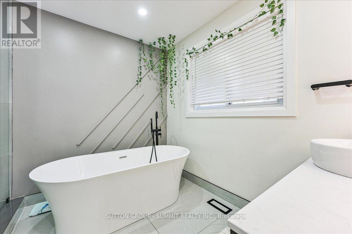 Extremely deceiving from the outside. With approximately 2,800 sq. ft. of total living space, there's room for everyone. This home offers 4 bedrooms, 3 bathrooms and a separate studio in-law suite. Step inside and prepare to be impressed-this beautifully updated bungalow offers far more than meets the eye. From the moment you enter, you're welcomed by a bright and spacious living room featuring gleaming hardwood floors, modern pot lighting, and an oversized picture window that fills the space with natural light. The stunning eat-in kitchen is designed for both style and function, showcasing abundant cabinetry, granite countertops, a built-in dining nook with bench seating, and stainless-steel appliances. The main level also offers two large bedrooms and an expansive spa-inspired bathroom complete with a freestanding tub and separate glass shower.Toward the back of the home, the floor plan opens into an airy dining area and a generous family room accented with hardwood flooring, pot lights, and a warm gas fireplace-an ideal setting for gatherings or quiet evenings in. This home provides exceptional versatility with two separate entrances to the lower level. A private side entrance leads to a self-contained in-law suite featuring its own kitchen, open living/bedroom layout with gas fireplace, and a 3-piece bathroom. The second staircase accesses two additional spacious bedrooms and another full 3-piece bath. Outside, enjoy a fully fenced backyard and ample parking with space for up to seven vehicles. Located in a quiet, family-friendly neighbourhood close to schools, parks, shopping, and major highways, this property offers both convenience and comfort. This is truly a home you must experience in person-its size, layout, and upgrades will surprise and delight you. Tenants would like to stay, if possible. (id:64974)