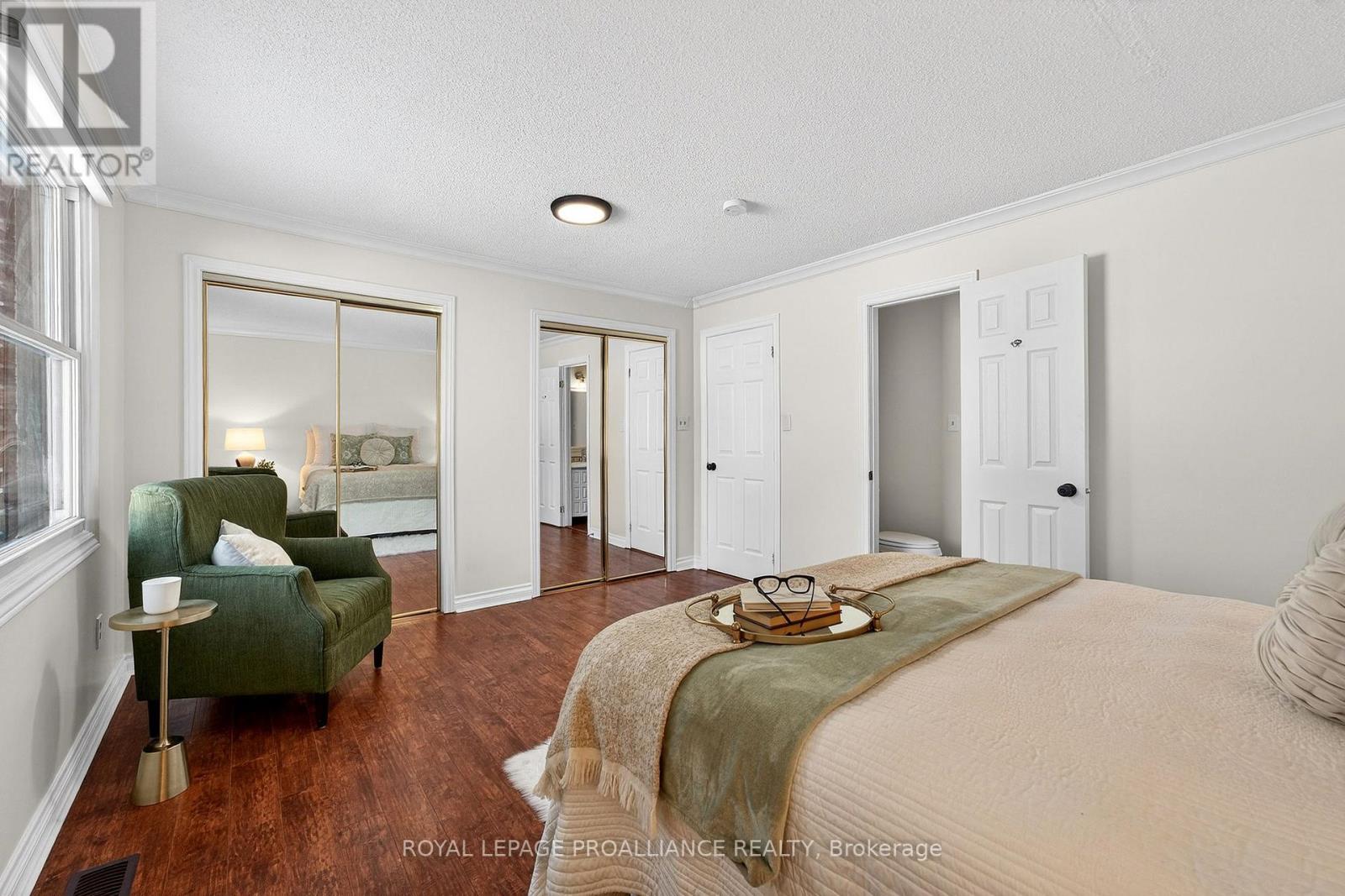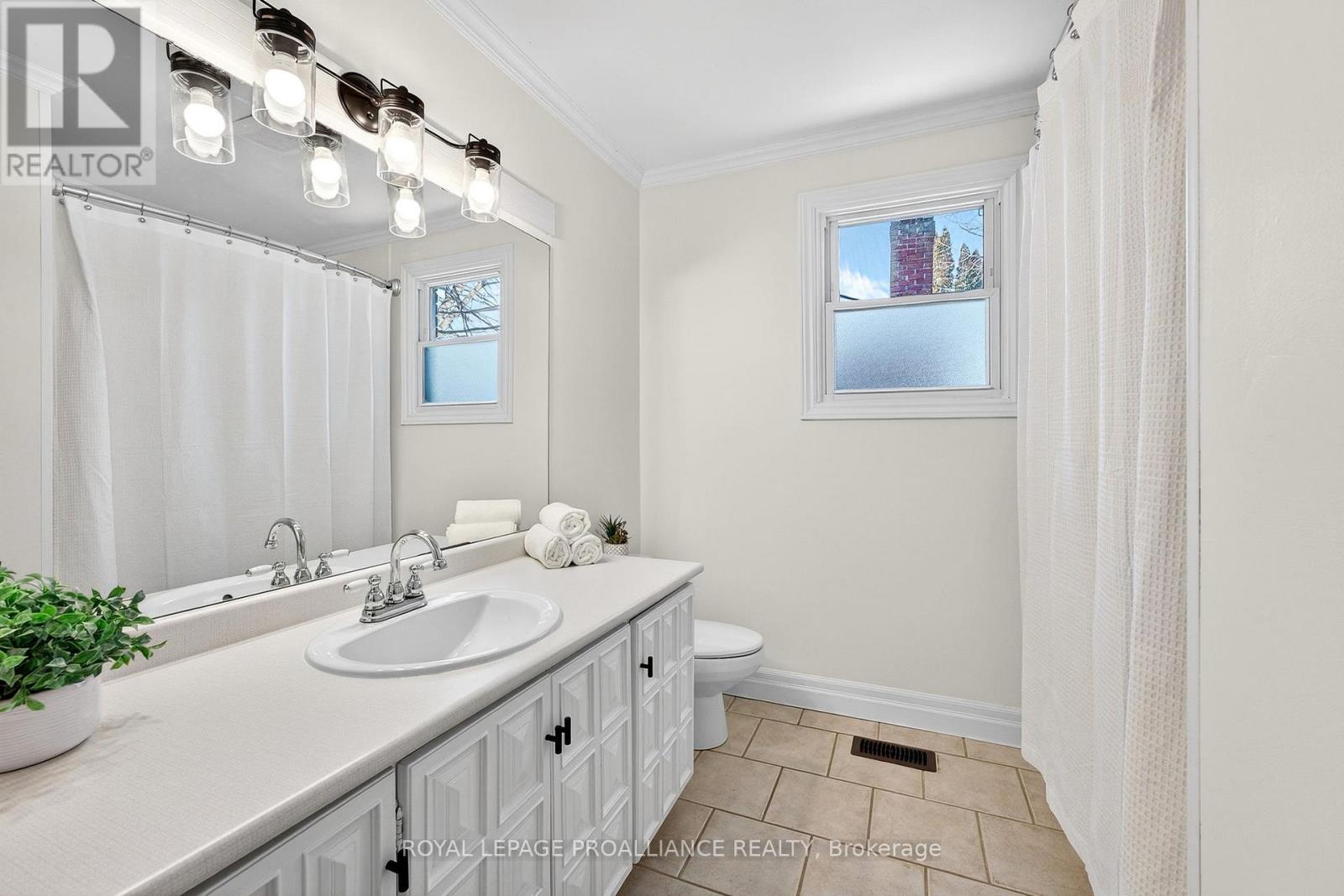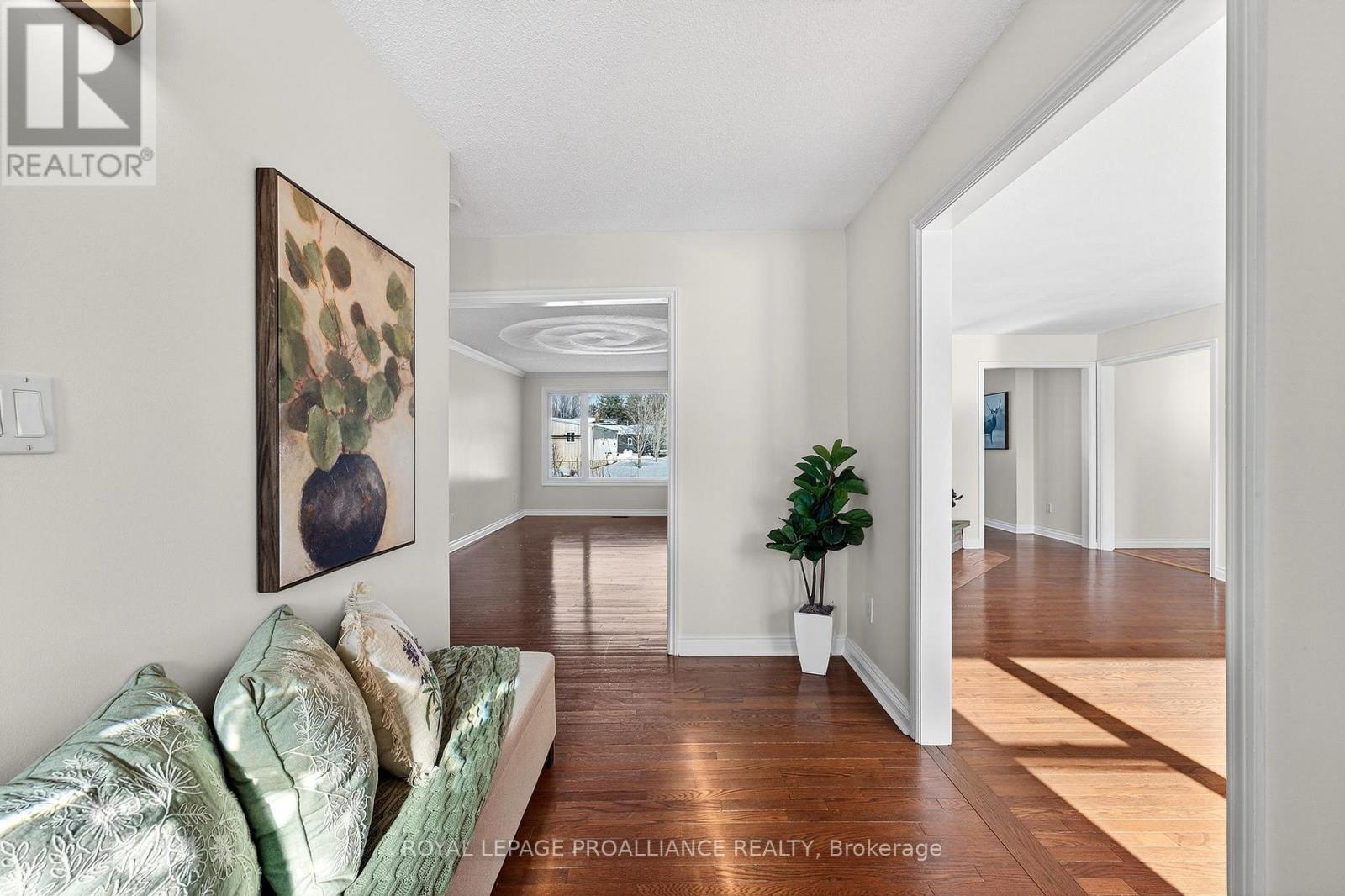 Enjoy the convenience of Belleville living with the quiet of Prince Edward County! This sprawling stone bungalow offers 3 + 2 bedrooms, 4 bathrooms and is located in the mature neighbourhood of Fenwood Gardens, just over the Bay of Quinte bridge. This summer enjoy the quick access to Sandbanks, restaurants & wineries and come home to relax on the patio around the in-ground pool. The private 100 ft wide by 160 ft deep lot is fenced with interlocking patio and an 18 ft x 36 ft in-ground pool with concrete decking, new liner and pump. Offering almost 2000 sq ft of main floor living space, hardwood floors in the living, family and dining rooms, and a stunning 15 ft x 12 ft sunroom that looks over the deck and pool - perfect for entertaining. The large eat-in kitchen just off the separate dining room is conveniently located on one end of the home. It features tons of white cabinetry, newer black stainless steel appliances and leads to the handy main floor laundry room, 2-pcs bathroom with tiled shower and access to the outside patio for easy barbecuing. Offering a functional layout for growing families, you'll find three generous sized bedrooms and a full 4-piece bathroom on the other end of the home. The Primary suite offers a 2-pcs ensuite bathroom and huge double closets. The fully finished lower level provides incredible versatility for larger families and features a new full kitchen, a large recreation room, 2 additional bedrooms, a den/office, a full 4-pcs bathroom, and tons of storage. The lower level also offers a separate entrance. Oversized attached 2-car garage also has a work bench. Enjoy the calm space of a generous, backyard tucked within a quiet, well-established neighbourhood. Easy access to town and just a short drive to The County's popular beaches, wineries, and local attractions, this property offers an opportunity to enjoy both everyday convenience and the lifestyle the area is known for. ( Updated Roof, Furnace, Pool Eqt. & more) See Full List. (id:64974)