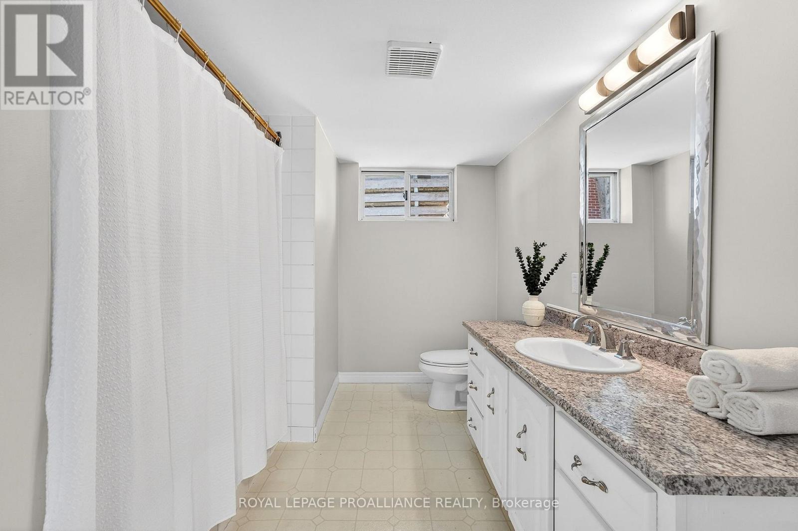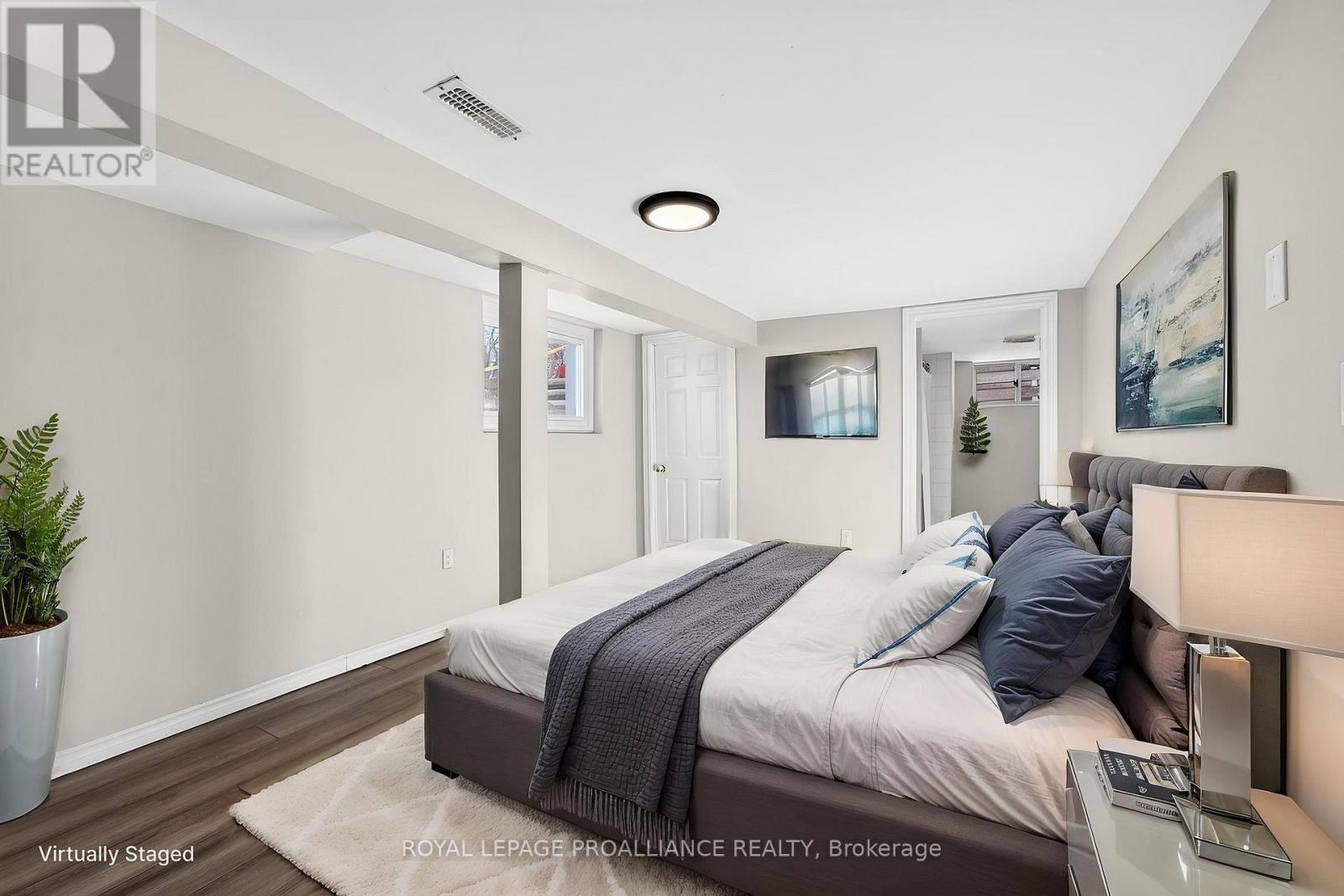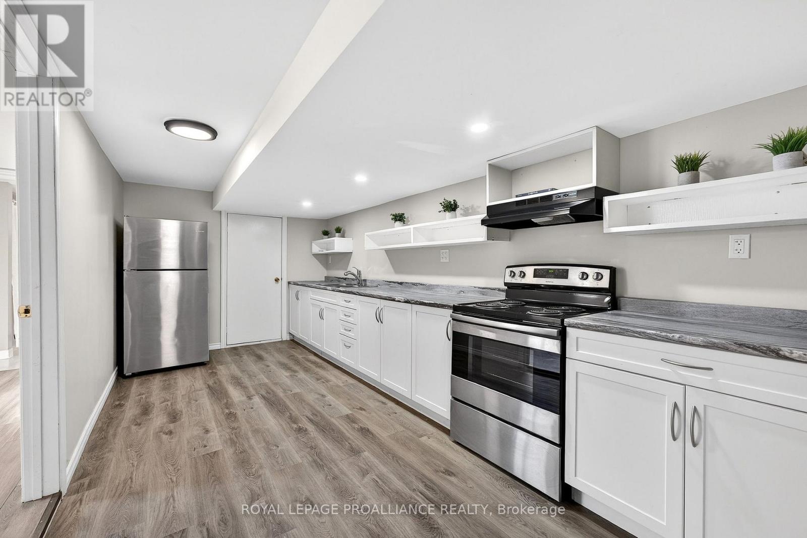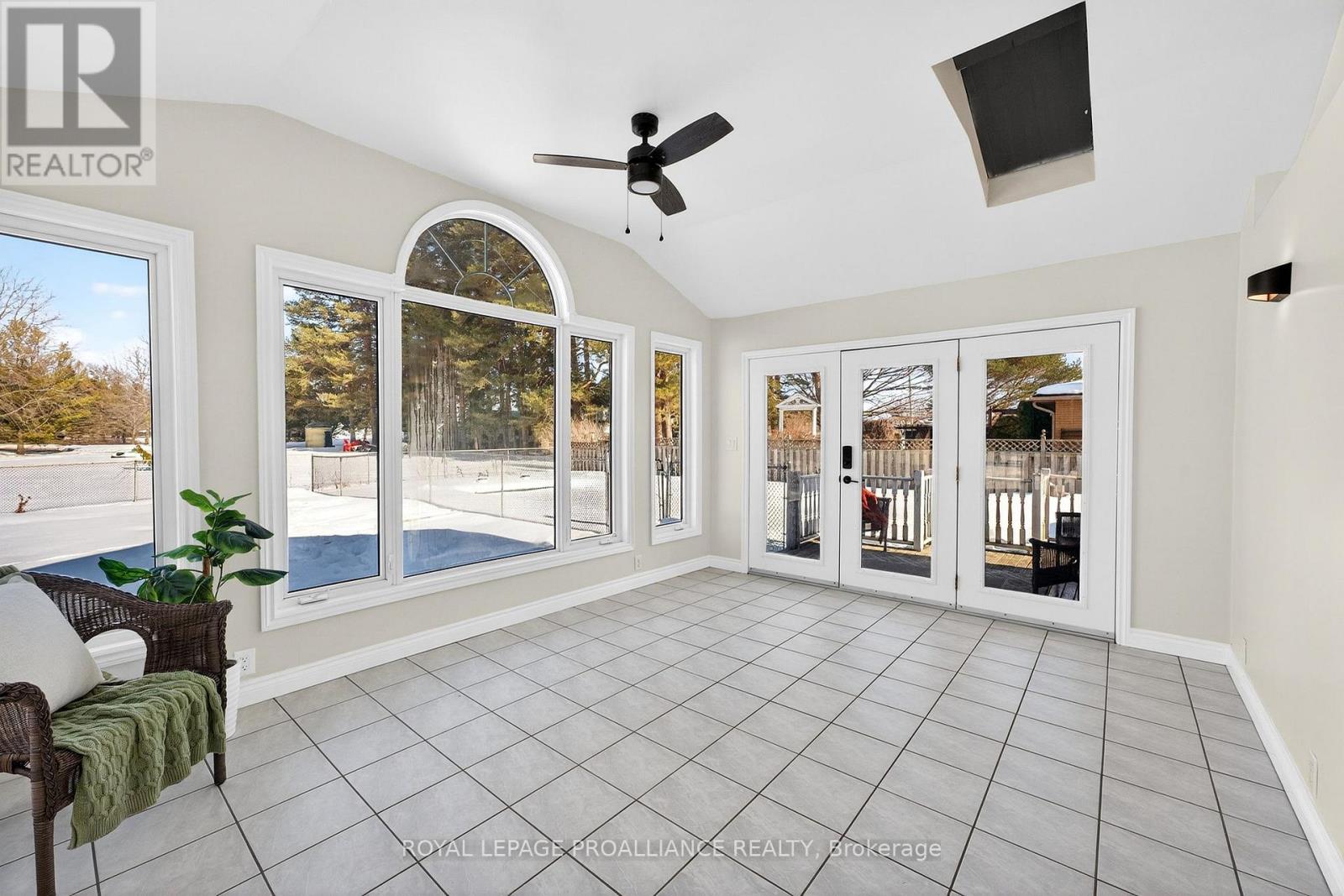 Enjoy the convenience of Belleville living with the quiet of Prince Edward County! This sprawling stone bungalow offers 3 + 2 bedrooms, 4 bathrooms and is located in the mature neighbourhood of Fenwood Gardens, just over the Bay of Quinte bridge. This summer enjoy the quick access to Sandbanks, restaurants & wineries and come home to relax on the patio around the in-ground pool. The private 100 ft wide by 160 ft deep lot is fenced with interlocking patio and an 18 ft x 36 ft in-ground pool with concrete decking, new liner and pump. Offering almost 2000 sq ft of main floor living space, hardwood floors in the living, family and dining rooms, and a stunning 15 ft x 12 ft sunroom that looks over the deck and pool - perfect for entertaining. The large eat-in kitchen just off the separate dining room is conveniently located on one end of the home. It features tons of white cabinetry, newer black stainless steel appliances and leads to the handy main floor laundry room, 2-pcs bathroom with tiled shower and access to the outside patio for easy barbecuing. Offering a functional layout for growing families, you'll find three generous sized bedrooms and a full 4-piece bathroom on the other end of the home. The Primary suite offers a 2-pcs ensuite bathroom and huge double closets. The fully finished lower level provides incredible versatility for larger families and features a new full kitchen, a large recreation room, 2 additional bedrooms, a den/office, a full 4-pcs bathroom, and tons of storage. The lower level also offers a separate entrance. Oversized attached 2-car garage also has a work bench. Enjoy the calm space of a generous, backyard tucked within a quiet, well-established neighbourhood. Easy access to town and just a short drive to The County's popular beaches, wineries, and local attractions, this property offers an opportunity to enjoy both everyday convenience and the lifestyle the area is known for. ( Updated Roof, Furnace, Pool Eqt. & more) See Full List. (id:64974)