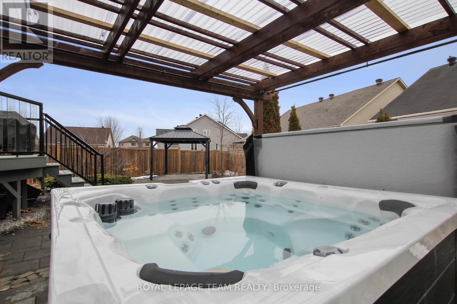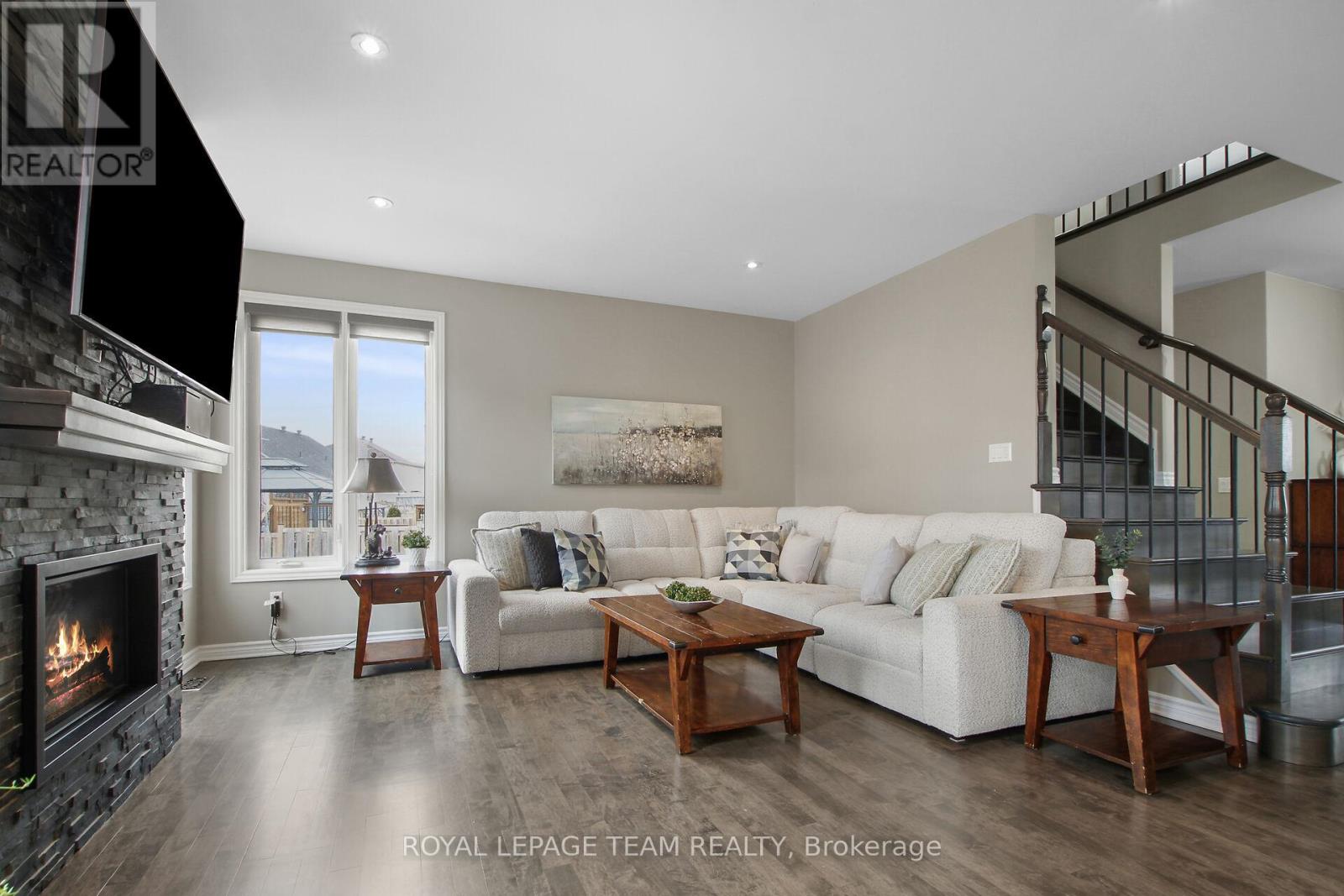 Welcome to an exceptional offering in the heart of Carleton Place-a premium 4-bed, 4-bath executive 2-story home, built in 2015 and ideally positioned on one of the largest and most desirable lots in the development. This beautifully upgraded home stands apart with thoughtful enhancements & upgrades throughout, including hardwood floors and staircase, floor-to-ceiling fireplace w/stone facade, additional windows on the main level and basement that flood the interior with natural light. The open-concept design is both functional & inviting, perfectly suited for everyday living and entertaining. The kitchen will inspire the chef in you; featuring sleek white cabinetry finished to the ceiling, centre island w/seating, granite counters & pantry. Upstairs offers 4 beds, including a primary suite featuring a spa-inspired ensuite w/custom shower, granite ct & double sinks. The professionally finished basement significantly expands the living space with a large open family room, games area, and a 4th bath with a shower. Above-grade daylight windows enhance the brightness of the lower level. Outdoors, the expansive, fully fenced yard creates a private, resort-like setting. A composite walkout deck, gazebo, pergola, Tiki bar with seating, fire pit, gas BBQ, and a hot tub (2024) make this an ideal space for relaxing or entertaining. Additional features such as interlock patios, underground sprinklers & paved driveway ensure ease of maintenance. Extensive recent updates provide peace of mind, including: furnace, A/C, tankless hot water heater, roof & driveway, SS kitchen appliances, garage door & openers, and GoVee permanent exterior lighting. Ideally located within walking distance to shopping, restaurants, and the vibrant downtown core, with convenient access to Hwy 7, this home offers the perfect blend of lifestyle, space, and location. A rare opportunity to own a highly upgraded property on a premium oversized lot in one of Carleton Place's most sought-after neighbourhoods. (id:64974)