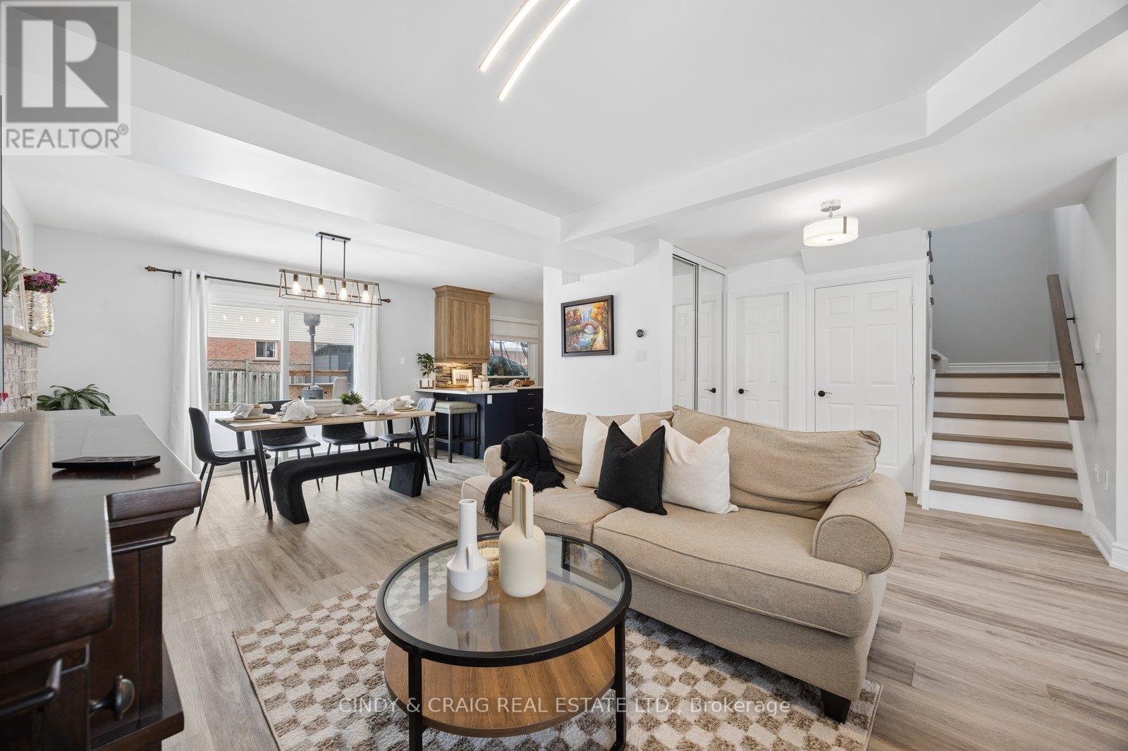 Set in a quiet, established, family-friendly neighbourhood, this updated detached home offers 3+1 bedrooms and 3 bathrooms complemented by a partially finished basement. The main floor features an open-concept layout with smooth ceilings and updated flooring, creating a seamless flow through the principal rooms and excellent natural light. This home delivers $200K in upgrades (2022): a brand-new designer kitchen, three custom-designed bathrooms, new stairs and flooring, and a custom primary bedroom closet. The home was repainted (2025) and the roof replaced (2022). The kitchen serves as a functional centerpiece with quartz countertops, large pantry storage cabinets, a brand-new stove (2026). Updated appliances include a KitchenAid refrigerator (2020) and a Bosch dishwasher (2020) - well-equipped for everyday cooking and entertaining. Outdoor living extends the home's versatility with interlocking stone in the front and back, a lawned backyard, a 14x20 deck (2022), a 10x12 gazebo, and a brand-new shed (2022) - organized, usable areas for dining, play, and seasonal enjoyment. Brand new Garage door (2019). The partially finished basement provides additional flexible living space - ideal for a recreation area, media room, home office, gym, or playroom - and is adaptable to evolving household needs. Mechanicals: furnace, water heater, and air conditioner are owned in full. With its open-concept main floor, designer finishes, and thoughtfully upgraded interior and exterior spaces, 107 Hemingford Place presents a move-in-ready opportunity in a desirable Whitby community - offering a combination of modern design and practical function. (id:64974)